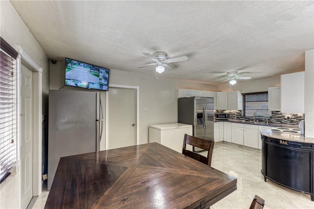 Open concept design, plenty of windows with natural lighting, neutral colors throughout, allow a welcoming space to make your own. This well taken care of home offers a modern kitchen with White Cabinetry a glass tile backsplash, Stainless Steel Refrigerator, and plenty of counter space. The main area has perfectly installed high gloss Porcelain Tile. The yard is huge & fully fenced with plenty of room for Boats, Trailers, Toys and Pets! Also a sturdy free standing Shed hurricane strapped to the ground. Attached one car garage has a laundry area in the back with a stackable front load washer and dryer. Security Cameras and Exterior Lighting surround the house. A lot of pride & hard work has gone into making this house a home. Come take a look! freezer & 2nd refrig do not stay.