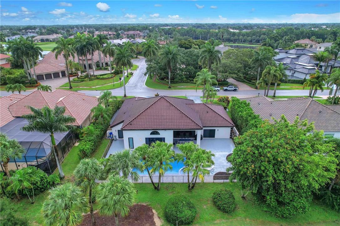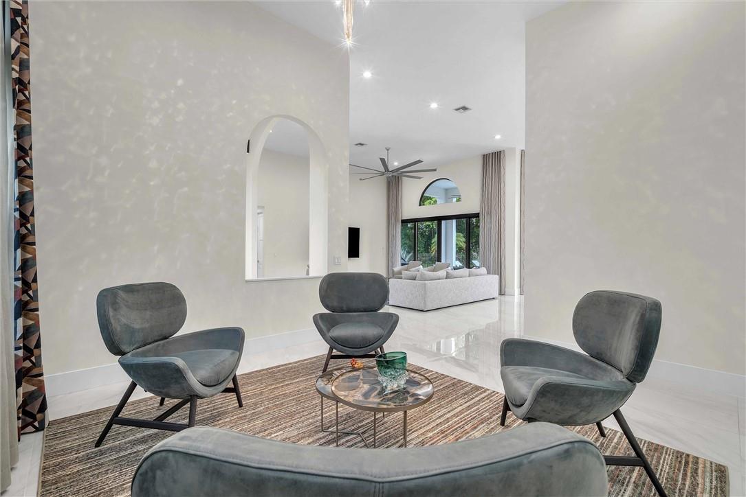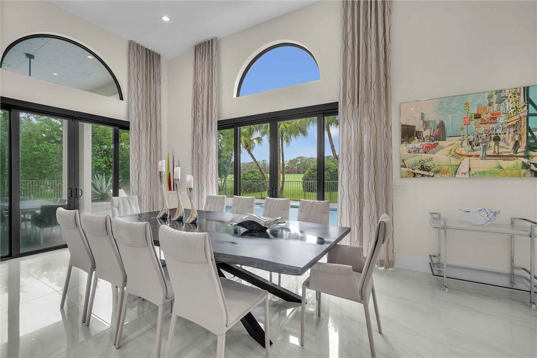 Furnished remodeled 3-bedroom pool home with no steps. Furniture was selected by a professional designer. Impact windows & doors. Large gourmet kitchen. White 2x4 porcelain tiles throughout main living areas. Open floor plan that is great for entertaining. Bar with cooler built-in. Luxurious wine room with refrigerated wine wall. High ceilings throughout Great room. Primary Bedroom is very spacious. Primary bathroom has dual sinks, free standing tub to incredible walk-in shower with amazing decorative tiles. 2.5 bathrooms inside & cabana bathroom outside. Oversized backyard with refinished pool and breathtaking views of the golf course. 2 car garage & side golf cart garage. Roof 12 years old. House is being sold furnished. Artwork, Sculptures, Accessories & Wine are not included in sale.
