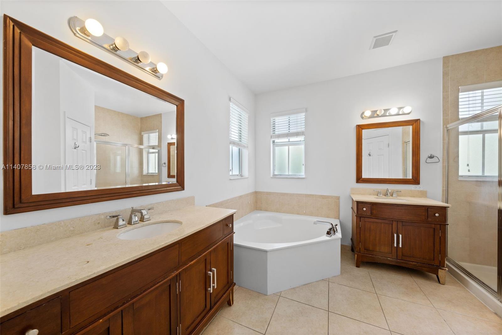 This beautiful corner Townhome features 4 Bedrooms with 3 and a half baths. Windows on the east, south & west, offer tons of natural light showcasing an upgraded kitchen(new appliances), baths and modern sleek floors on the ground level. A warm wood motif covers the second floor where you find a large master bedroom w private balcony overlooking the fenced in patio. A second suite w balcony & bath faces West & two bedrooms sharing a bathroom complete the upper level. 2 Car garage. The Reserve East is a private enclave w all the amenities you expect; gated entrance with 24 hour security, pool, gym, clubhouse & playground all within minutes from shopping & the social scene Doral offers. Immersed in A+ school school district just minutes to major highways & Miami International Airport.