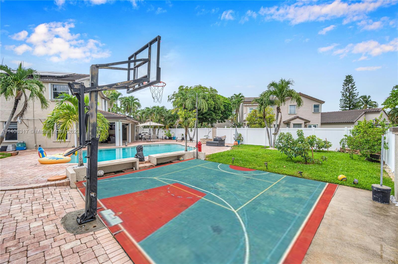 Welcome home to this gorgeous 2 story home w/ HUGE lot on a cul-de-sac, w/ an upgraded contemporary design throughout. 5bd/2.5ba, 2375 SF, chef’s eat-in kitchen, formal dining, family rm, laundry rm & full 2 car garage. This HUGE lot houses an XL pool & pool deck w/ tropical landscaping, basketball ct, LG outdoor covered living w/ space for summer kitchen, 2022 pool pump & privacy fence around property. The home has been modernized w/ solar panels to run the entire home, brand new roof, new AC & water heater & runs at peak energy efficiency w/ minimal electric bills to boot! Great location in a well-kept community near top-rated schools, min to shopping, cafes & local highways bring you to Miami & Ft Lauderdale easily & quickly! Easy to show!