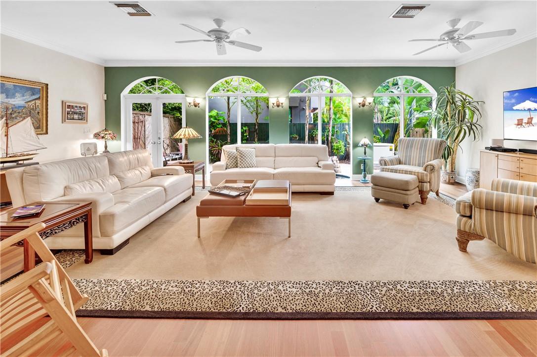 A spacious 3-bedroom Victoria Park townhouse with over 2,500 square feet under air. Located blocks to Las Olas. The main floor has custom built-ins and a gourmet kitchen, equipped with premium appliances and ample work space. The great room opens to a private garden and small pool, providing a refreshing retreat. On the second floor, you'll find a comfortable loft office area, the primary suite with its own balcony and the spacious guest suite. Bedrooms are spread out allowing for privacy. The third level suite has access to a private roof terrace for evening cocktails and sunset views. Windows and doors are impact rated. Large closets and custom storage are located throughout. The twin bay garage and long driveway allow for ample parking. A whole-house natural gas generator is included.