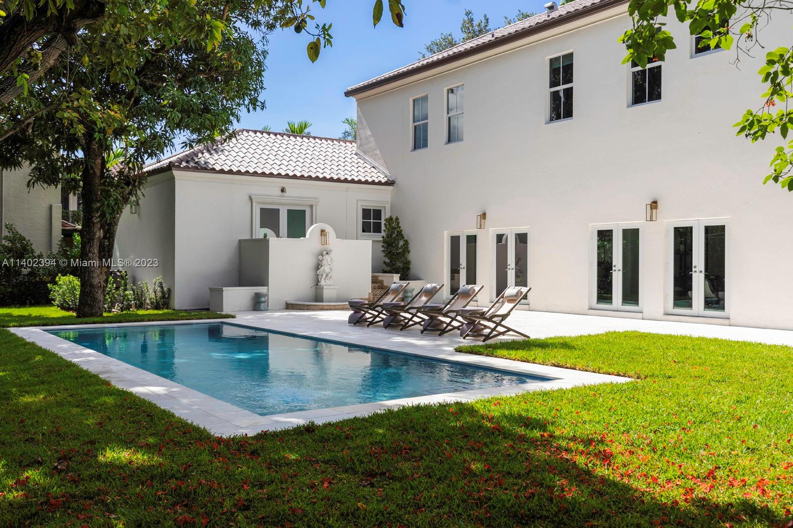 Immerse yourself in the allure of this freshly renovated Coral Gables villa with Tuscan influences. Enter a realm of elegance with 10' ceilings and graceful arched doorways. The French doors bathe the interior in natural light and create an inviting atmosphere. Enjoy the picturesque views of the expansive backyard and glistening pool, a haven for relaxation and entertainment. The modern kitchen features stainless steel appliances and a fresh palette. With 4 bedrooms, including a convenient downstairs bedroom, this villa offers versatility and comfort. The gated property sits on oversized corner lot, adorned with fruit trees. Easy access to 836 ensures seamless connectivity for your daily commute and exploring the area. Embrace the allure of this dreamy villa & elevate your lifestyle.