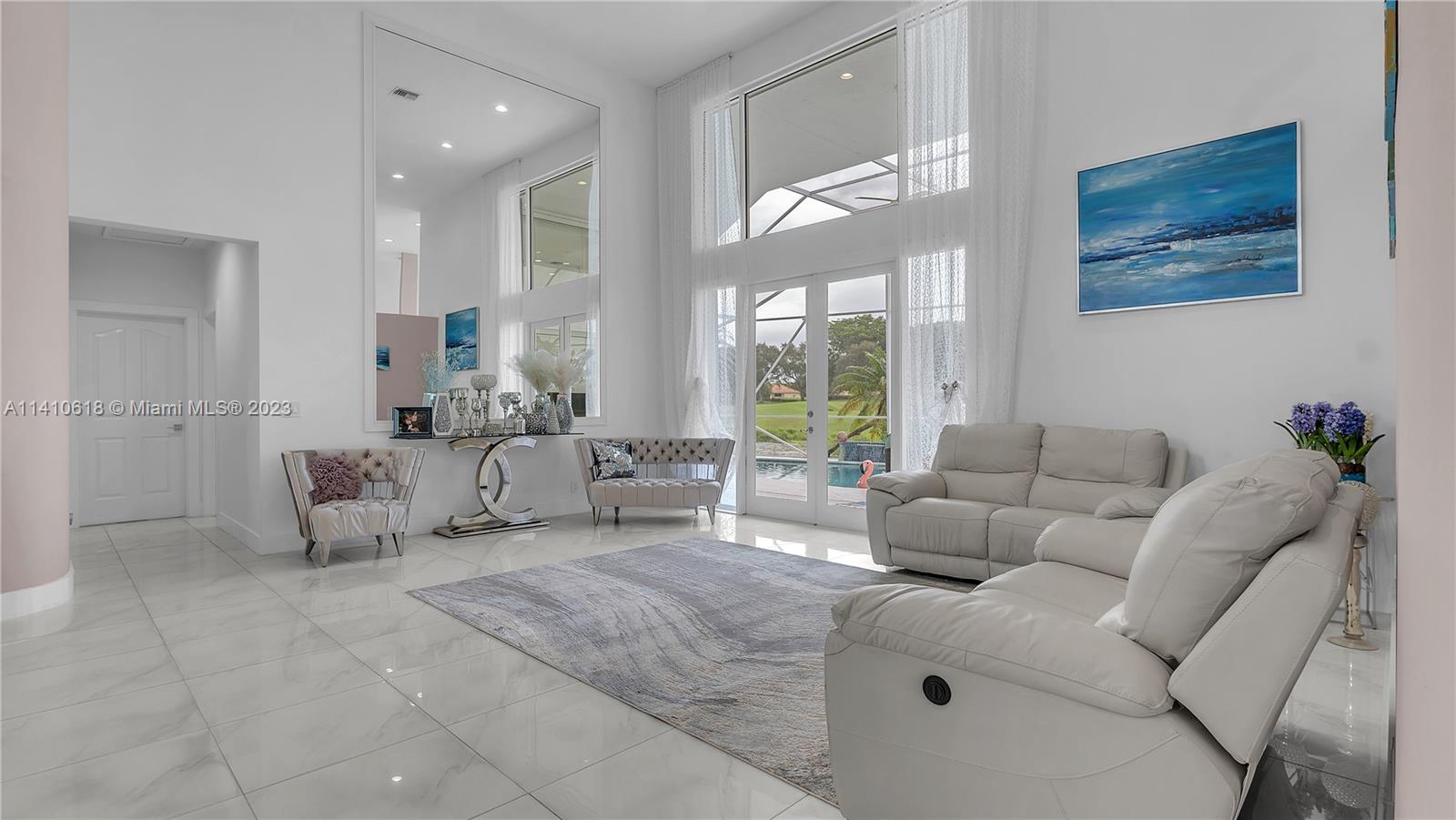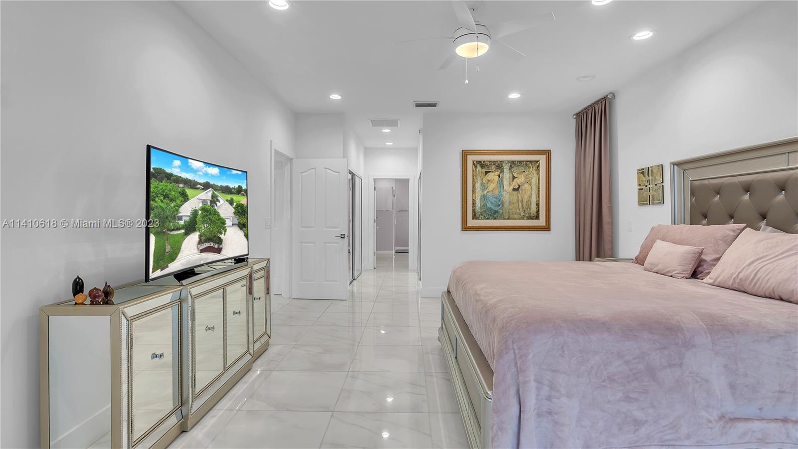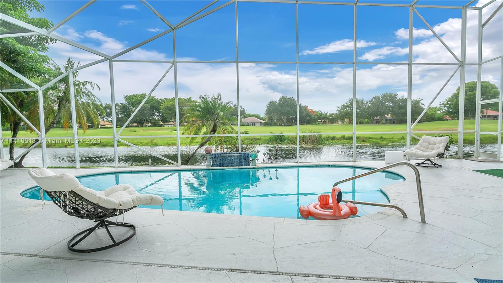 Your Dream home with panoramic view of a pool, waterways and a golf court in a cul-de-sac of prestigious Fairways Eagle Trace gated community. Five large size beds, four bath in a modern unique style you will fall in love with! Gorgeous kitchen 42" contemporary cabinets, great storage and counter space. Six a/c zones you can separately control room temperature the way you like. There is full home in-ground generator on east side of the property also a pool water heater to enjoy your swimming the best way. Accordion hurricane shutters for the entire home and an electrical shutter for the front door. Home has no steps up or down. There is a Golf Club with no obligation to join, the Tennis Center at West Gate is free to all residents, a basketball court, playground. Ready to move in!