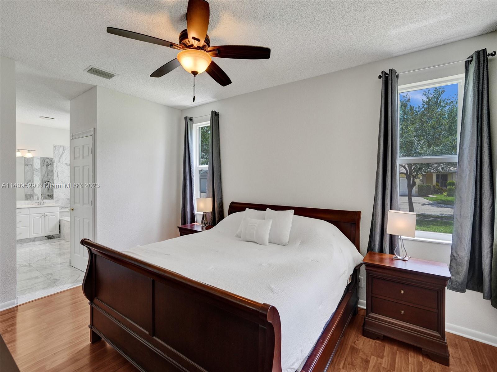 Beautiful corner lot, Bright & Spacious 4 Bedroom 2.5 bath, large yard with room for a pool. This Spanish-style home features MASTER ON 1ST FLOOR, NEW ROOF, NEW ENERGY EFFICIENT IMPACT WINDOWS, NEWER WATER HEATER, FRESHLY PAINTED, Remodeled kitchen w/ Stainless appliances and granite counters tops. Quiet, Tree-Lined neighborhood. Well-run guarded-gated community with great amenities like pool, basketball/volleyball courts, and Tot Lot. A+ rated schools, close to shopping center, restaurants, parks and highways. Amazing opportunities for kids sports, recreational and cultural activities.
