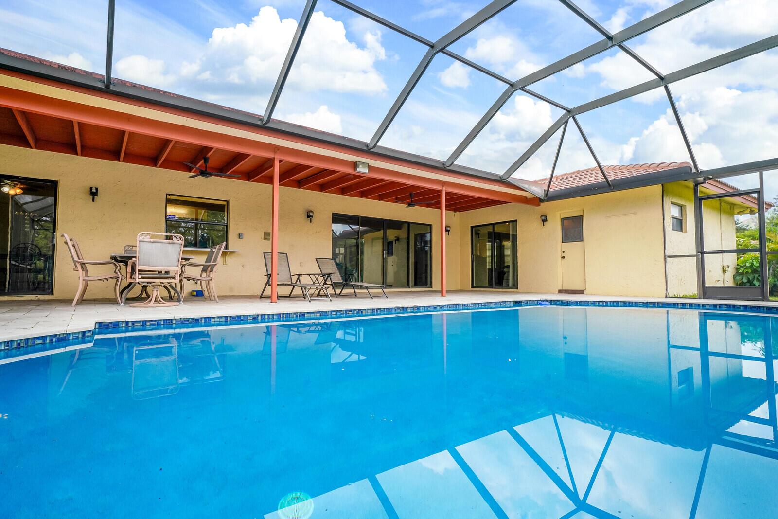 Welcome to Boca Greens Country Club. This is a non equity required gated community in West Boca Raton (golf is on a pay for play basis). This 3 bedroom/ 2.5 bath pool home is on one of the most private lots in the community. The covered overhang on the back patio offers a screened in pool with upgraded travertine pavers. Tranquil lake and lush landscaping in the backyard offers a private park like setting. A rated Boca Raton schools and great location near parks and restaurants. Call today for your private showing.