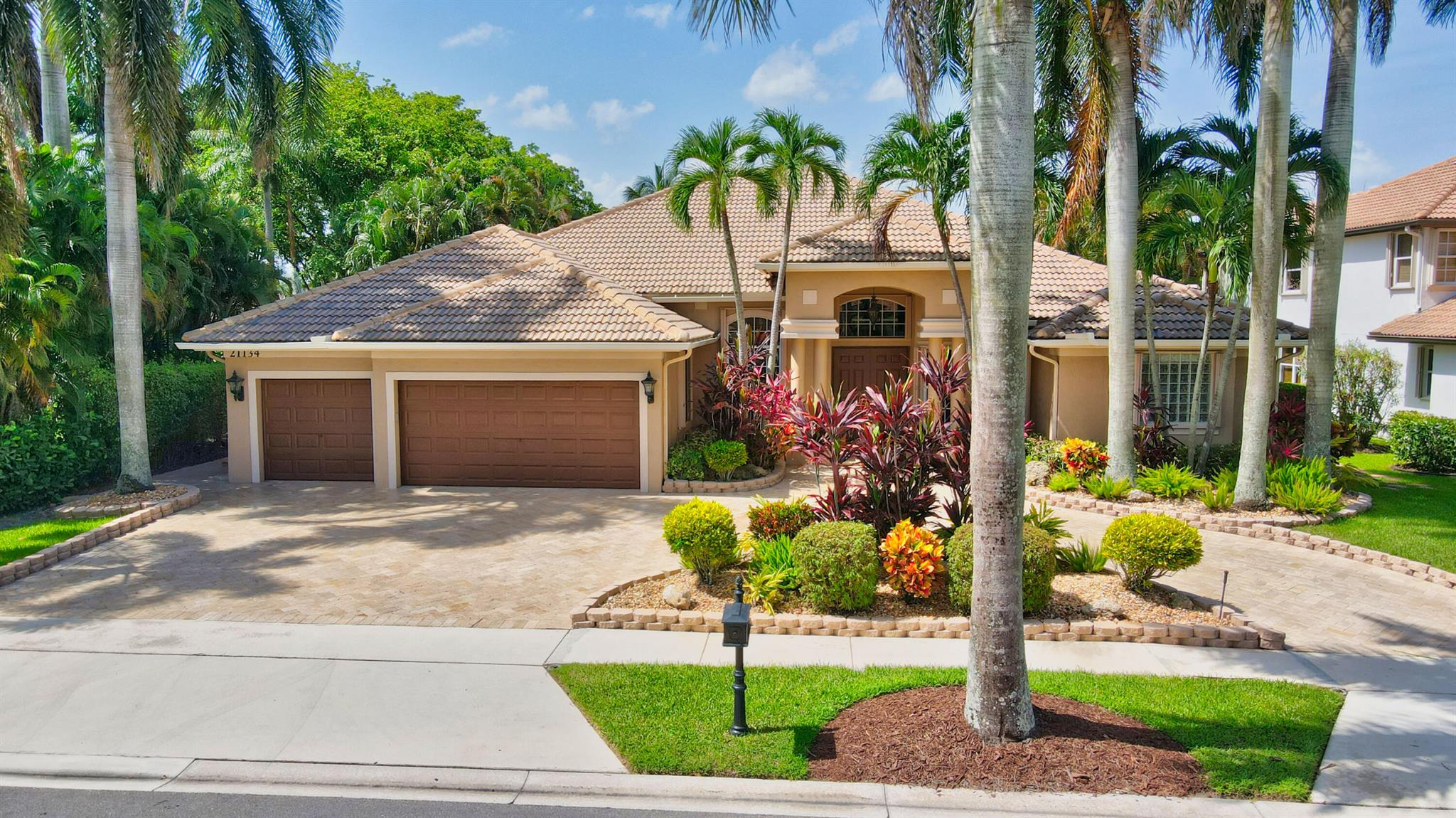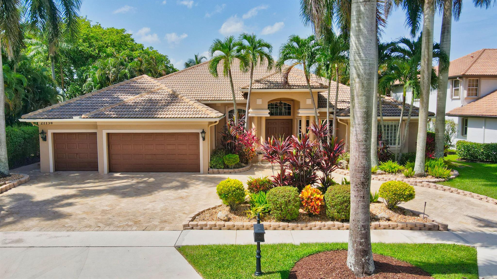 This exquisite Lake View 5 bedroom, 4.5 bath single family home located in the luxurious Estates at Boca Falls is the stunning architectural masterpiece you have been searching for. The spacious corner lot provides plenty of room for entertaining and a backyard oasis featuring oversized pool/jacuzzi, an oversized circular travertine driveway and lush landscaping. It features 21x21 Italian tiles throughout and a Master Suite that includes his and her closets with built in shelves. The Master bath includes a tub and shower for ultimate relaxation and a jacuzzi. The interior of the home offers soaring ceilings, crown molding and plantation shutters.