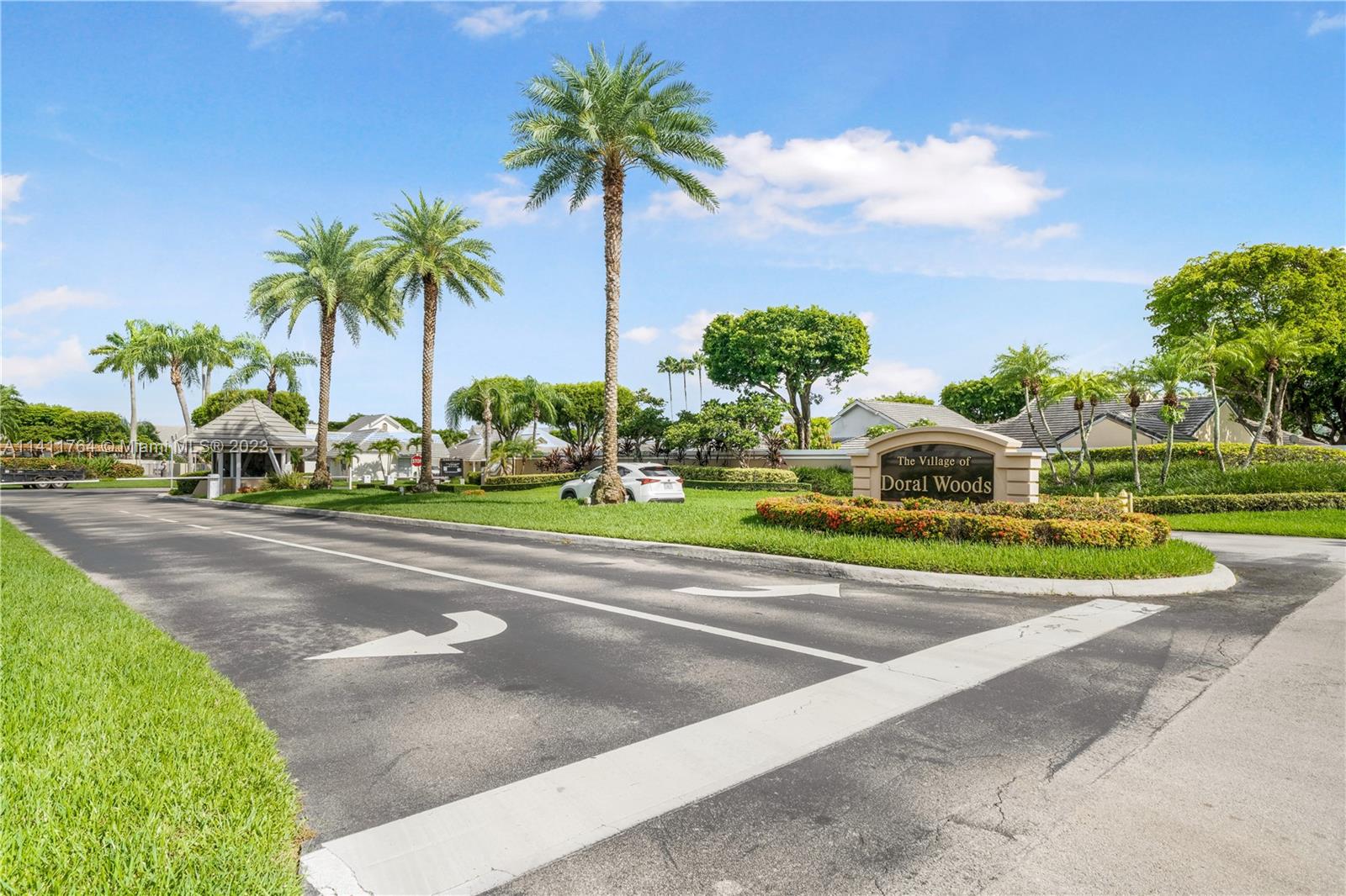 Amazing opportunity to own a spacious and bright one story single family house located in the gated community of Doral Woods. This spacious home features 3 bedrooms and 2 bathrooms, providing ample space for comfortable living. The interior boasts high ceilings, porcelain floors, impact doors, and windows provide plenty of lights. The private kitchen features high-end appliances and ample cabinet space. Step outside to the backyard, where you'll discover a serene outdoor space perfect for enjoying with friends and family. Substantially remodeled in 2018 included new porcelain floors, electrical panel, impact doors & windows. A/C /2013. HOA includes access to Doral Country Club. See click on virtual tour.