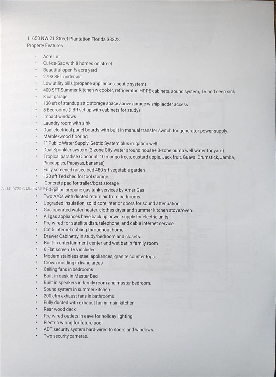 Now with NEW ROOF to be completed in December! Select your roof color! Custom home in Central Acres on Builder's acre 1 mile from American Heritage. This home features 5 bedrooms, 3 baths, 3 car garage, and a 400 ft fully equipped summer kitchen w/ propane gas stove, refrig ,HDPE cabinets. Inside there is a fully equipped kitchen w/ss appl, and elec cook top, granite counters. The home has marble and solid wood floors, a 200 sft standup attic, Propane W/H, dryer, and cooker, 100-gallon propane gas tank, 2 a/c units w/ducted return air from bedrooms, up graded insulation, solid core interior doors. Built-In entertainment center, 6 TVs, study cabinets, wet bar, the closets have built in cabinets. Irrigation well, shed, wood deck, tropical fruit trees, and vegetable garden. Make an Offer!!