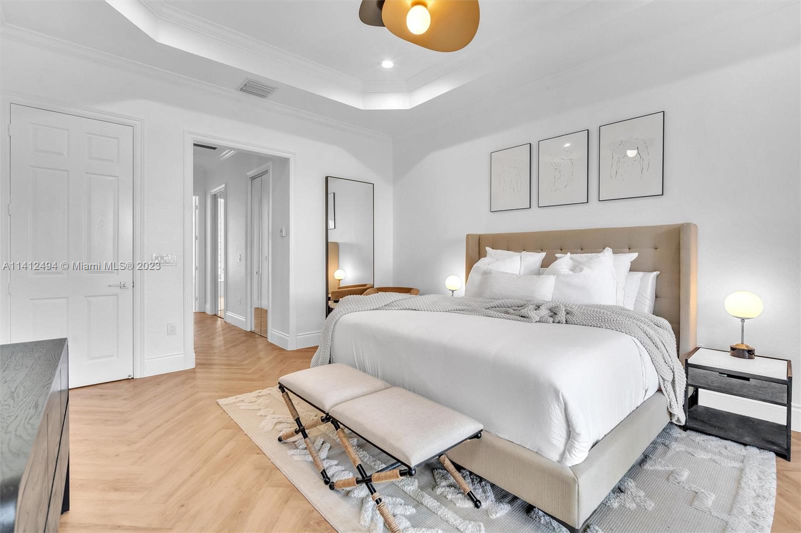 Immaculate one story home that sits on an oversized corner lot on cul-de-sac, located in the prestigious Isles of Sunset Lakes. Home features brand new herringbone floor, elegant baseboards, crown molding and trim work that matches throughout. Home also includes new smart recess lighting in entire home, designer chandeliers, motorized blinds. Kitchen completely renovated oversize peninsula design with marble counter tops, waterfall end, and matching backsplash. White double stacked cabinets, two pantries, pot filler, under counter ice maker. Brand new smart/wifi enable Samsung appliances throughout. Custom range hood. Home has new PEX plumbing done in 2022 and accordion shutters for the entire home. Newer water heater and Ac's Wired camera system, WIFI access points, Amenities & much more