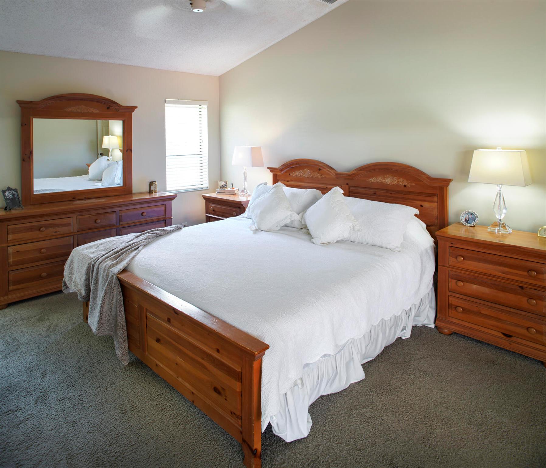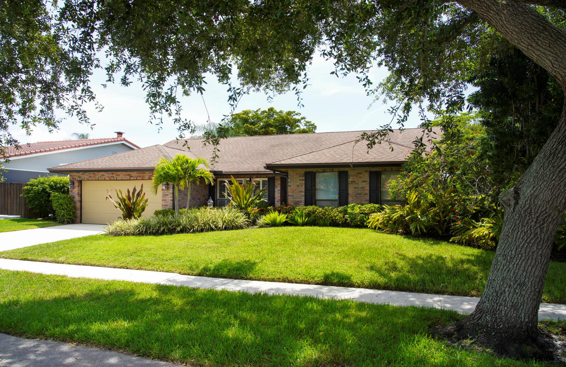 Rare, must see, ''corner'' home in the tree lined Strathmore neighborhood. Lush landscaping and an inviting outdoor entryway opens into a flowing floor plan with cathedral ceilings. Enjoy tranquil pool views and sunsets from your kitchen, family room and master bedroom. This brick 4 bedroom home has sturdy bones and is full of exciting possibilities to create your dream home. Great location, Great A+ schools, low HOA, a perfect opportunity to call this your home. Minutes to Town Center Mall, many restaurants, Mizner Park, and the beaches.