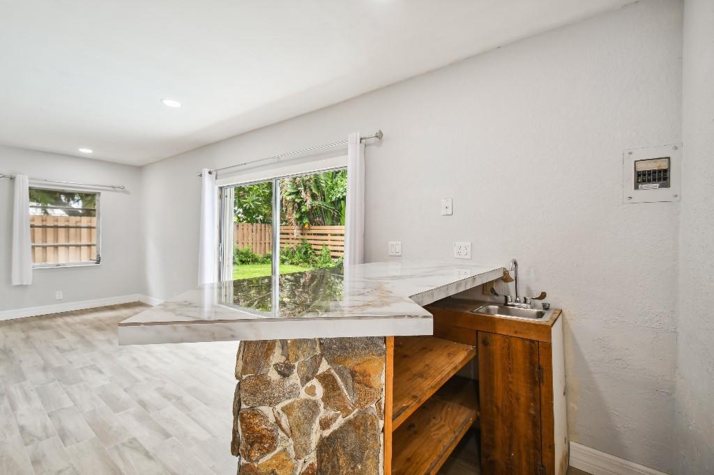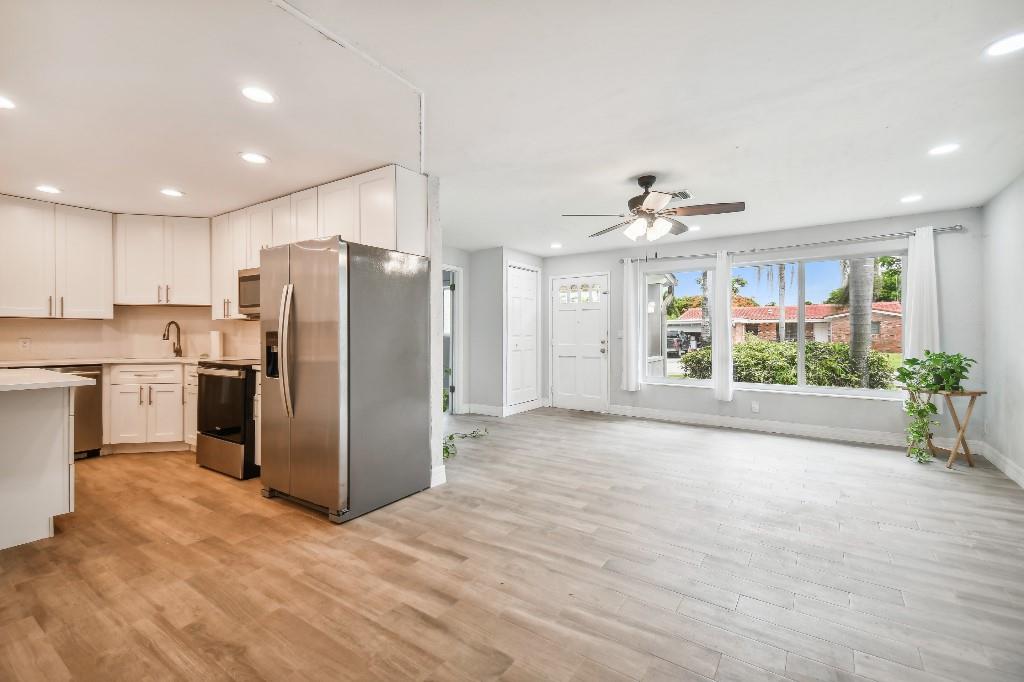 This Pompano Beach 4 bedroom 3.5 bath is in the highly desirable,NO HOA, Boulevard Park community,Roof 2021 Newer paint Updated kitchen with modern white cabinetry with stainless steel appliances and quartz countertops Updated master bathroom with a sauna It also features another room for office or baby room A large stucco storage shed
