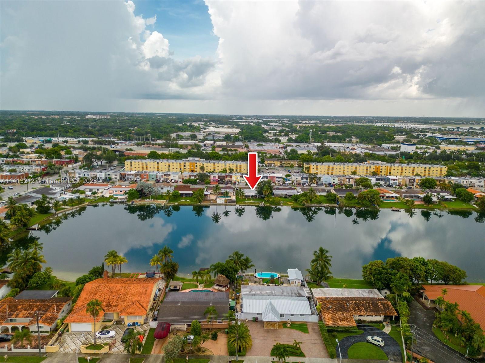 Rare lake view home in a desirable area of Hialeah! This 4 bedroom, 2 bathroom home has a private attached efficiency with its own private entrance, bedroom, bathroom, living room. This is perfect for a mother-in-law suite or as passive income. This home has all brand new 2023 hurricane impact windows, new A/C and new electrical panel were installed in 2022. New 2023 exterior paint and a partial roof replacement was done in 2021. Enjoy your private oasis with your private dock and access to the lake where electrical powered boats are allowed. Relax under the covered back porch with the water views. Park any commercial vehicle or your boat in the front circular driveway as there is no HOA! Nested in an enjoyable neighborhood and centrally located, come see this home today!
