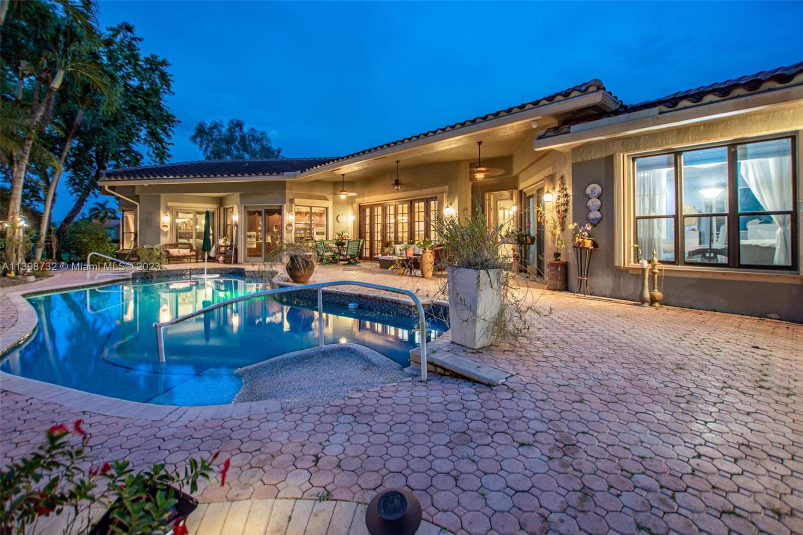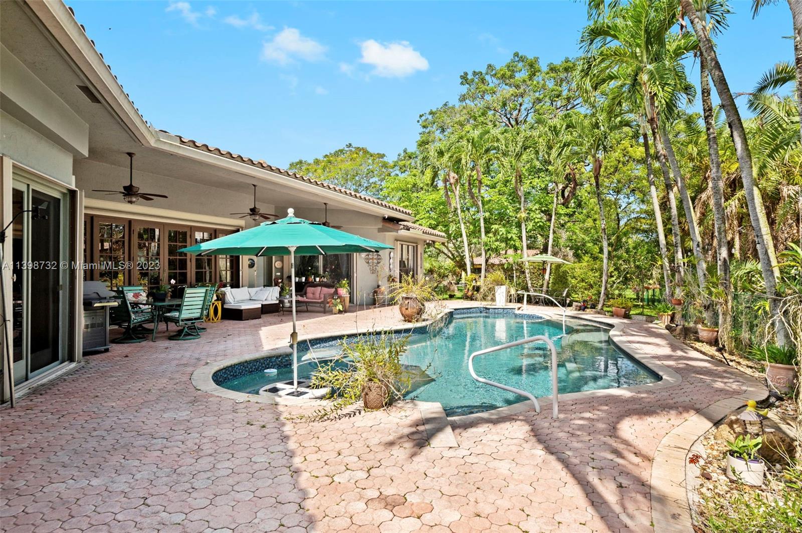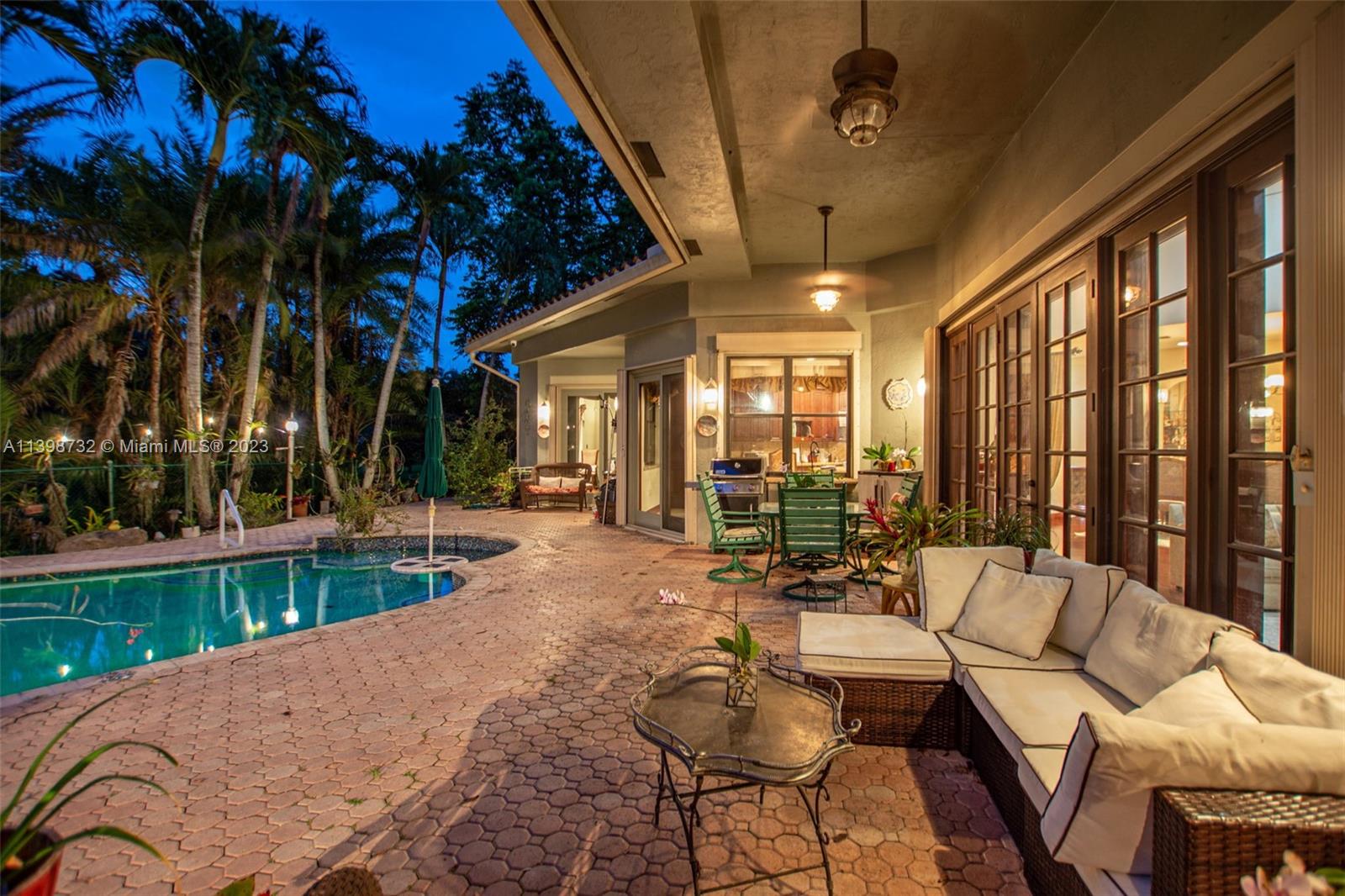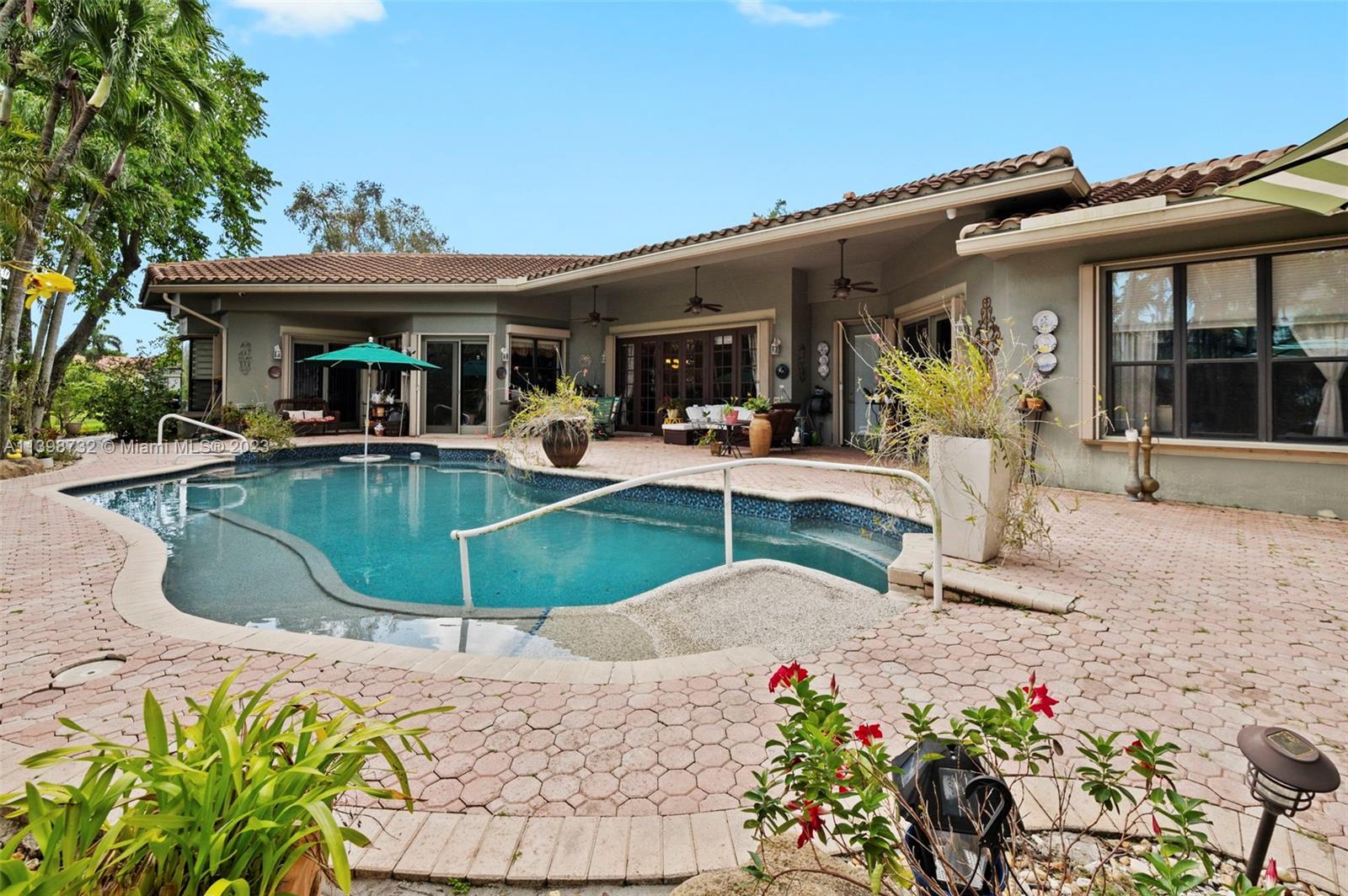 Welcome to your spacious residence with 3 bedrooms, 3 bathrooms, and a thoughtfully designed floor plan. The chef's kitchen boasts elegant warm cabinetry, newer stainless steel appliances, a gas stove, and exquisite granite countertops. The owner's suite on the east side offers privacy, an oversized bathroom with a separate tub and shower, and a spacious walk-in closet. Additional bedrooms have, a convenient Jack & Jill bathroom. Relaxation and convenience await with easy access to the pool area. The expansive living room provides a breathtaking view of the tropical pool setting. Enjoy outdoor grilling and discover serene sitting areas along paved walkways. Escape and immerse yourself in your own piece of paradise. Welcome to your dream home, where luxury and comfort harmonise.