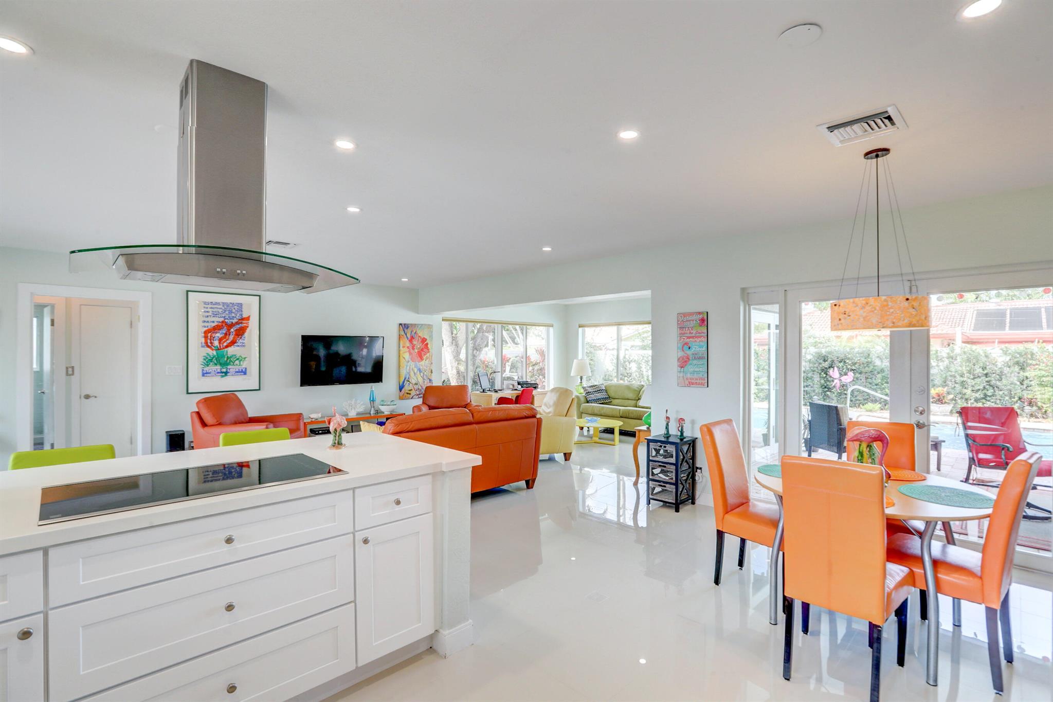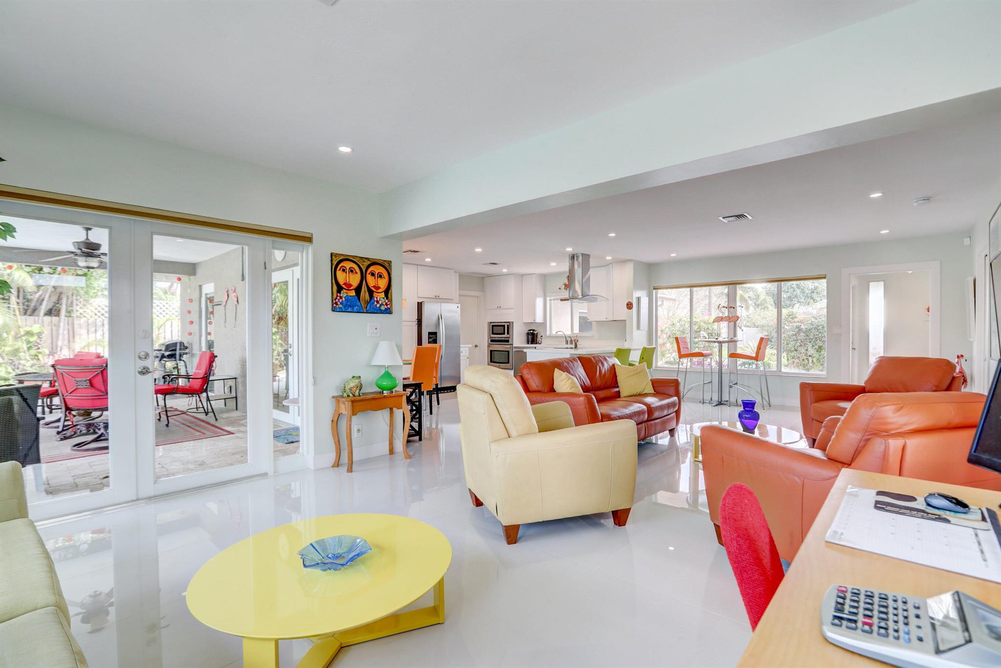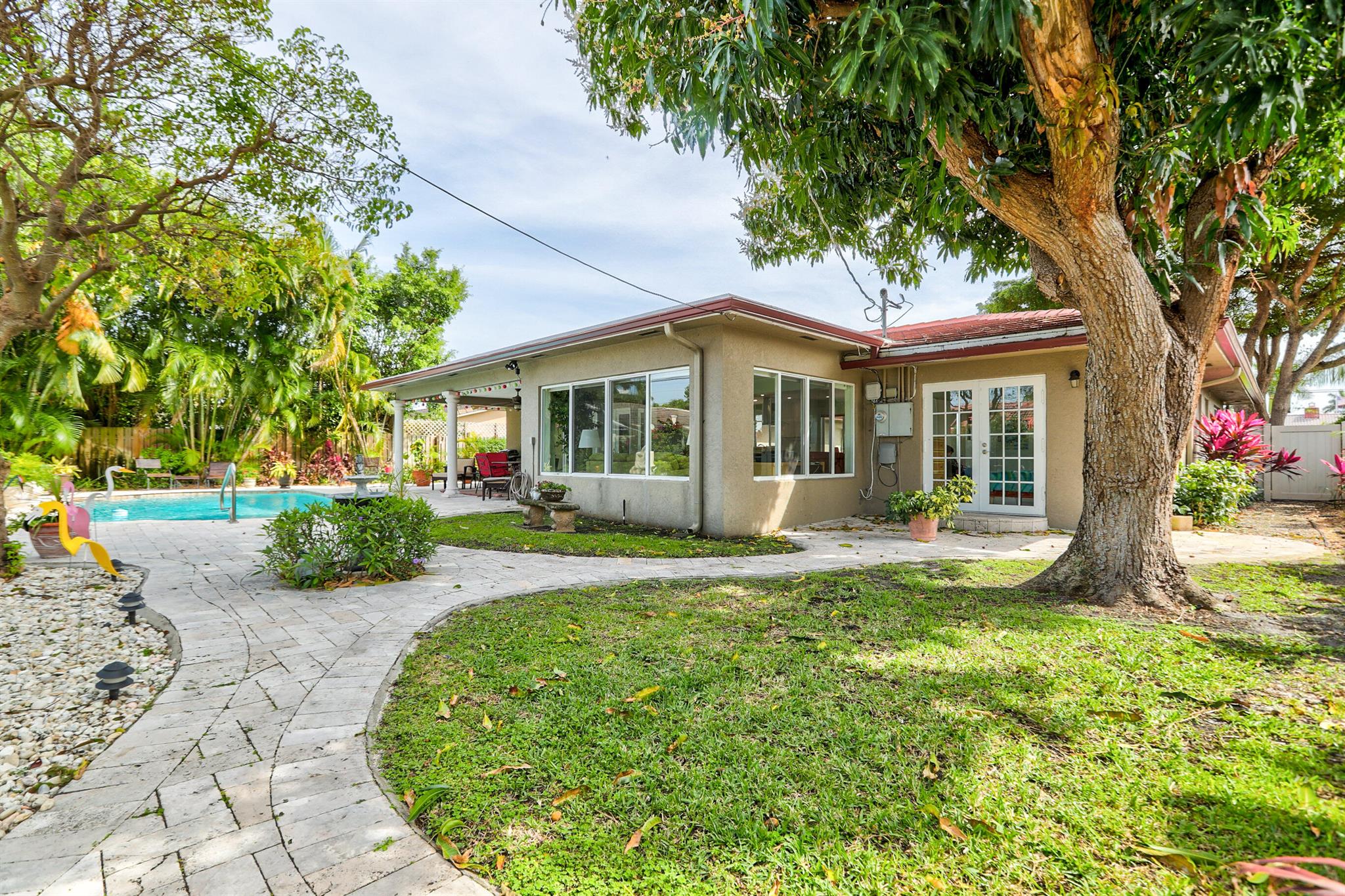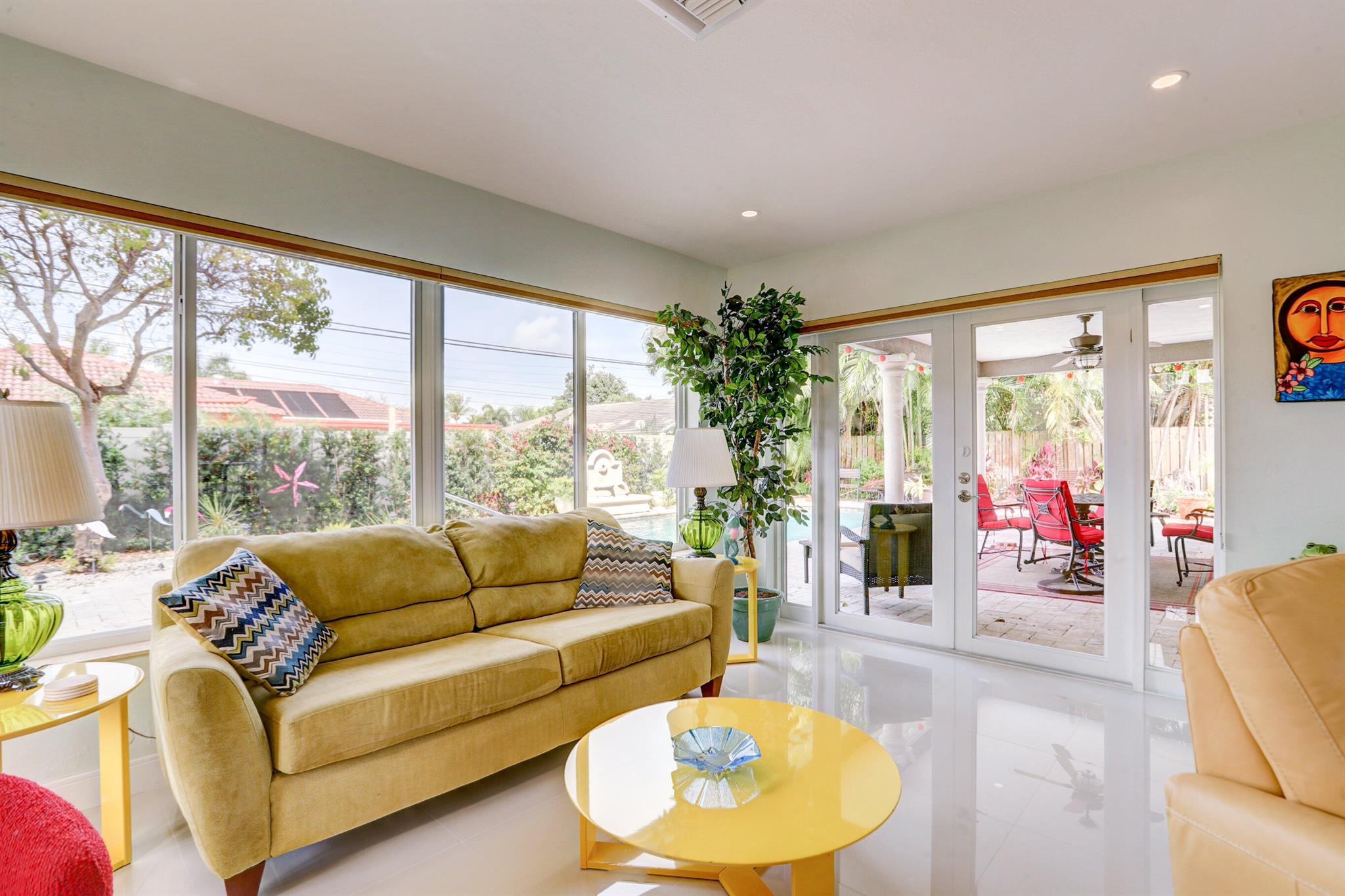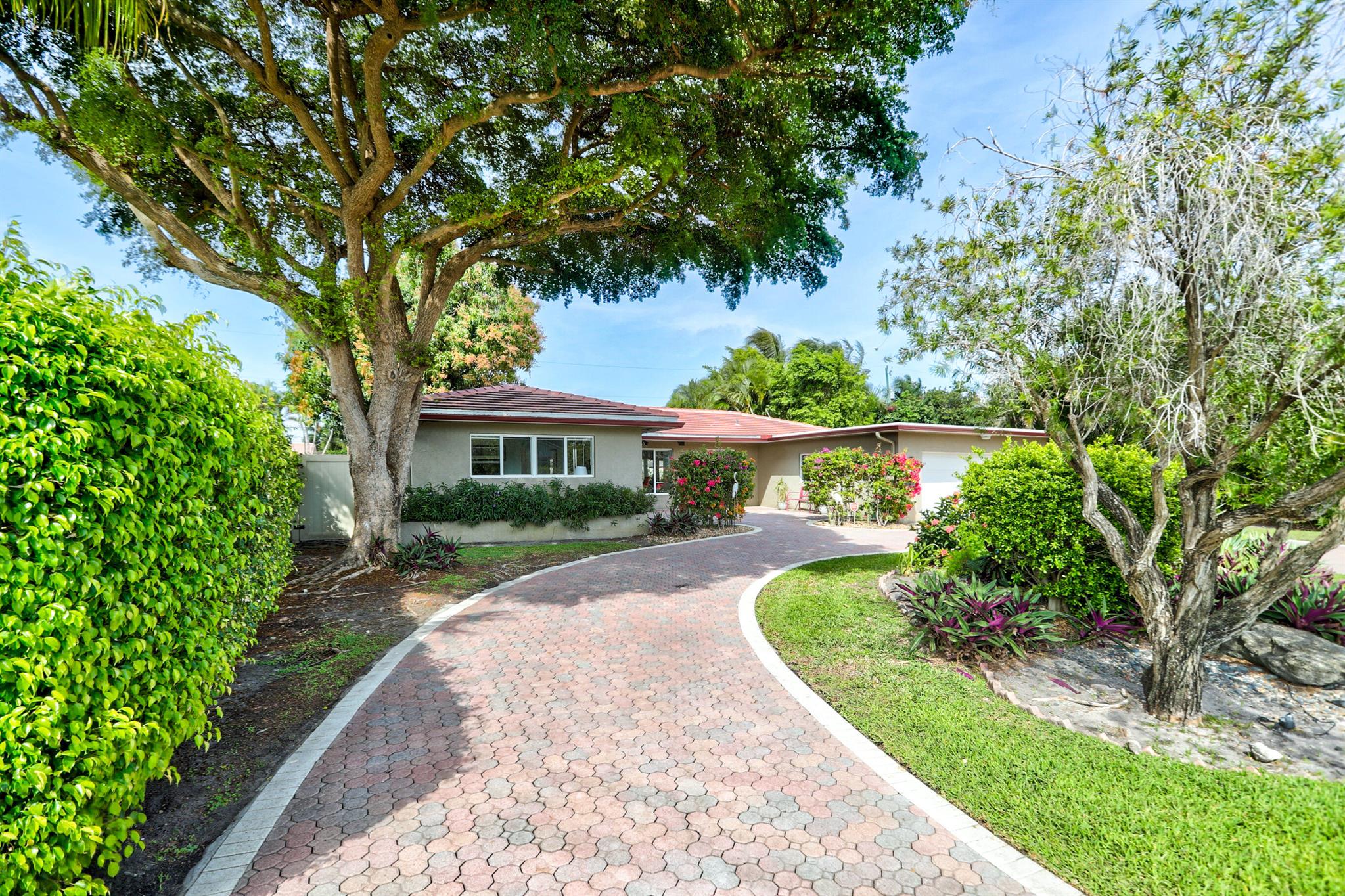 Tastefully renovated 2 bedroom, 2 bath + bonus room with private heated, salt water swimming pool. Everything you expect and need when you're heading to Sunny South Florida! This spacious and ideally located single family home is less than a stones throw from the intracoastal and local beaches and is situated on a large and welcoming lot with sweeping circular driveway and luscious greenery. Open family room, kitchen and dining area with an abundance of charm. Fully air-conditioned with attached 2 car garage, covered porches, modern kitchen and much more. Washer/dryer inside off of kitchen. Photos were taken prior to leasing to tenant in 2021. Impact glass and newer roof (2018).