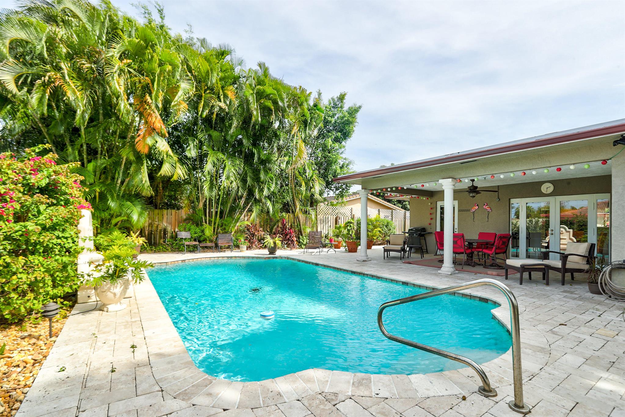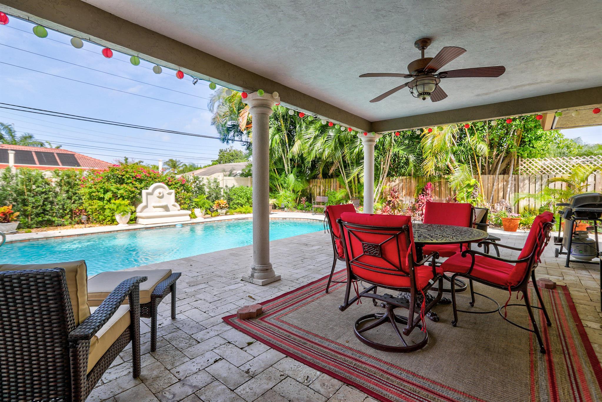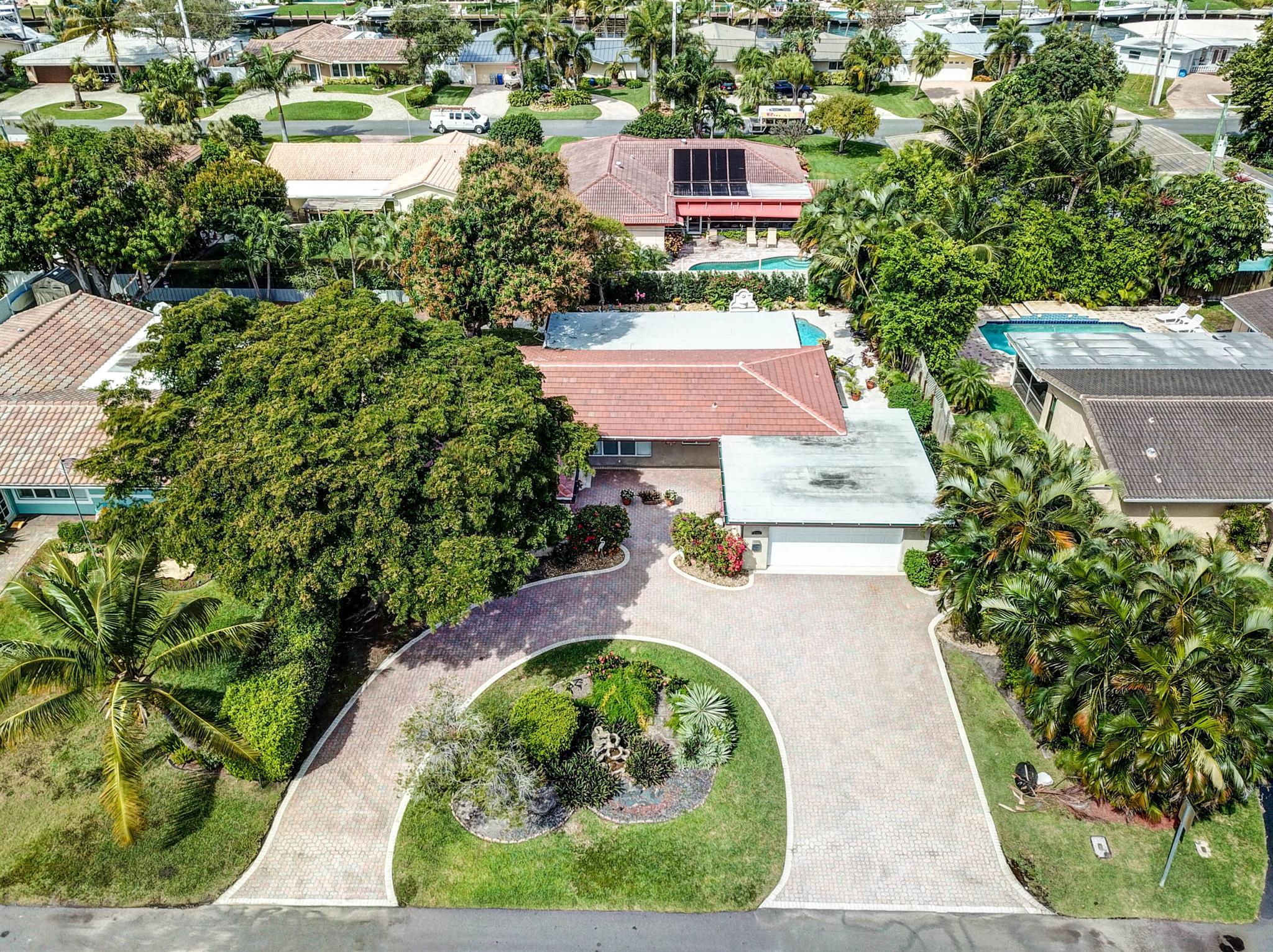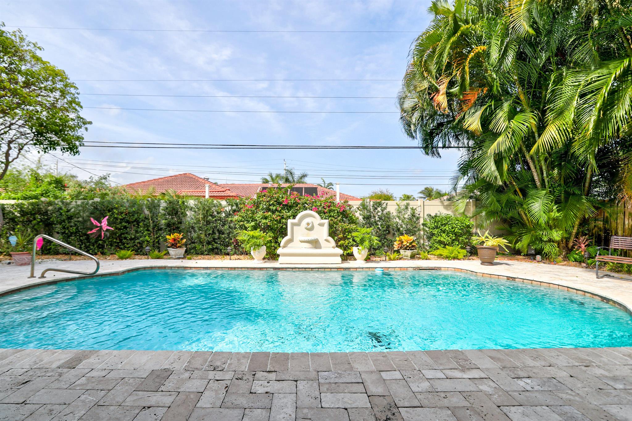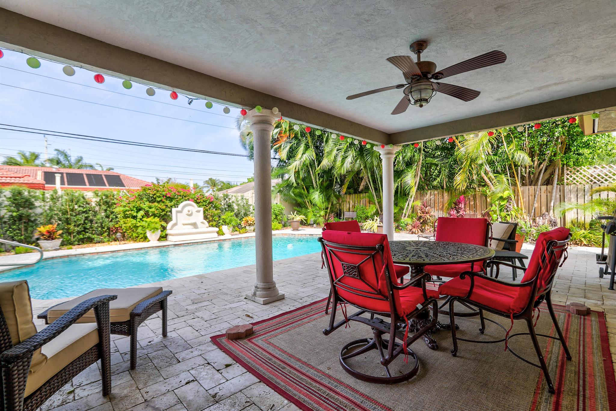 Tastefully renovated 2 bedroom, 2 bath + bonus room with private heated, salt water swimming pool. Everything you expect and need when you're heading to Sunny South Florida! This spacious and ideally located single family home is less than a stones throw from the intracoastal and local beaches and is situated on a large and welcoming lot with sweeping circular driveway and luscious greenery. Open family room, kitchen and dining area with an abundance of charm. Fully air-conditioned with attached 2 car garage, covered porches, modern kitchen and much more. Washer/dryer inside off of kitchen. Photos were taken prior to leasing to tenant in 2021. Impact glass and newer roof (2018).