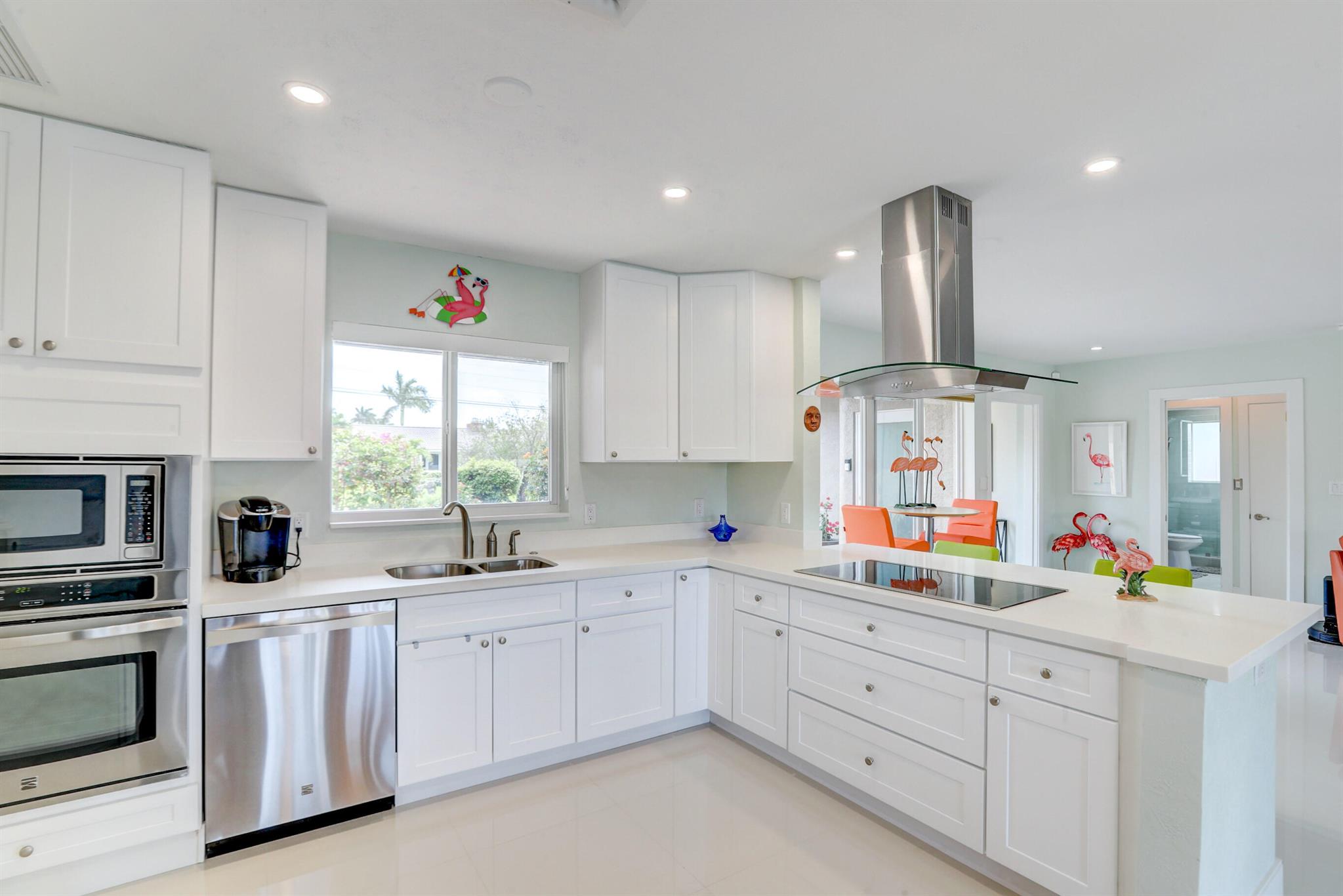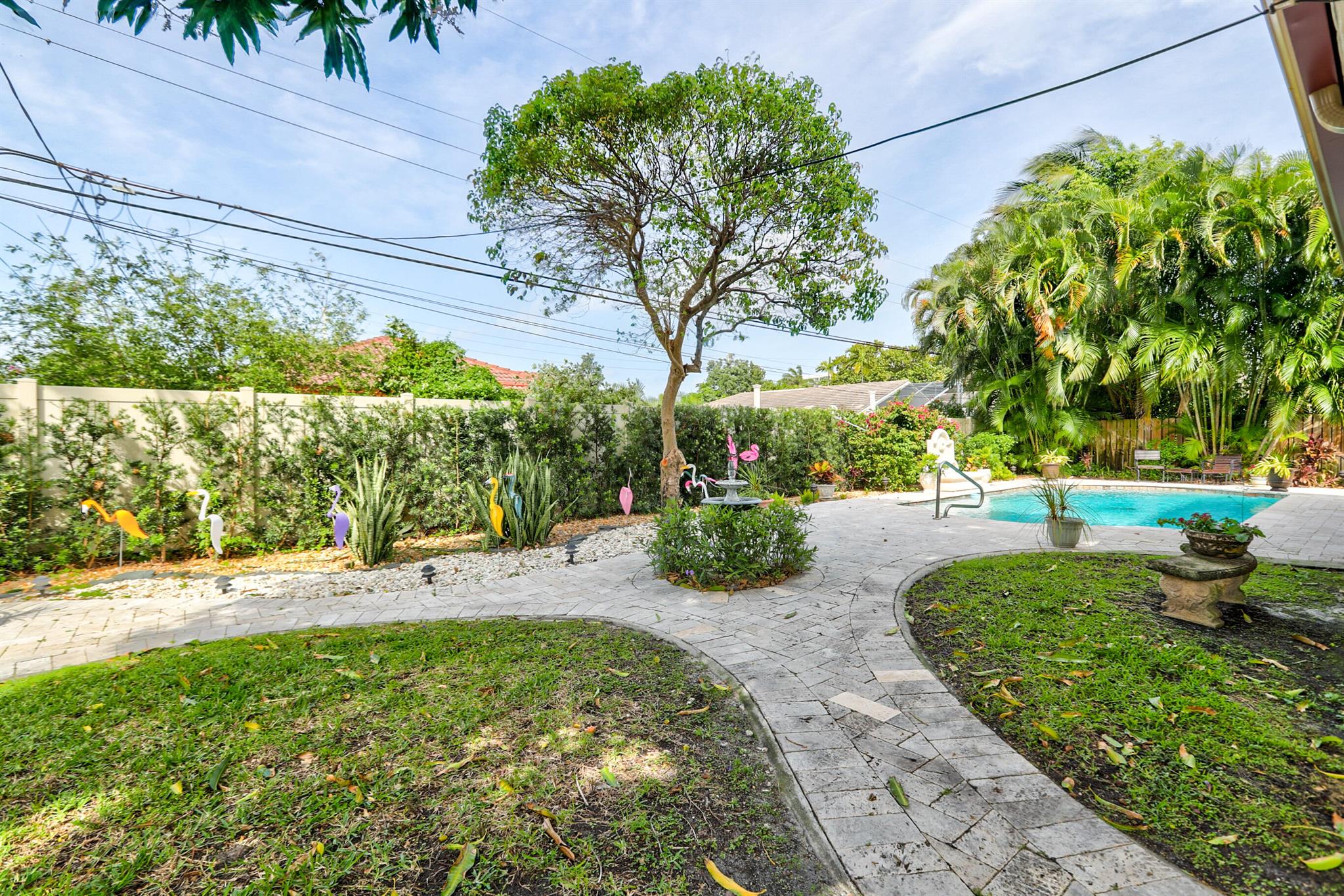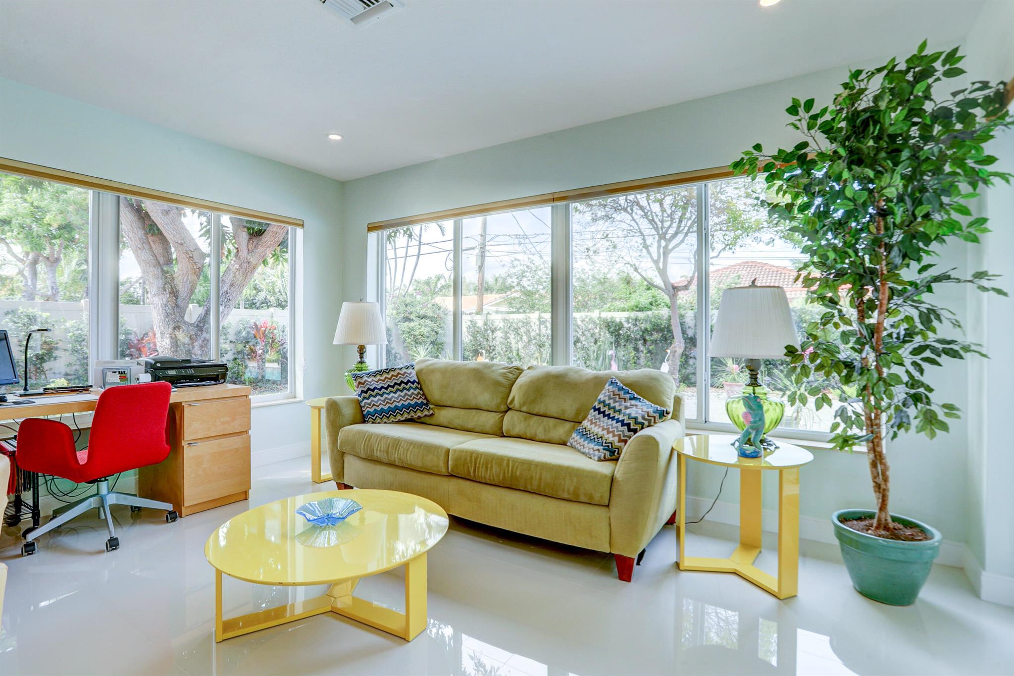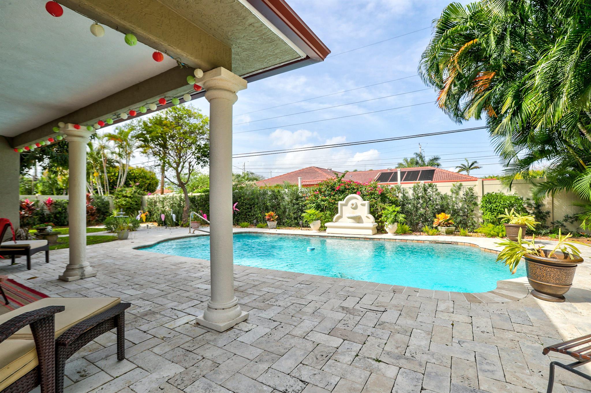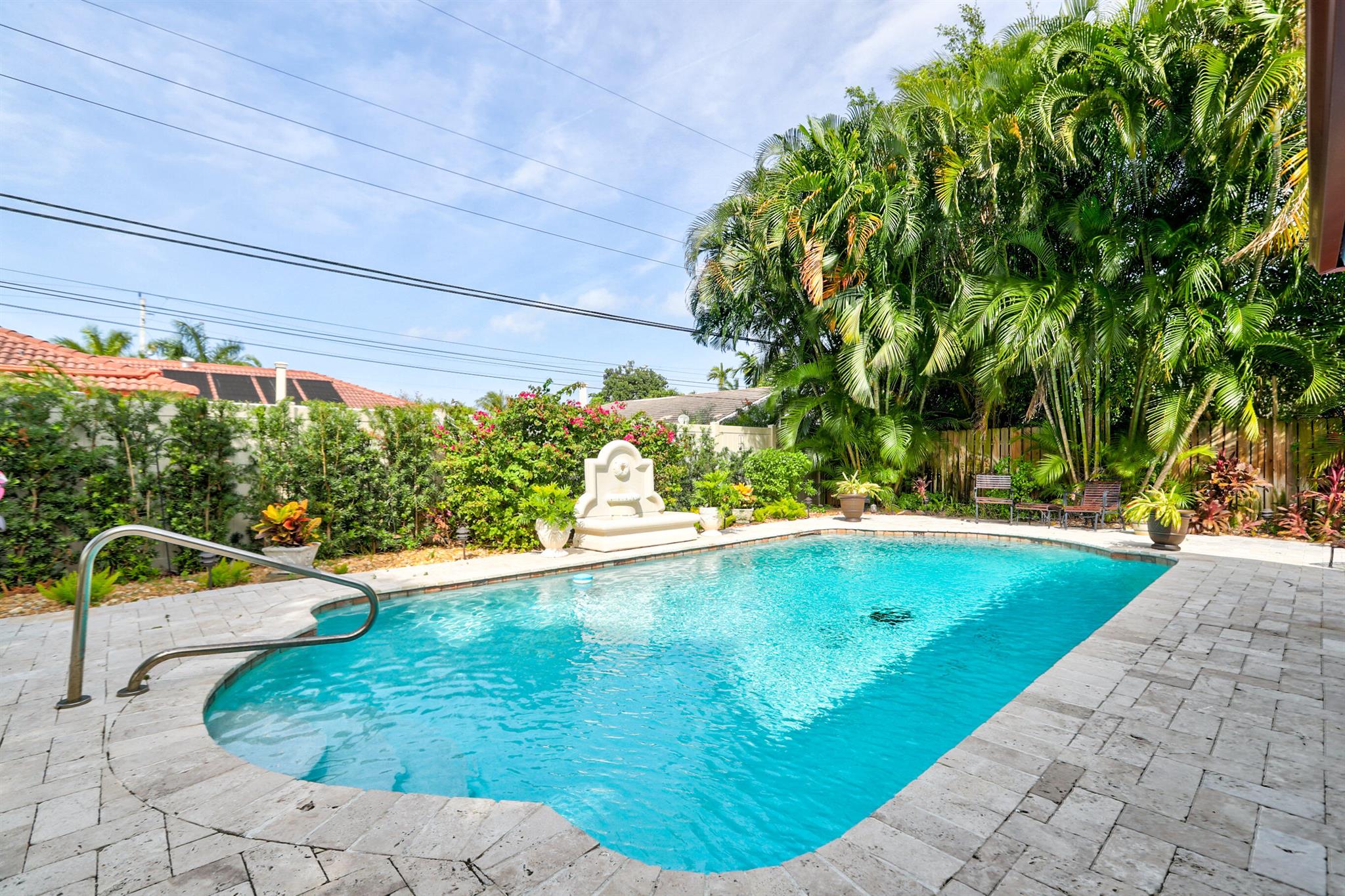 Tastefully renovated 2 bedroom, 2 bath + bonus room with private heated, salt water swimming pool. Everything you expect and need when you're heading to Sunny South Florida! This spacious and ideally located single family home is less than a stones throw from the intracoastal and local beaches and is situated on a large and welcoming lot with sweeping circular driveway and luscious greenery. Open family room, kitchen and dining area with an abundance of charm. Fully air-conditioned with attached 2 car garage, covered porches, modern kitchen and much more. Washer/dryer inside off of kitchen. Photos were taken prior to leasing to tenant in 2021. Impact glass and newer roof (2018).