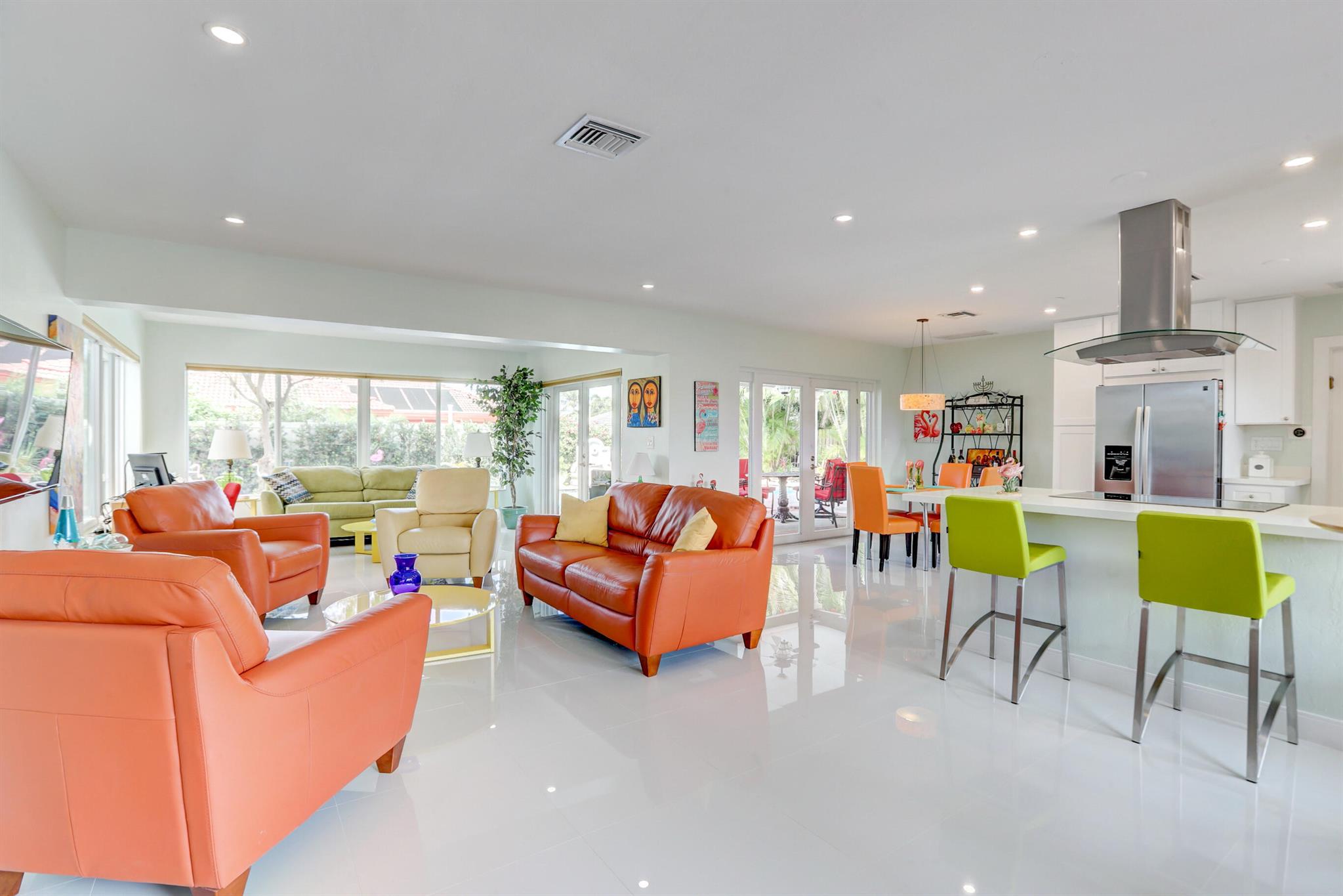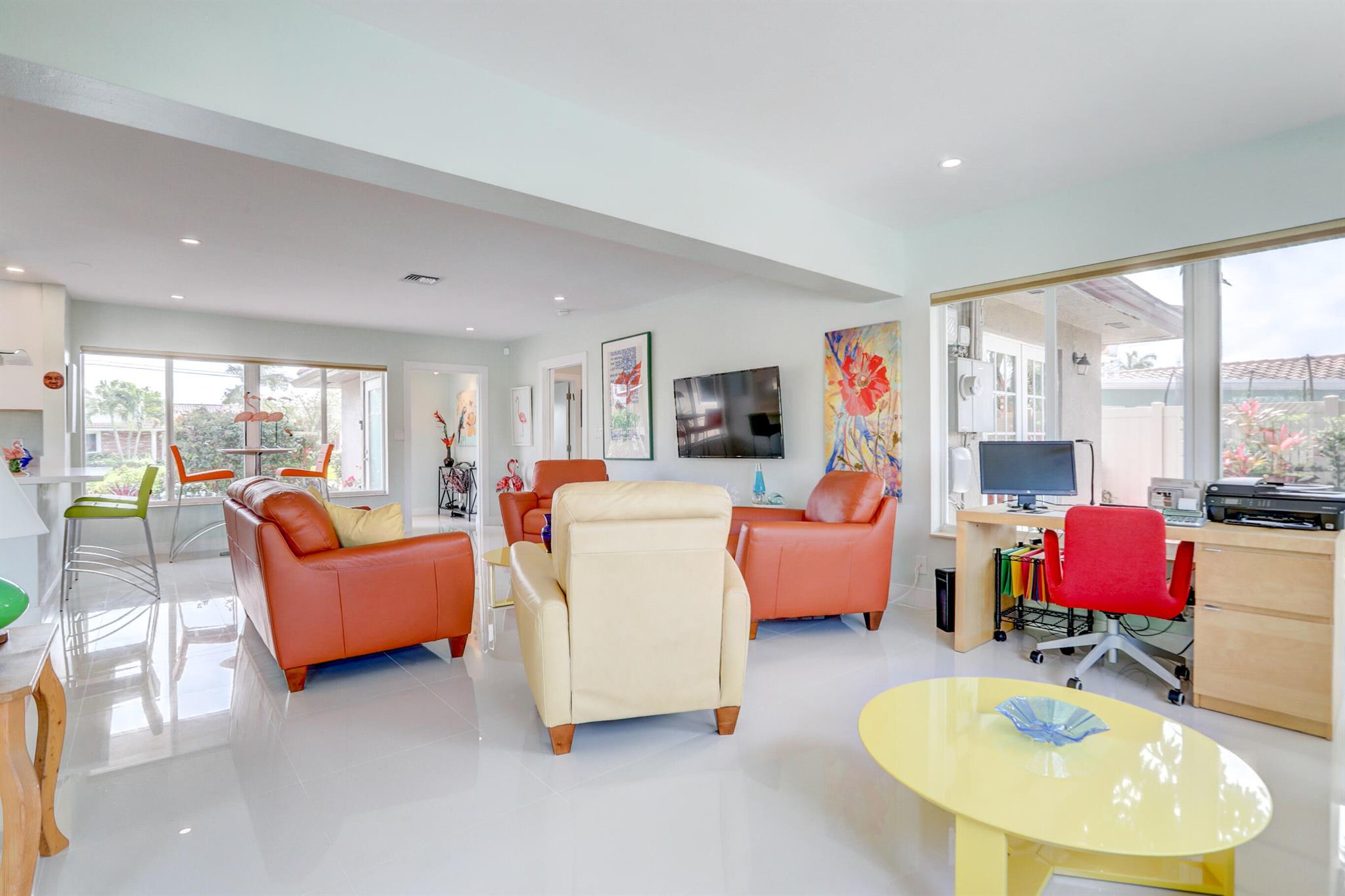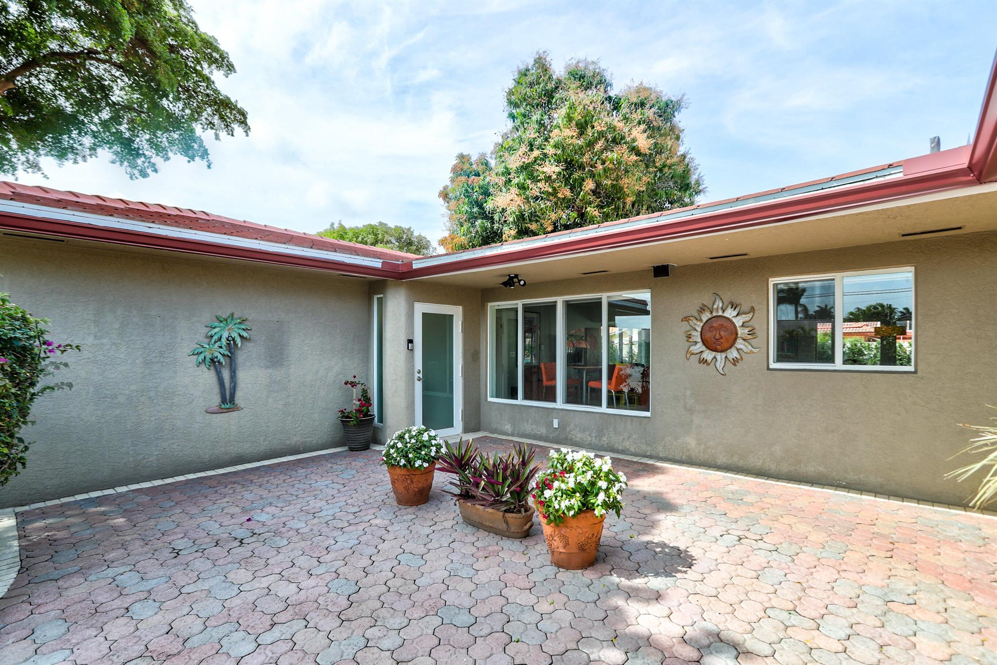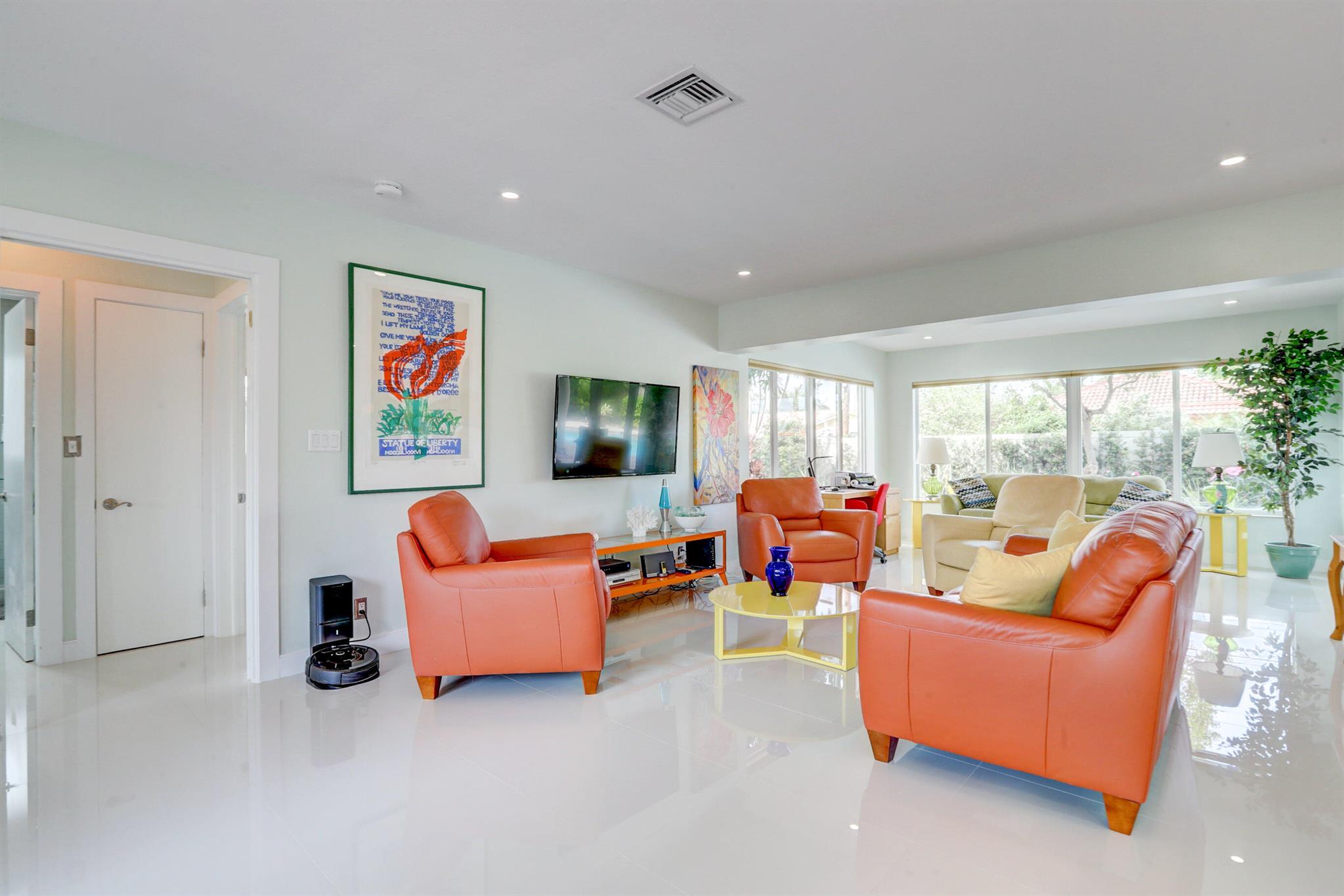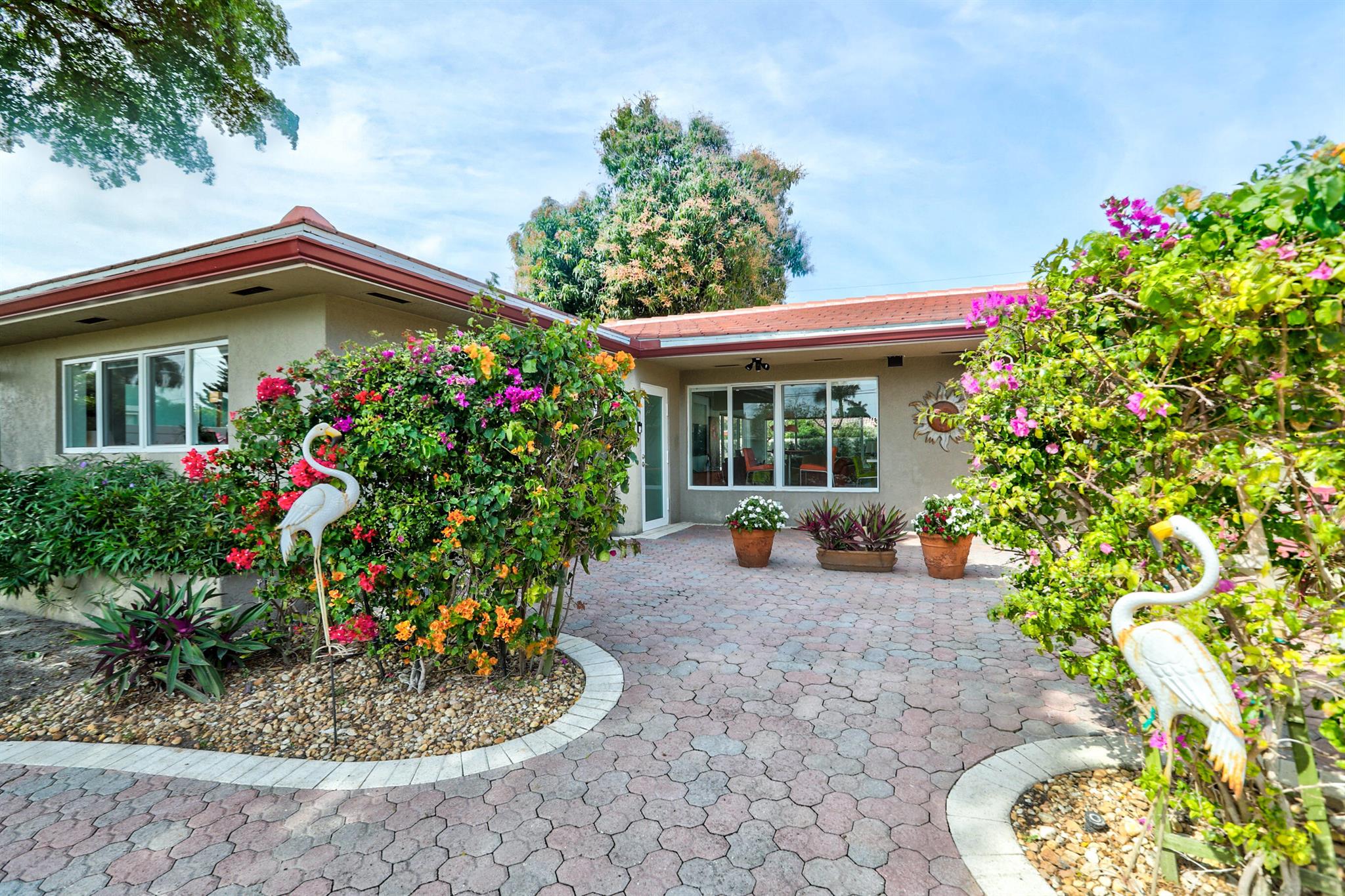 Tastefully renovated 2 bedroom, 2 bath + bonus room with private heated, salt water swimming pool. Everything you expect and need when you're heading to Sunny South Florida! This spacious and ideally located single family home is less than a stones throw from the intracoastal and local beaches and is situated on a large and welcoming lot with sweeping circular driveway and luscious greenery. Open family room, kitchen and dining area with an abundance of charm. Fully air-conditioned with attached 2 car garage, covered porches, modern kitchen and much more. Washer/dryer inside off of kitchen. Photos were taken prior to leasing to tenant in 2021. Impact glass and newer roof (2018).