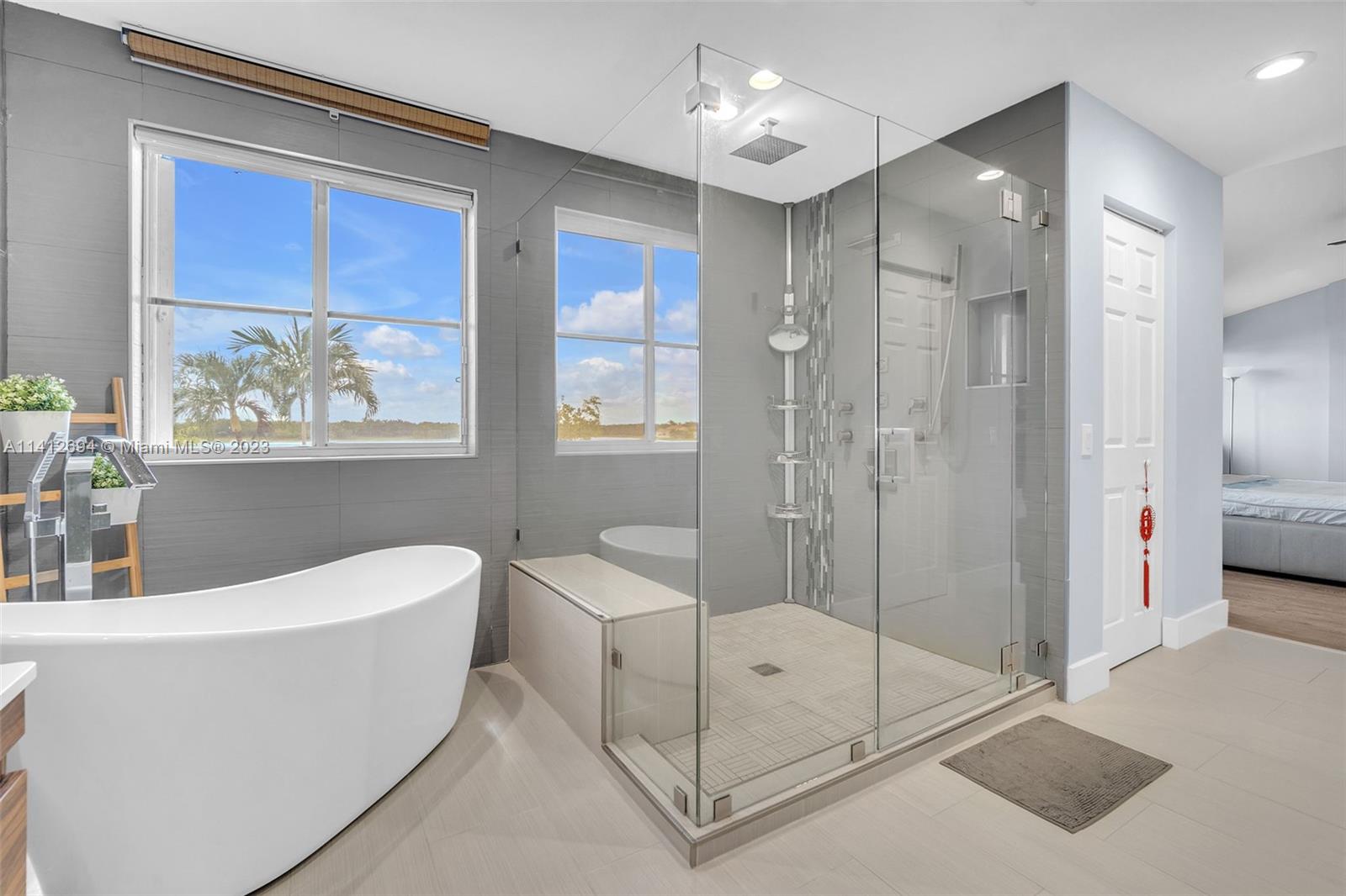 This beautiful, modern 4bed 2.5bath smart home has spectacular lake views on west side. The rustic, fruited entrance with rocks & orchids leads into an open, 20' ceiling, well lit living/dining area with stunning chandeliers that showcase the wood & metal staircase. To your left is a large family area next to the kitchen & b/fast nook with quartz counters, state of the art Samsung appliances & cabinetry enhanced by a glass backsplash. The large master has a den + glass enclosed shower, with tub, double sinks, and finished dual closets. All bathrooms & closets have been refitted & all appliances are newer. Backyard has a pool, is well manicured, has Seegar Apple & Loquat trees + summer kitchen. Downstairs has ceramic, wood like tiles & upstairs is laminate. 5 parking spaces. A "WOW" home!!!