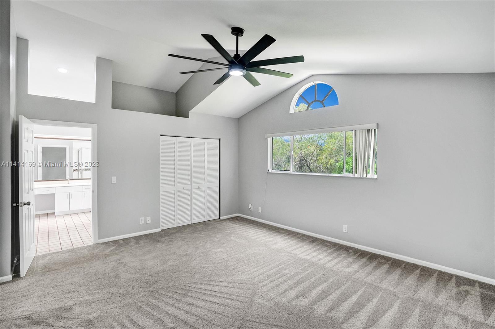 Beautiful 2006 SF 3 bedroom 2.5 bathroom waterfront home is located in the guard gated community of Sunset Cove. This residence is situated on an oversized lot and the backyard is a fully fenced tropical oasis overlooking the canal and lake complete with fruit trees! This 2 story home has a primary bedroom overlooking the water, fabulous closet space and primary bathroom with dual sinks and separate tub and shower. The split floor plan offers 2 bedrooms and a shared bathroom opposite the primary suite. Other features include: a New roof, new insulated impact garage door, gutters, fresh exterior paint, smooth ceilings, a long private driveway offering plenty of parking and more! The HOA provides landscaping, tree trimming, sprinklers & a heated community pool.