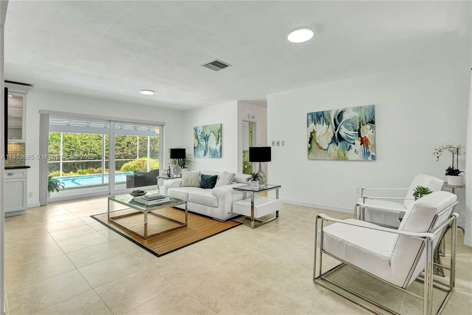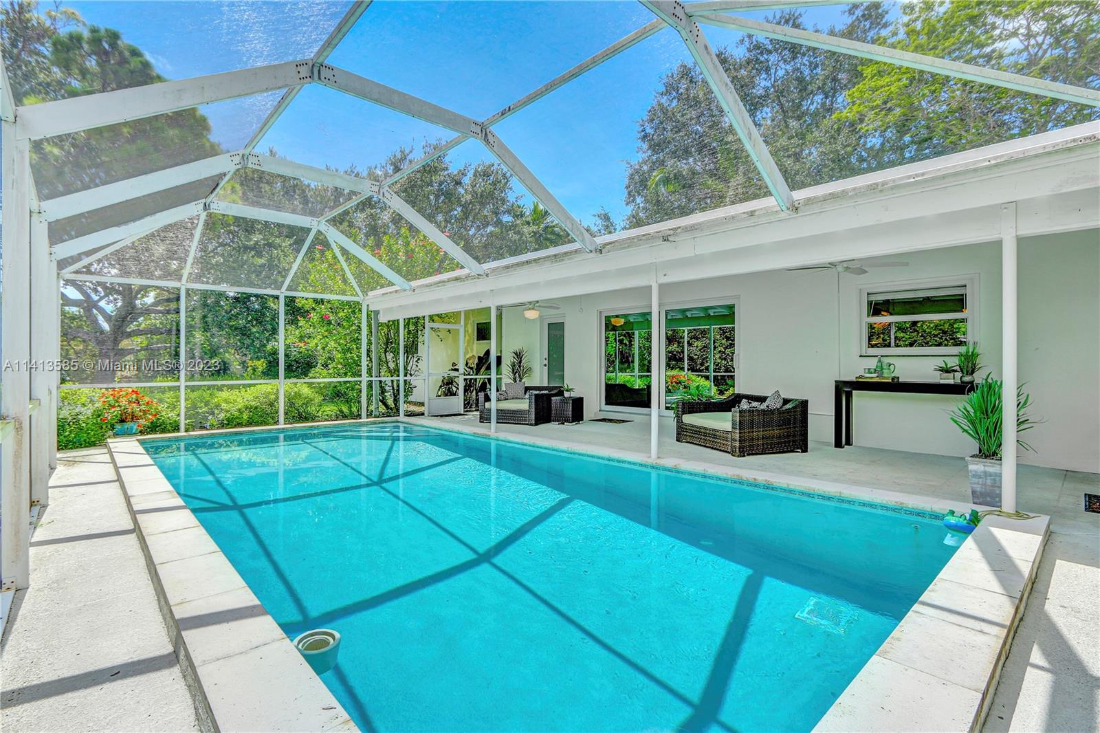 An exceptional opportunity to live in Pinecrest. Lovely 3 bedroom, 2 bath corner lot home offers a comfortable layout with open style main living. Large IMPACT windows invite the light in and give the home modern curb appeal. Stylish white kitchen features glass tile backsplash, stainless steel appliances, granite counters, plus nice storage. Updated Bathrooms. Roof is 4 years old. Situated in a tree shaded neighborhood within a very desirable school district and a prime location to The Falls Mall and business area. This residence features a family-sized yard with privacy landscaping, sparkling pool with spacious covered outdoor patio, a welcoming front porch, and two-car garage. A beautiful property to call home!