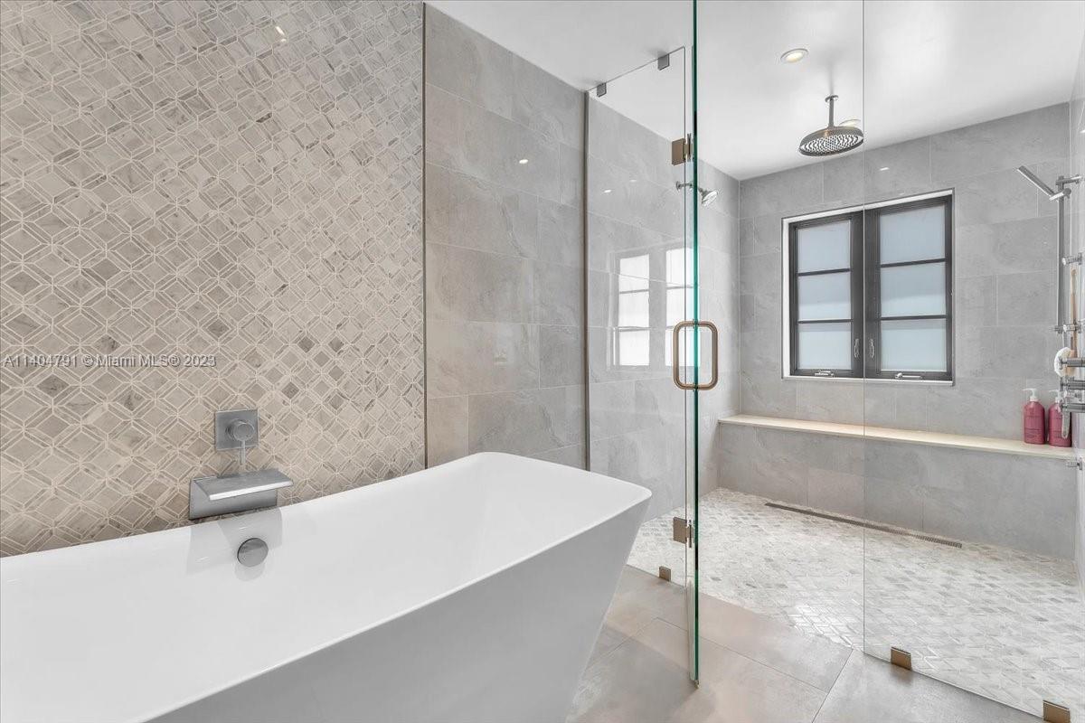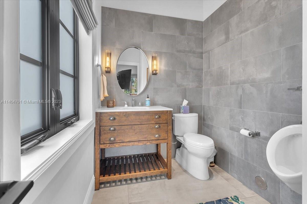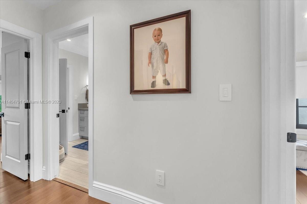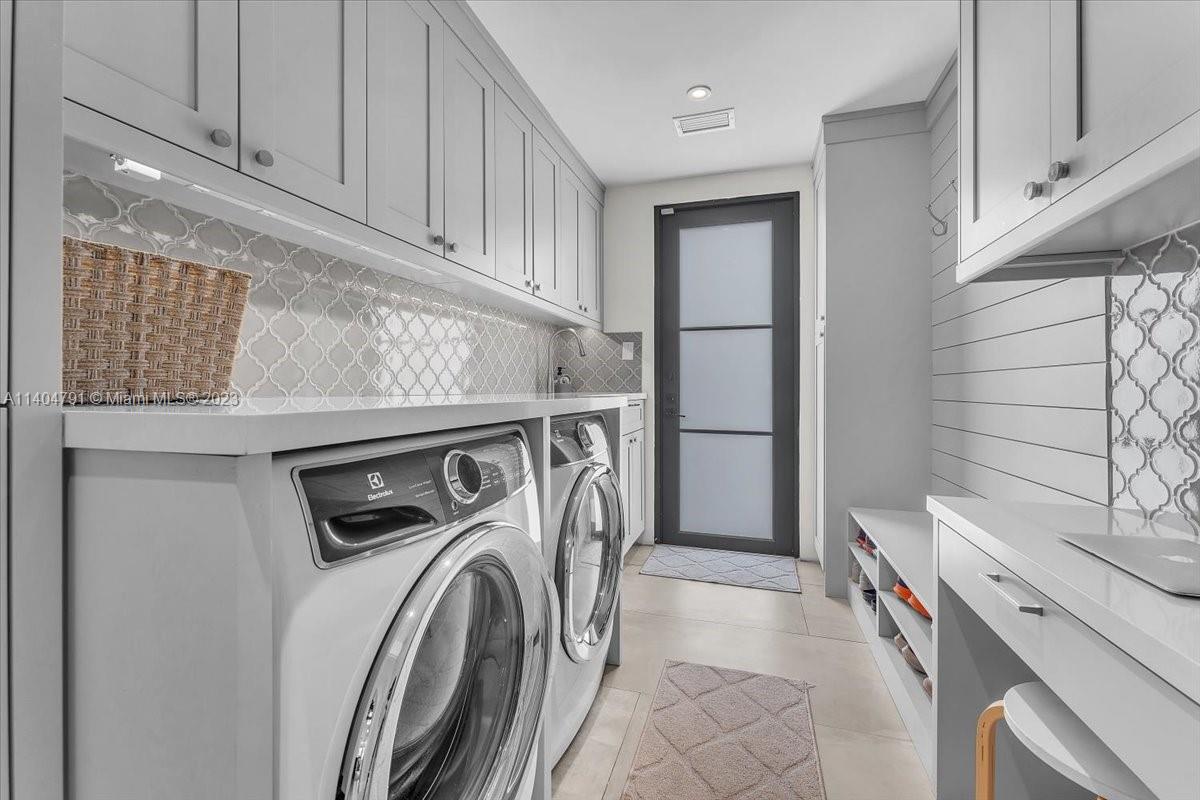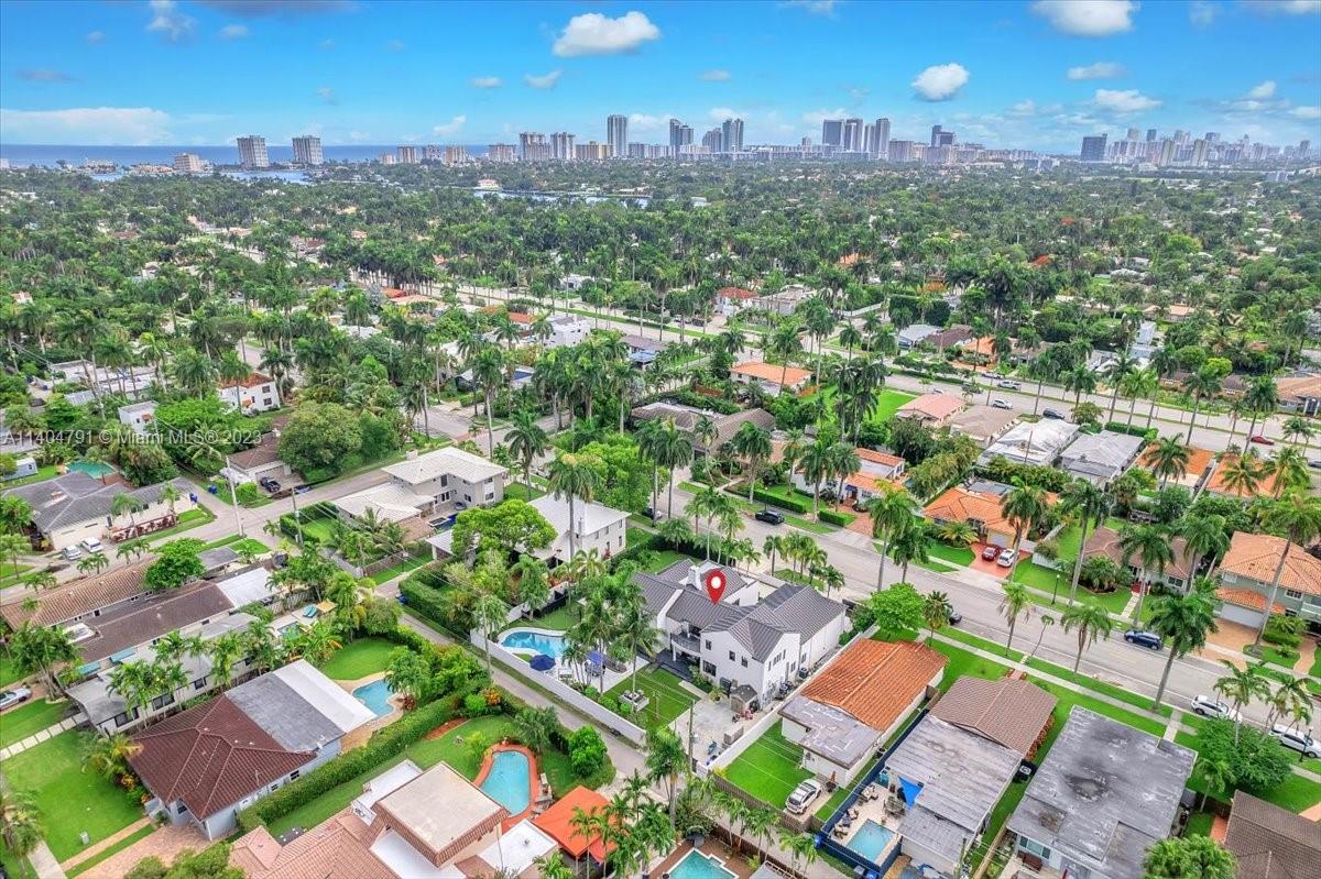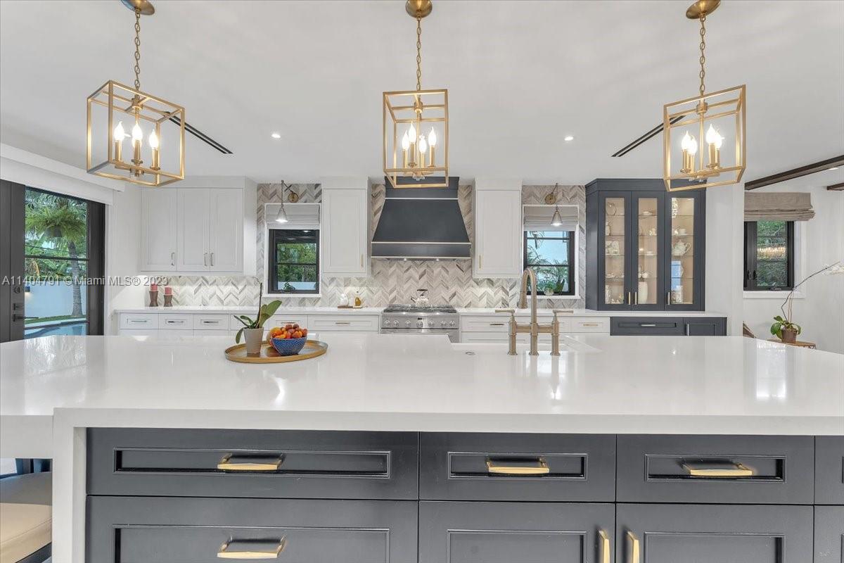 Stunning contemporary estate located on one of the nicest streets in Hollywood Lakes, ready to move in 5 bedrooms/3 baths/2 half baths. Sun-filled interior with stunning finishes throughout the residence. Inviting living, family, dining, recreation room and modern kitchen. Volume ceilings with exposed wood beams. Two Primary bedrooms one downstairs leading to pool area while the upstairs has a beautiful balcony. Primary baths have separate soaking tub and glass door shower. Over 15,000 sq ft lot with a gorgeous freeform pool, putting green, full outdoor kitchen area, sitting area, and beautiful yard. Wall around entire property with two electric gates at front of home and one through alley way. Spacious laundry room. Full size generator. Both sophisticated and elegant.