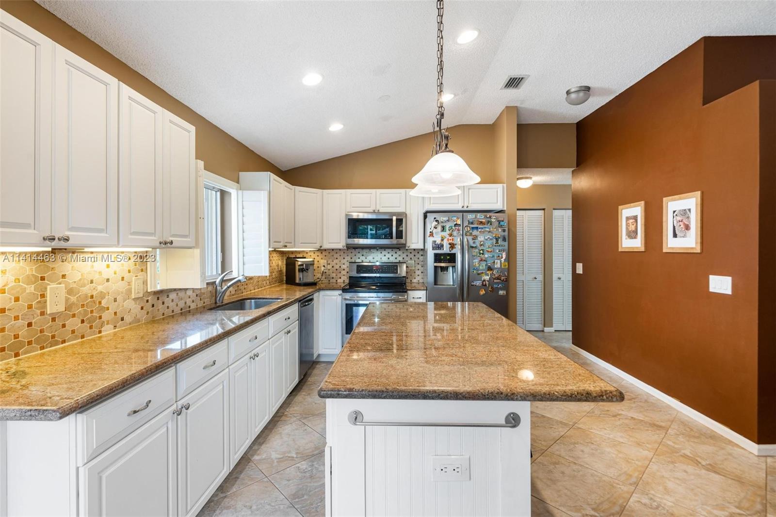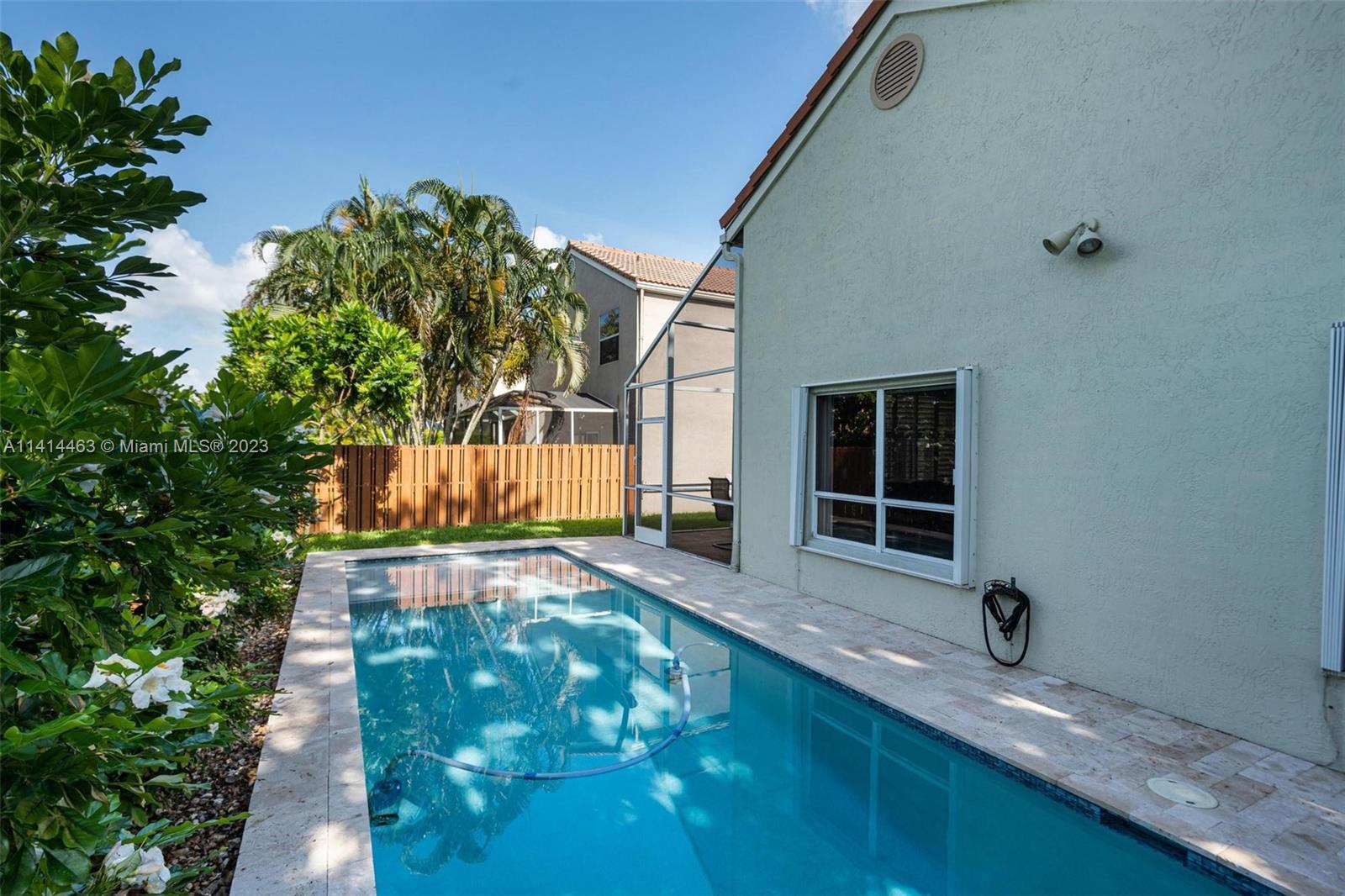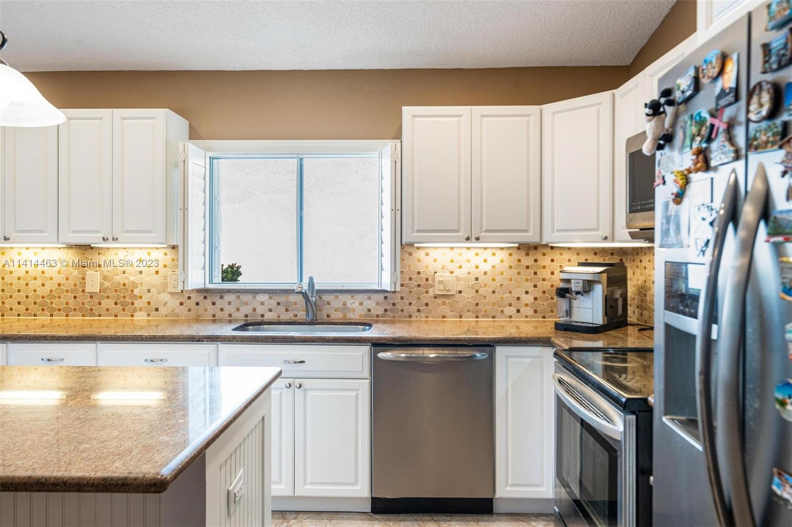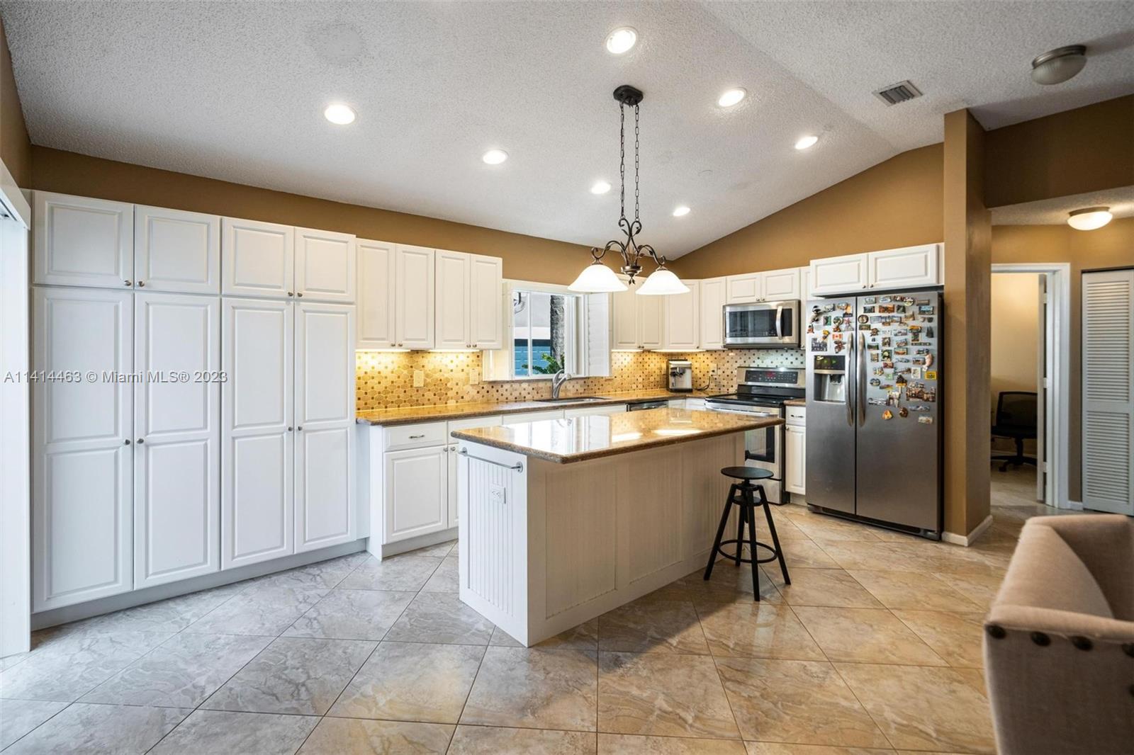 This beautifully updated home is ready for new owners as seller is relocating. Tile floor throughout, hurricane shutters for all windows/doors, open concept kitchen w/ extended cabinetry, stainless appliances, * granite countertops. Volume ceilings, & double doors that open to the expansive master bedroom which boasts a large walk-in closet, large updated bath with separate tub, renovated shower, and double sinks for ample space. Screened in patio is perfect for entertaining, and a BRAND NEW pool (2021) w/ travertine pavers. Newer garage door with shelving upgrades and space for 2 cars. AC is 2015 and roof is 2009. Maintenance includes lawn-front and back, expanded cable with hbo, common area, pool, close proximity to neighborhood park, grocery, restaurant, and more.