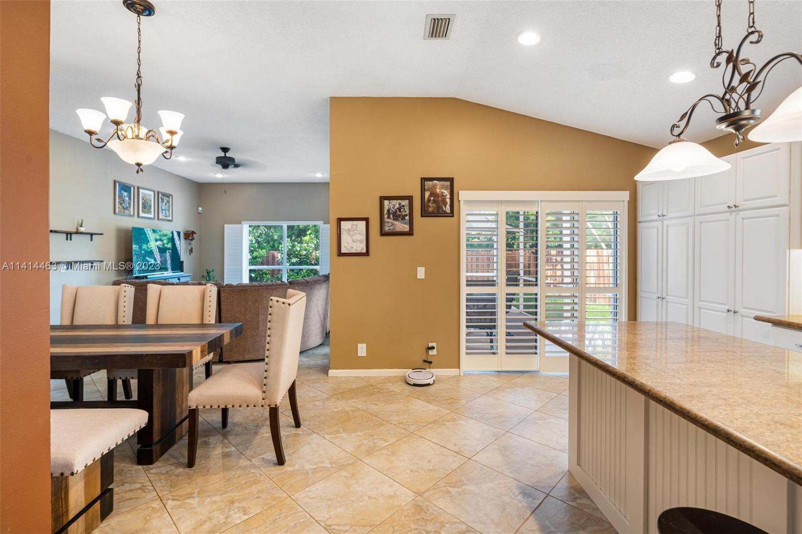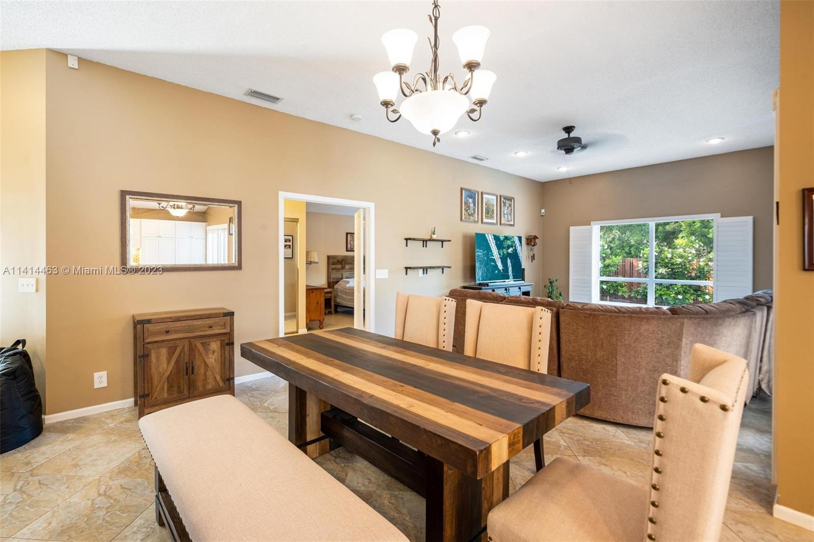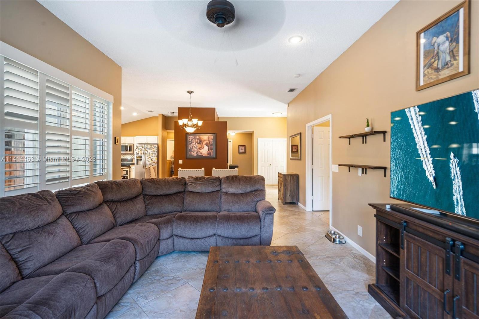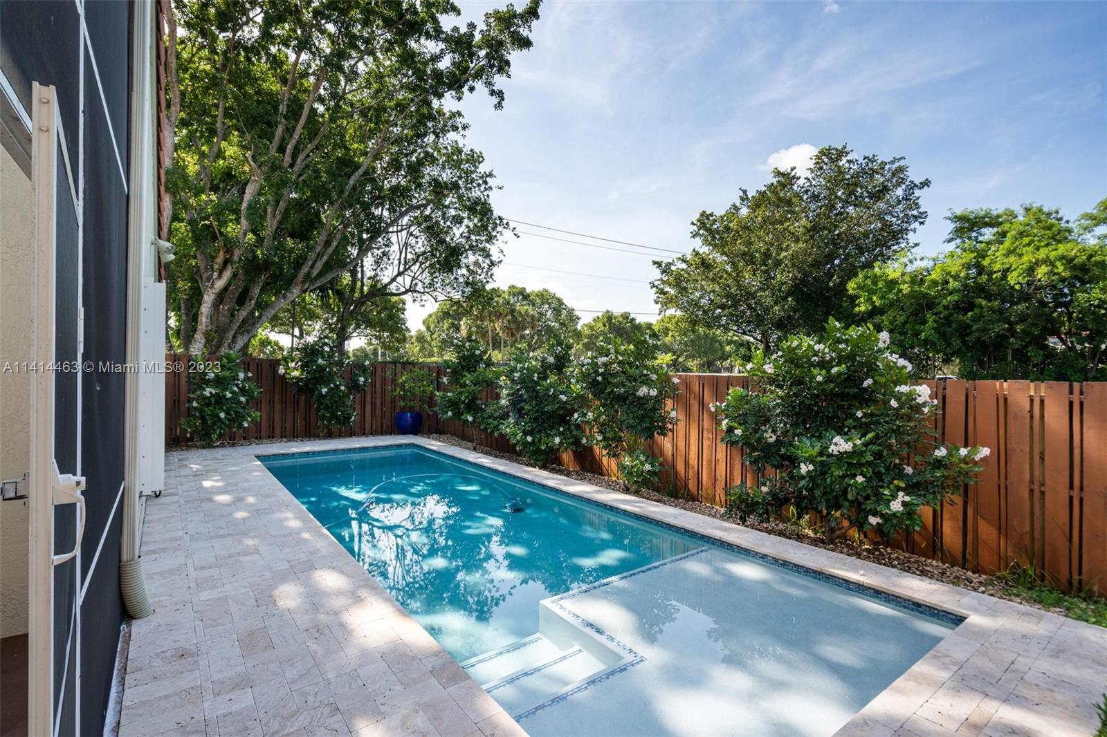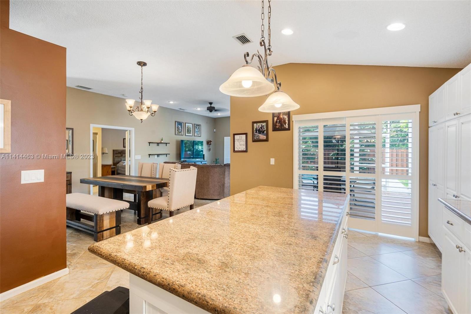 This beautifully updated home is ready for new owners as seller is relocating. Tile floor throughout, hurricane shutters for all windows/doors, open concept kitchen w/ extended cabinetry, stainless appliances, * granite countertops. Volume ceilings, & double doors that open to the expansive master bedroom which boasts a large walk-in closet, large updated bath with separate tub, renovated shower, and double sinks for ample space. Screened in patio is perfect for entertaining, and a BRAND NEW pool (2021) w/ travertine pavers. Newer garage door with shelving upgrades and space for 2 cars. AC is 2015 and roof is 2009. Maintenance includes lawn-front and back, expanded cable with hbo, common area, pool, close proximity to neighborhood park, grocery, restaurant, and more.