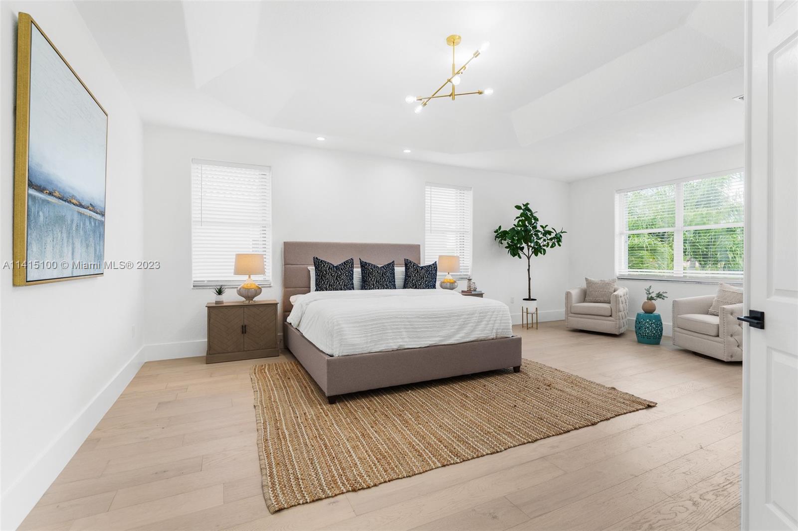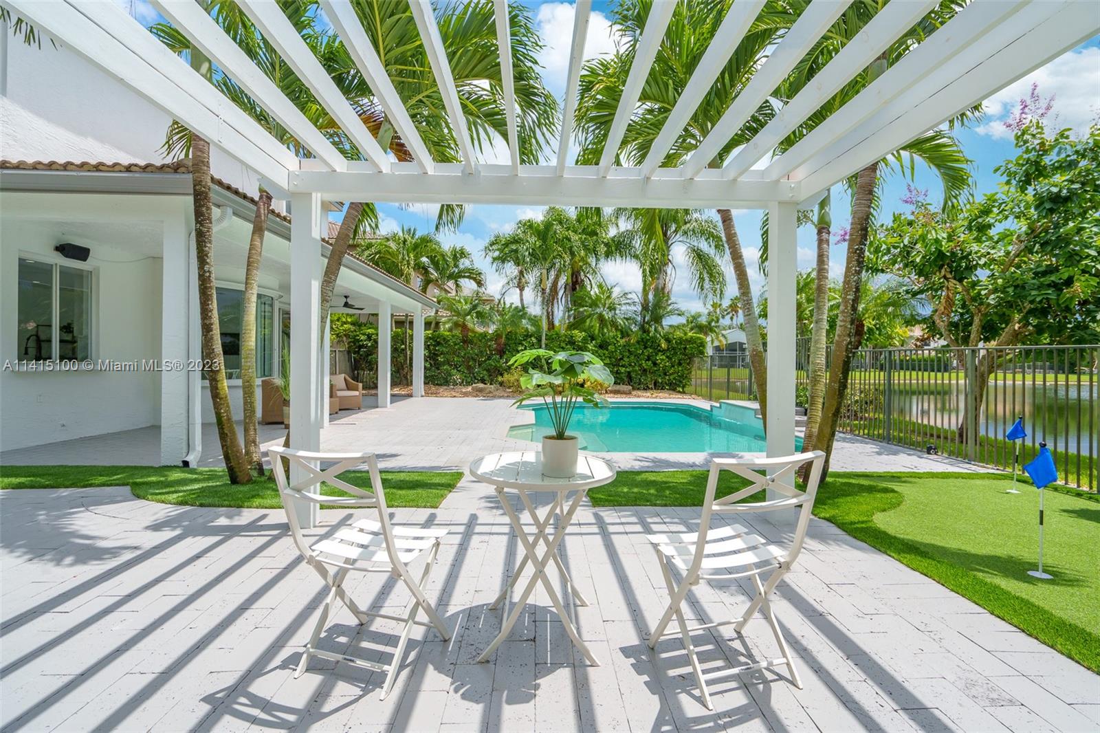 One of a kind masterpiece in Saturnia Capella, one of the most highly sought after communities in West Boca. Exquisitely and tastefully remodeled this home boasts 5BR and 4BA. Situated peacefully on a lakeside lot, the large swimming pool is accentuated by a charming pergola sitting area and personal putting green. Inside, high volume ceilings show off the open floor plan punctuated by gorgeous oversized porcelain floors. No detail has been overlooked in this stunning home. Full house Generac generator, smart home SONOS system, speakers throughout, thermostatic shower system panels in bathrooms, elegant modern LED lighting and fixtures. Main air handler is 2022 and is equipped with dehumidification system. Community clubhouse has pool, tennis courts, workout rooms and more.