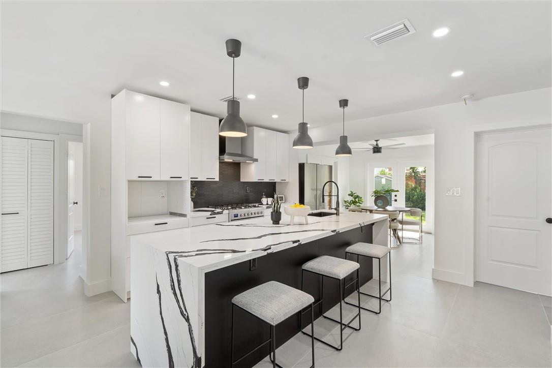 Luxury awaits in this 4-bed, 2-bath newly renovated home. Flooded with natural light, the open floor plan and chef's dream kitchen with a quartz island and modern cabinetry make for a bright and inviting space. The bathrooms and tiled flooring are all brand new, and impact windows and doors offer added security. Enjoy outdoor dining on the porch and patio with a view. Each bedroom has its own closet, and the master bedroom suite is a true retreat, featuring a unique master bathroom design with his and hers showers and a floating double vanity. Located just minutes from Las Olas and the beach, with easy access to amenities and shopping, this home is a must-see for those seeking modern living. Schedule a viewing today!