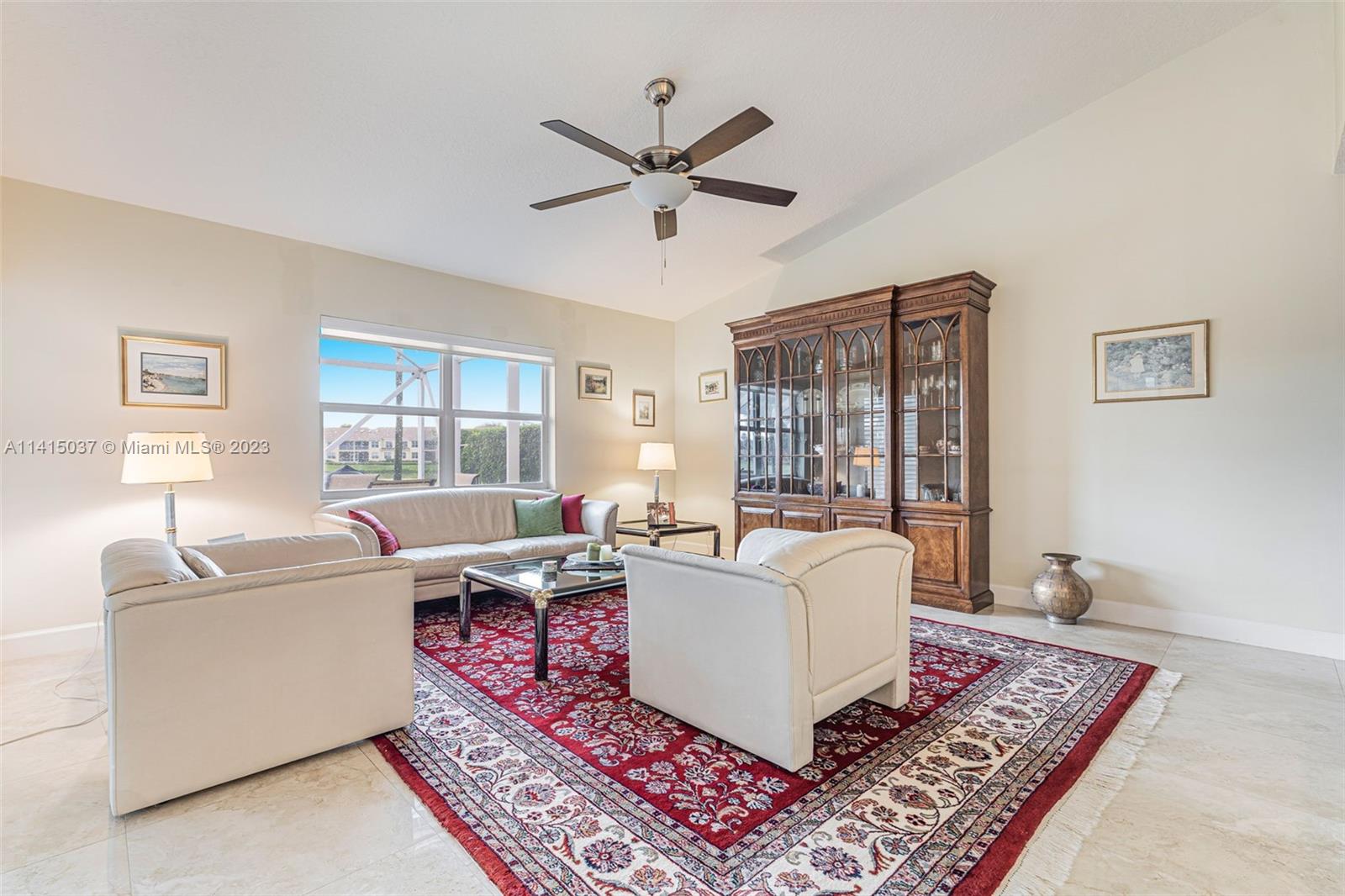 Gorgeous home located on the golf course! Two separate gathering places include a TV viewing area and a conversation area. Two eating areas include a formal dining area and a separate, informal table setting. Beautiful, neutral tiled floor and engineered hardwood in the bedrooms. The interior boasts warmly updated bathrooms and kitchen with stainless steel appliances. New Samsung washer & dryer duo with steam feature. Panoramic view of the golf course, lake and three fairways of the course. Impact Windows throughout. Roof replaced in 2009. AC 2015. Boca country club offers a new public gulf and no membership is required. 24 hours manned security gate, just minutes from Downtown Delray and Boca Raton. A+ rated schools.