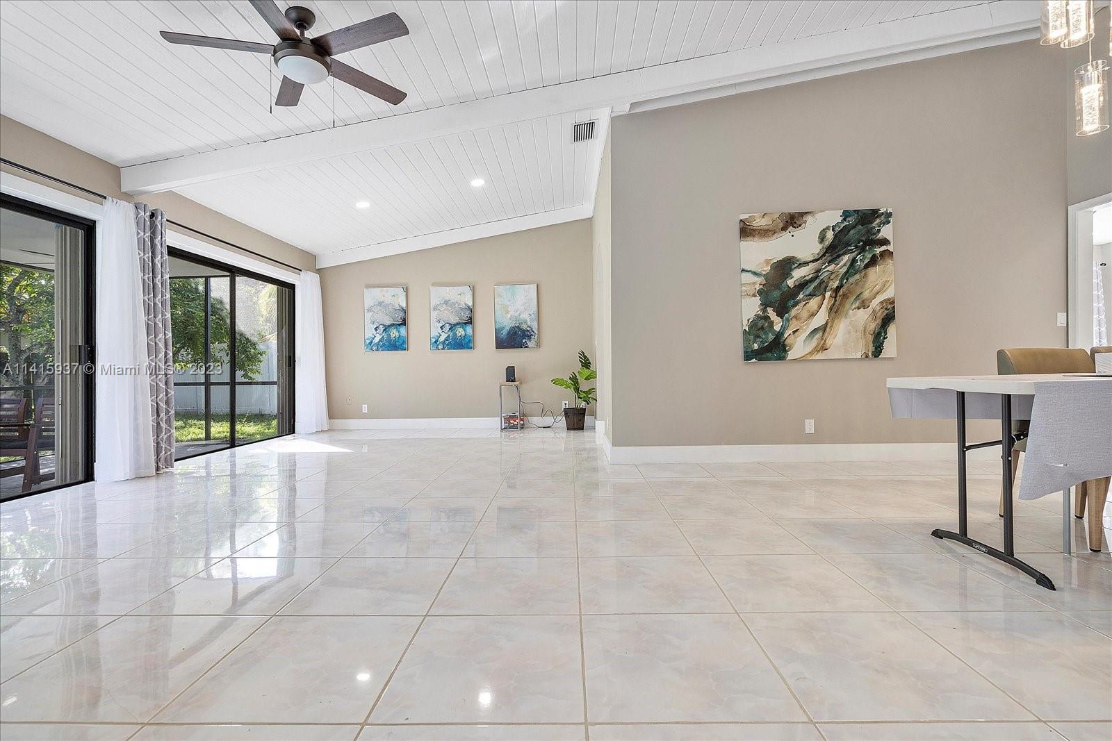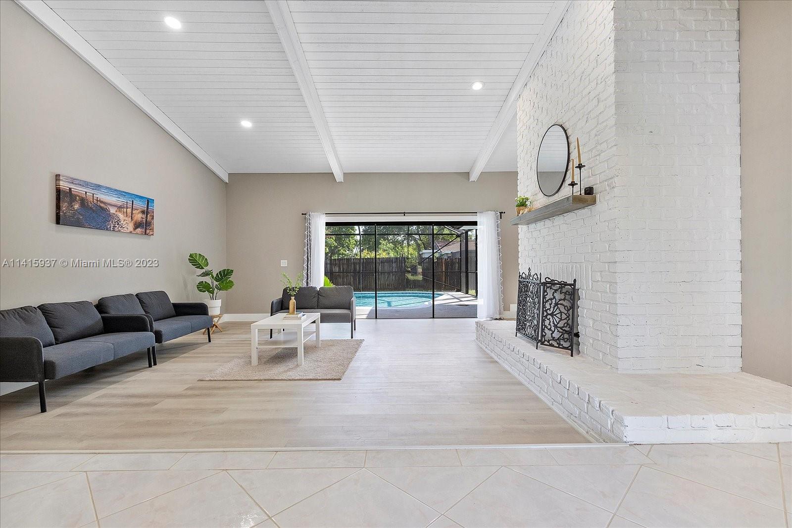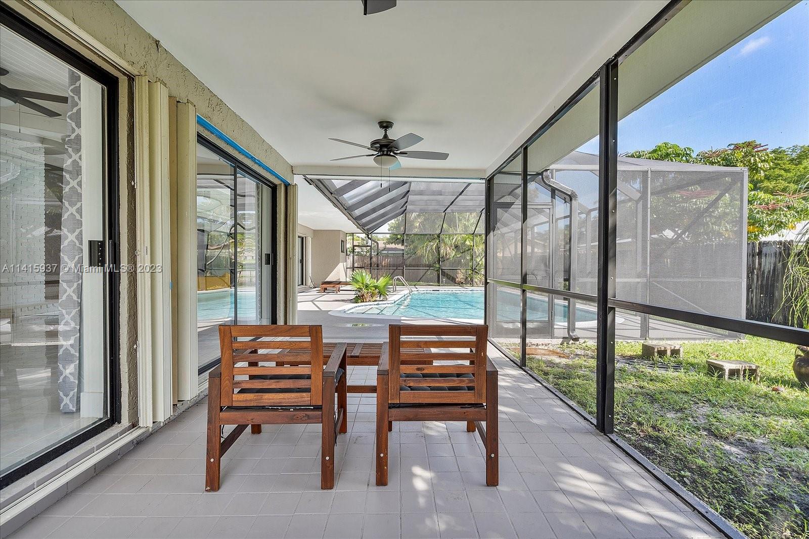 BEAUTIFUL HOME LOCATED IN THE HEART OF JACARANDA COUNTRY CLUB. THIS HOME FEATURES BEAUTIFUL UPGRADED HIGH VAULTED CALIFORNIA CEILINGS AND A LARGE FIREPLACE IN THE LIVING ROOM AREA.INCREDIBLE OPEN FLOOR PLAN. ENJOY EXPANSIVE, OPEN FLOW WITH MUTIPLE , FLEXIBLE LIVING , OFFICE AND DINNING SPACES. NEW SS APPLIANCES IN KITCHEN. LARGE MASTERBEDROOM WITH HIGH VAULTED CALIFORNIA CEILINGS. 2 COVERED SCREENED PATIOS. BRAND NEW FRONT DOOR AND IMPACT WINDOWS. ALL SLIDING DOORS HAS ACCORDIAN HURRICANESHUTTERS. GOLF VIEW FROM FROM FRONT.
