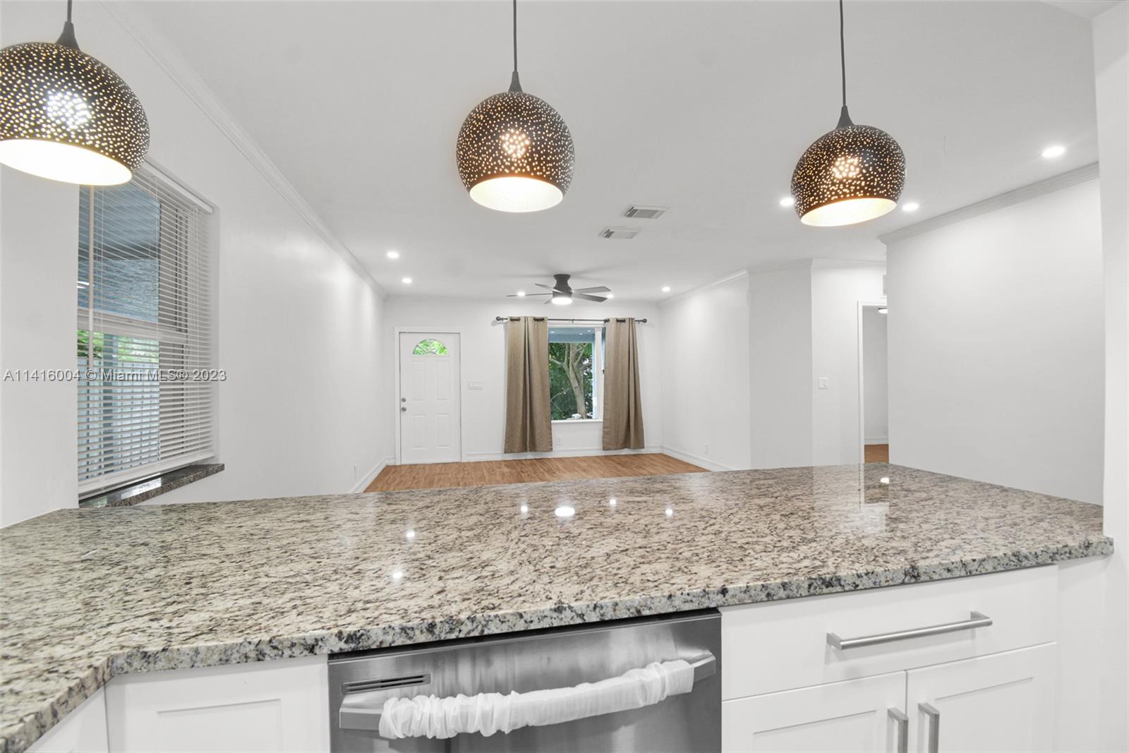 **Huge price drop** Renovated, charming 2/2 (could easily be converted into a 3/2) in East Fort Lauderdale close to Wilton Drive & downtown Fort Lauderdale Financial district & Las Olas! This home features open kitchen concept, with large bar sitting area. The new kitchen features contemporary white cabinetry with granite countertops and premium brand new SS appliances. New premium washer and dryer. Renovated luxurious bathrooms. Oversized pool with huge travertine deck to enjoy the magnificent Florida weather. Lots of open patio areas, with new travertine tile, great for entertaining, an outdoor shower & large fenced in yard for pets to enjoy! Covered parking in carport and space to park several cars in the long driveway. Sold as-is. Seller motivated!!