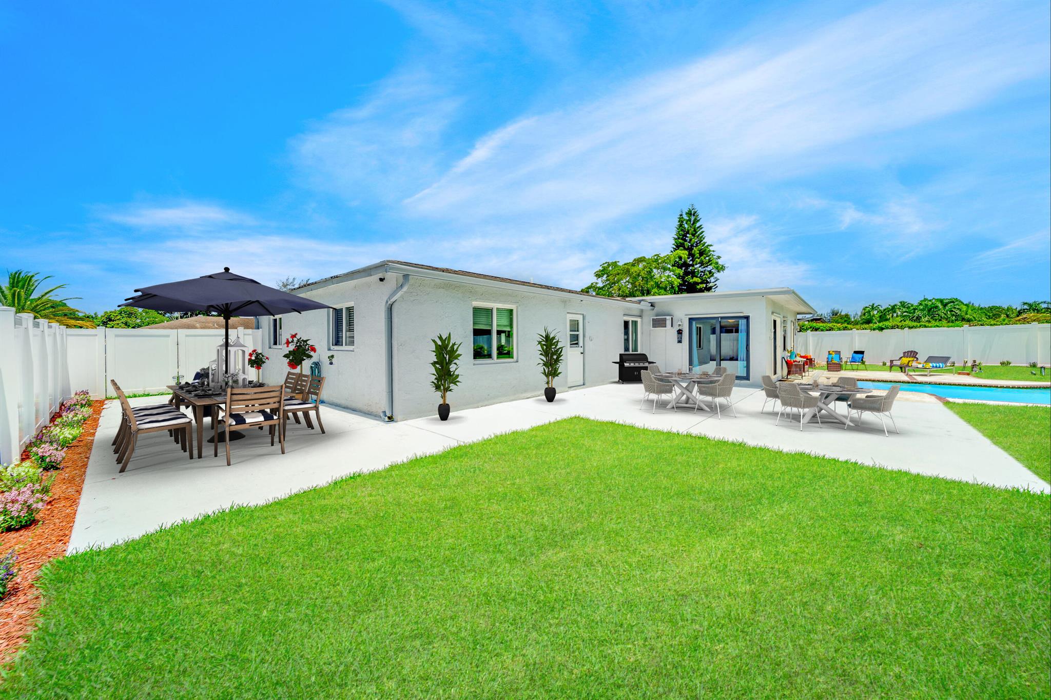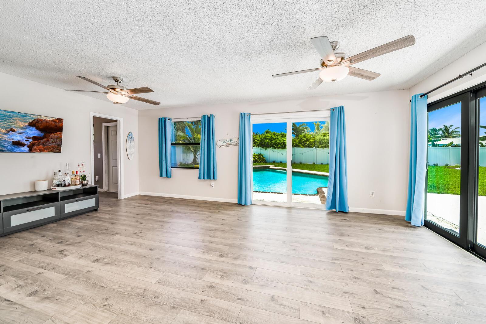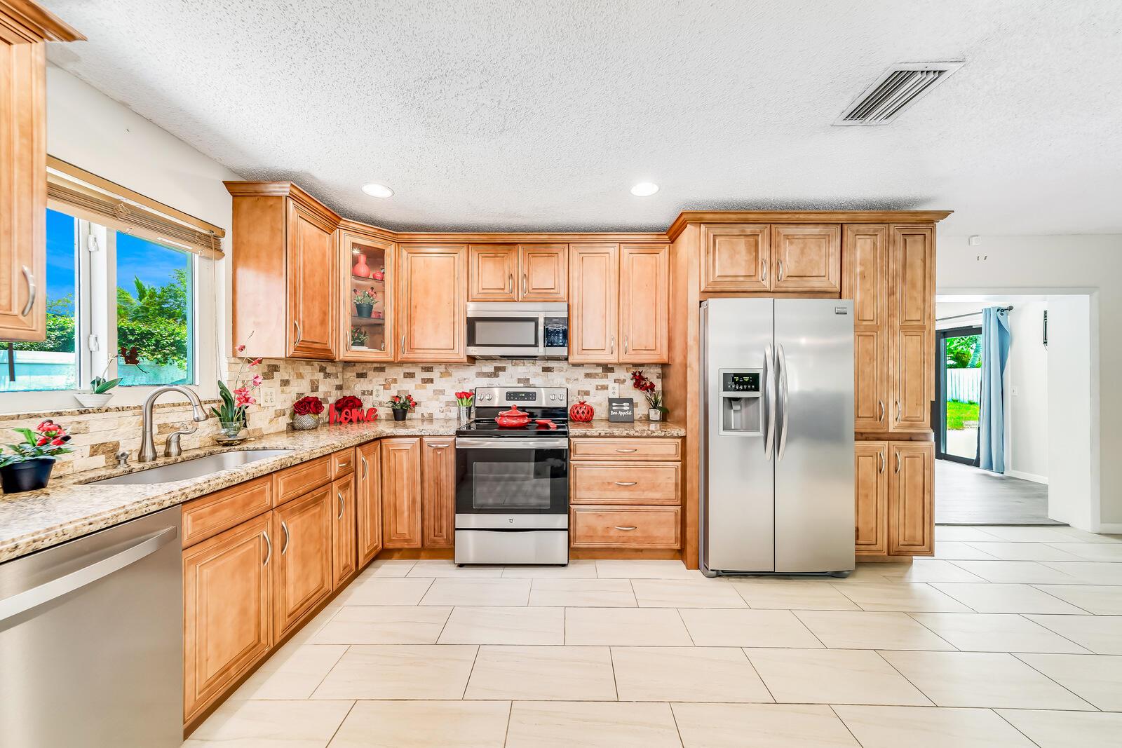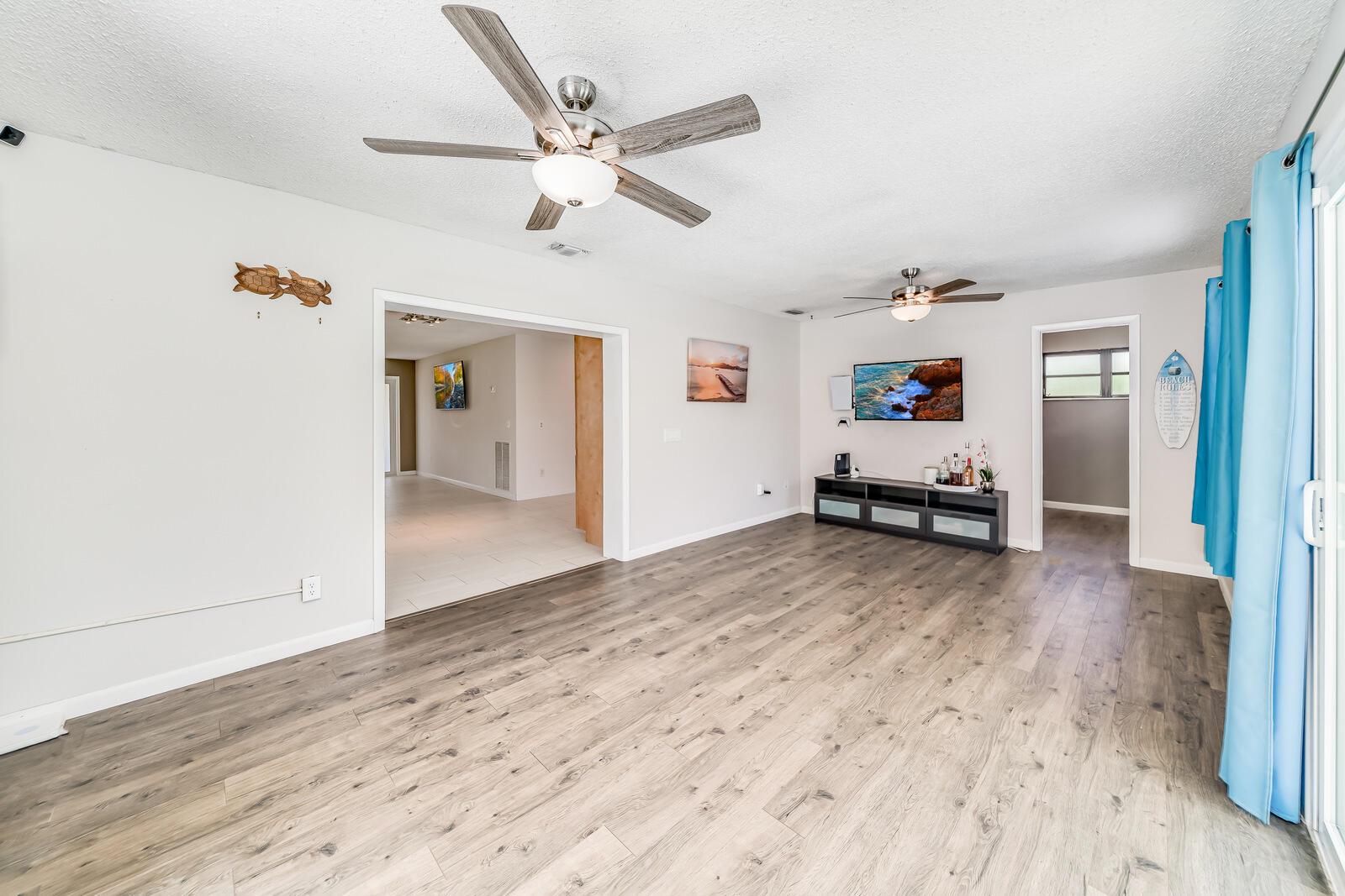 Spacious & Open 4 Bedrooms+2 Bonus rooms, 2 Baths, 1 Car Garage, 2 Car Wide Driveway, ENORMOUS POOL & YARD with a 10,626 Square Foot Lot! One of the biggest lots in Palmetto Pines Plus & its on a cul-de-sac. New PVC fenced in yard with a double wide gate that leads to a large concrete slab & tons of green grassy area as well. Impact doors & windows! Tile & laminate flooring throughout. Fabulously updated & stylish kitchen w/granite counter tops, natural stone backsplash, newer stainless appliances & wood cabinets. The master bedroom has an en-suite bathroom plus a door that leads out to the pool, making it a cabana bathroom as well! Master suite & guest bath are both updated. Huge bonus room makes a great family room or man cave