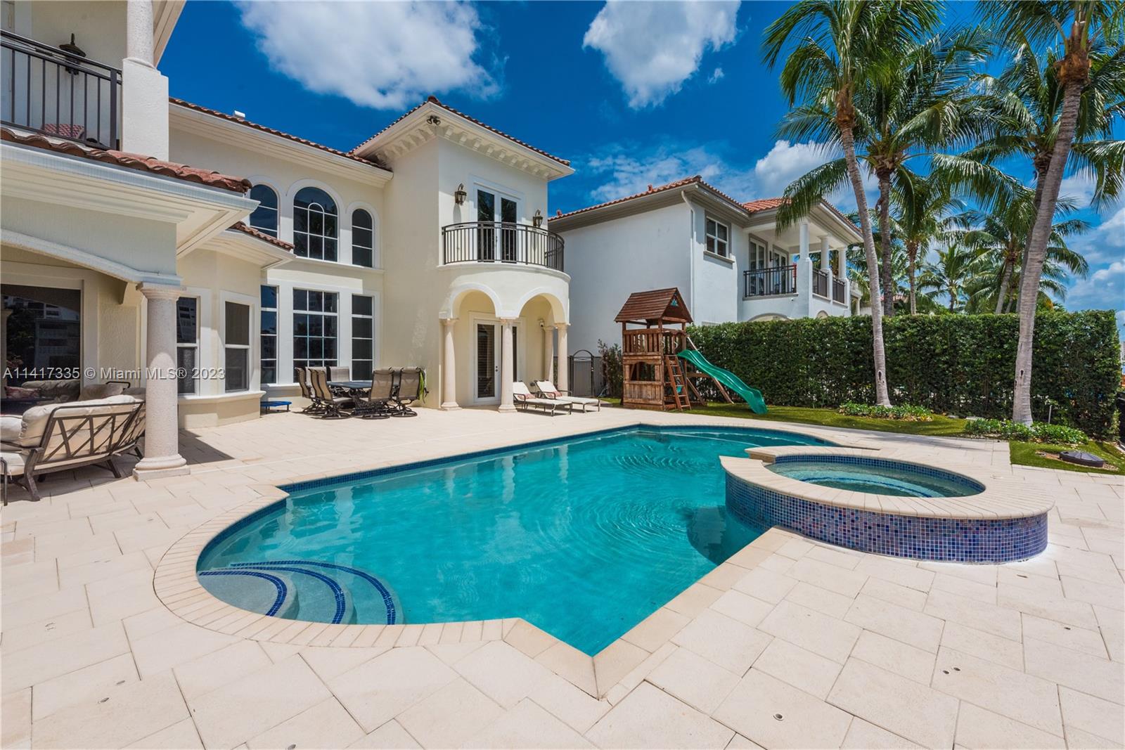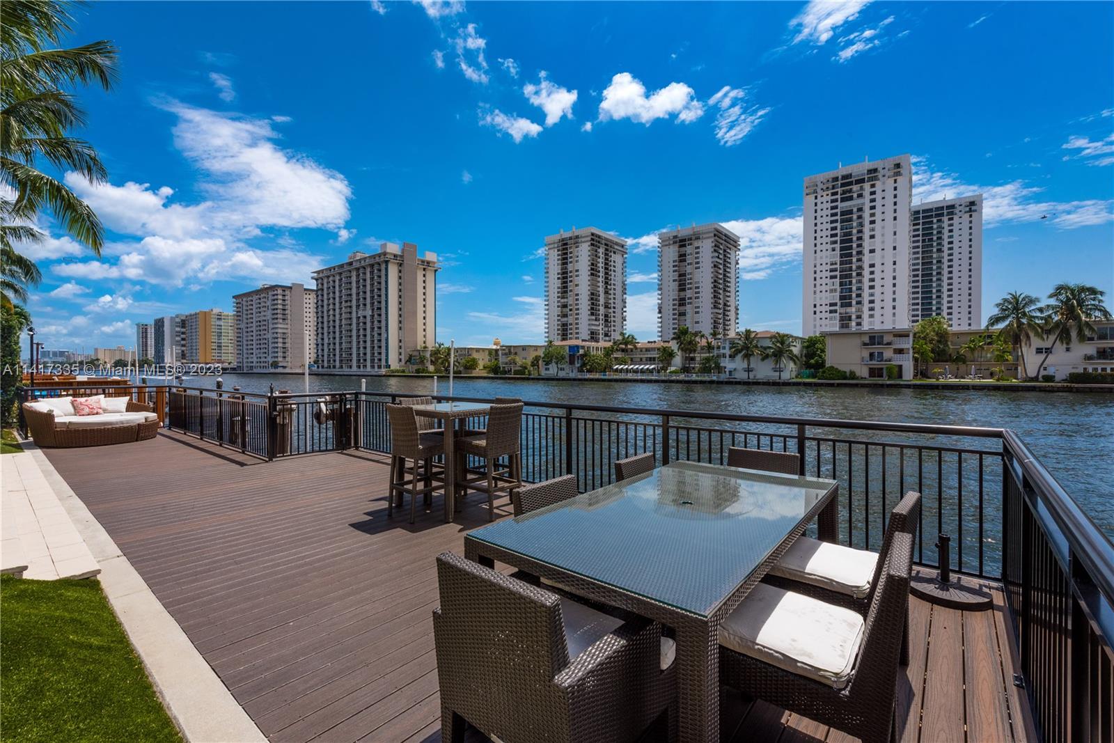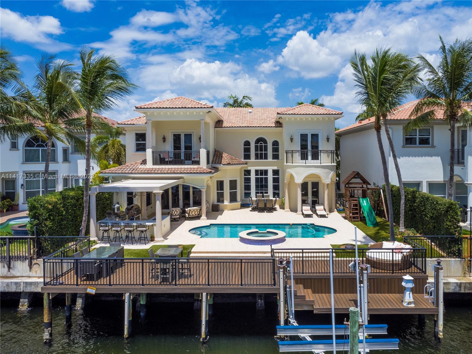 Stunning two-story waterfront home located in the Estates of Harbor Islands! Featuring 5 beds, 5 full bath, 2 half baths, office/den/playroom & brand new movie theater. Chef's kitchen equipped with SS appliances, two ovens, gas stove, quartz countertops & big pantry. Open layout connects the kitchen to the living room, family room & formal dining room. Volume ceilings, impact windows & doors. Large master suite with private balcony overlooking the intercostal, custom closets, jacuzzi tub & double sinks. Spectacular outdoor space with a brand new summer kitchen, brand new extended dock, pool with jacuzzi & dock for your vessel. Deep water, no fixed bridges, easy ocean access. Community offers an array of amenities: marina, clubhouse, parks, tennis/basketball courts, security & gym and more.