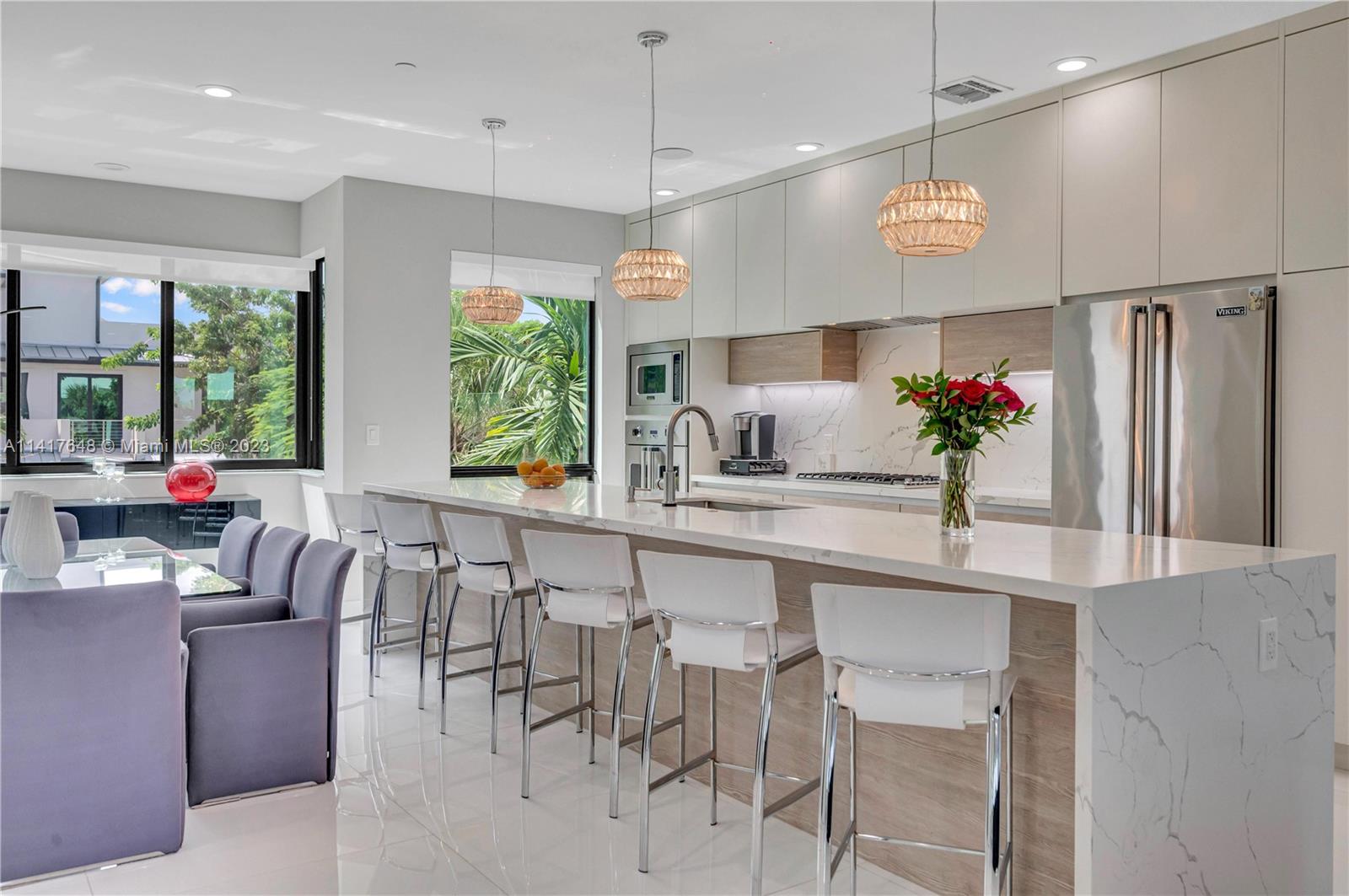 EXTRAORDINARY 3-STORY TOWNHOUSE, ALL CONCRETE CONSTRUCTION, WITH ELEVATOR ON LARGE CORNER LOT !!! Quiet and Private Corner, 3bedroom 3.5 bath + den, 2 car garage, private pool, patio, gas BBQ area/fridge with wind sensor retractable awning/light, 2nd floor covered patio overlooking pool n front balcony,3rd floor sundeck,3 cameras (Entrance, Pool, Garage), Smart Home wired, central vacuum, Natural gas lines for all Appliances/BBQ, VIKING APPLIANCES, French Door Oven, Security Safe anchored in Closet, upgraded light fixtures and window coverings, gorgeous 36X36 White Tile in living areas, wood floors in bedrooms. Chef's Kitchen-Wood cabinetry, Quartz tops. Upgraded bathrooms all with rainfall shower heads,Ferguson fixtures. Come See!! Lots of Upgrades including Garage Floor Coating.