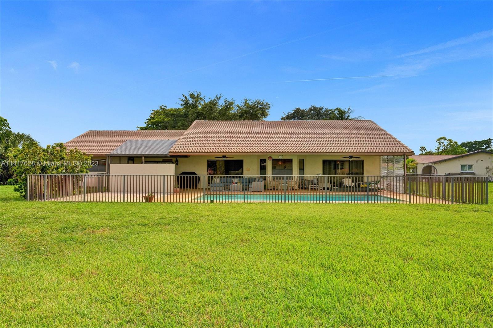NO HOA!! Welcome home-this Coral Springs Country Club subdivision spacious home is situated on an oversized lot (almost 1/2 acre- .41 acre) Install a 6ft privacy fence & enjoy! Complete w/pool & secluded jacuzzi. Paver driveway allowing ample parking in addition to the 2 car garage. Located at the end of the cul de sac minutes from everything you need in Coral Springs-expressways, restaurants, parks, Sportsplex, Publix, schools, FLA Live Arena. New electrical panel 2023. New water heater 2022. Each of the 4 bedrooms has large walk in closets. There's a newly remodeled shower in the master bath along with a roman tub to relax all your stress & cares away in. Sky lights. Vaulted ceilings. Plenty of room for entertaining, family and making this a lifetime home. Did I mention NO HOA!