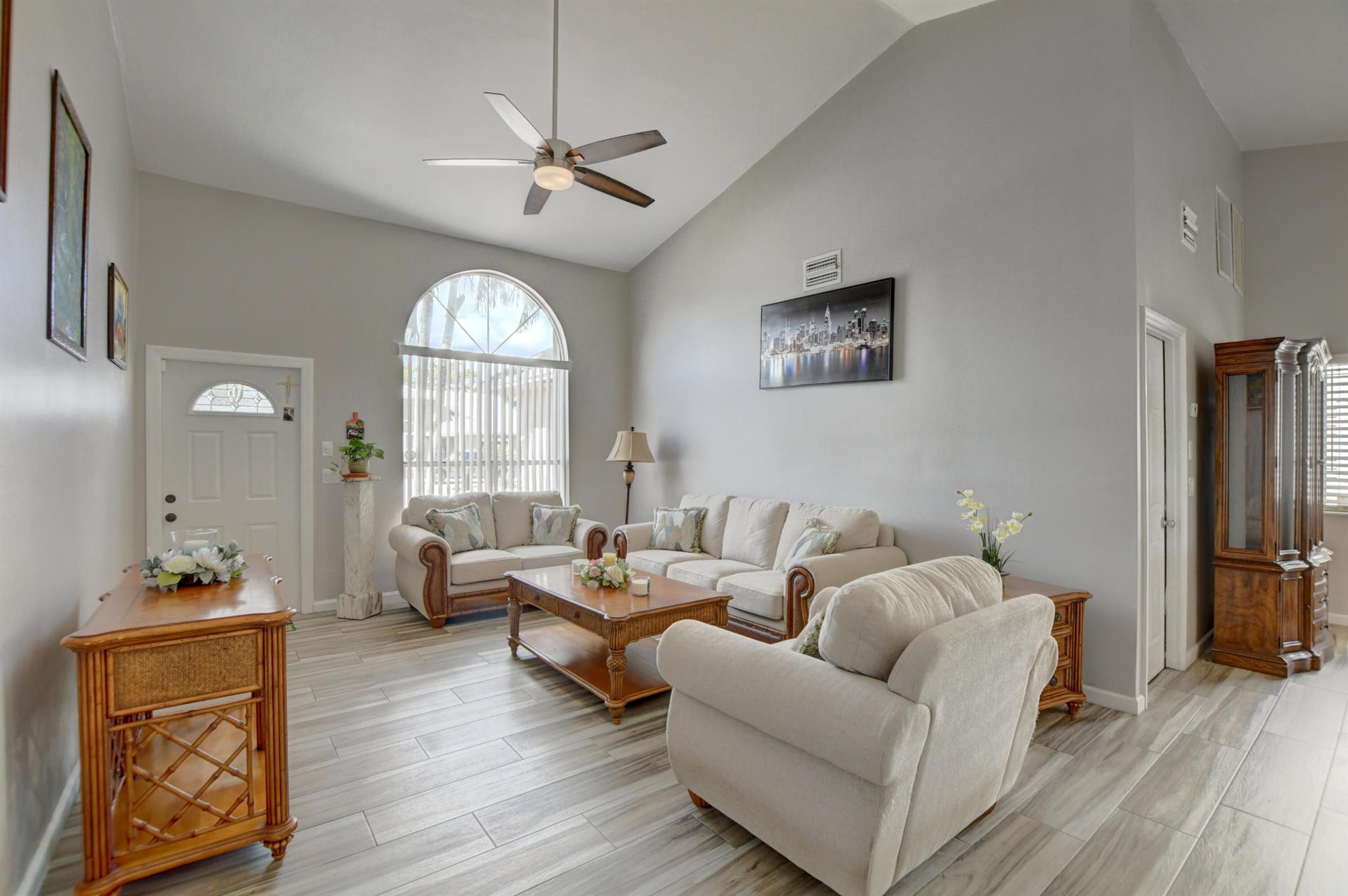 Welcome to this beautiful single-family home located in a peaceful and desirable neighborhood of Country Park in Boca Raton. 3 bedrooms, 2 baths, 1 car garage This property features exceptionally large rooms filled with natural light, and recently painted. The kitchen is updated with SS appliances and granite top. This home has been RE-PLUMBED W/ COOPER PIPES, a tankless water heater. Porcelain tile all around that house with a new modern ceiling fans and lamps. The front of the house was remodeled with beautiful stone flooring tiles, plus a new white vinyl fence for more privacy. Turnkey with a great location near the expressways, shopping centers, restaurants and parks. and let's not forget the A+ grade schools, low HOA $108 with great amenities and pet friendly community.