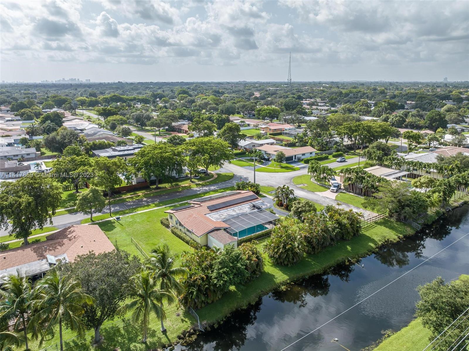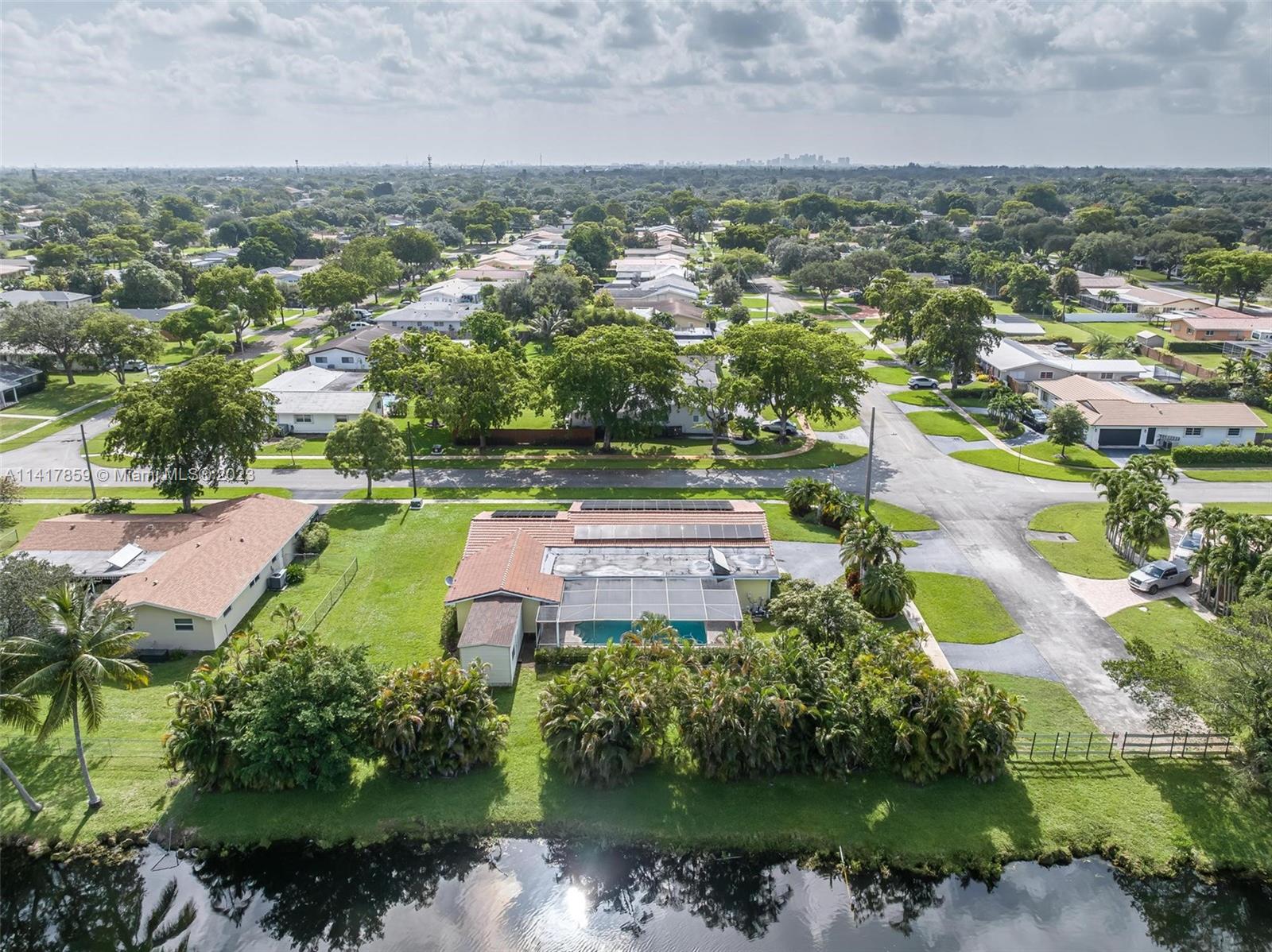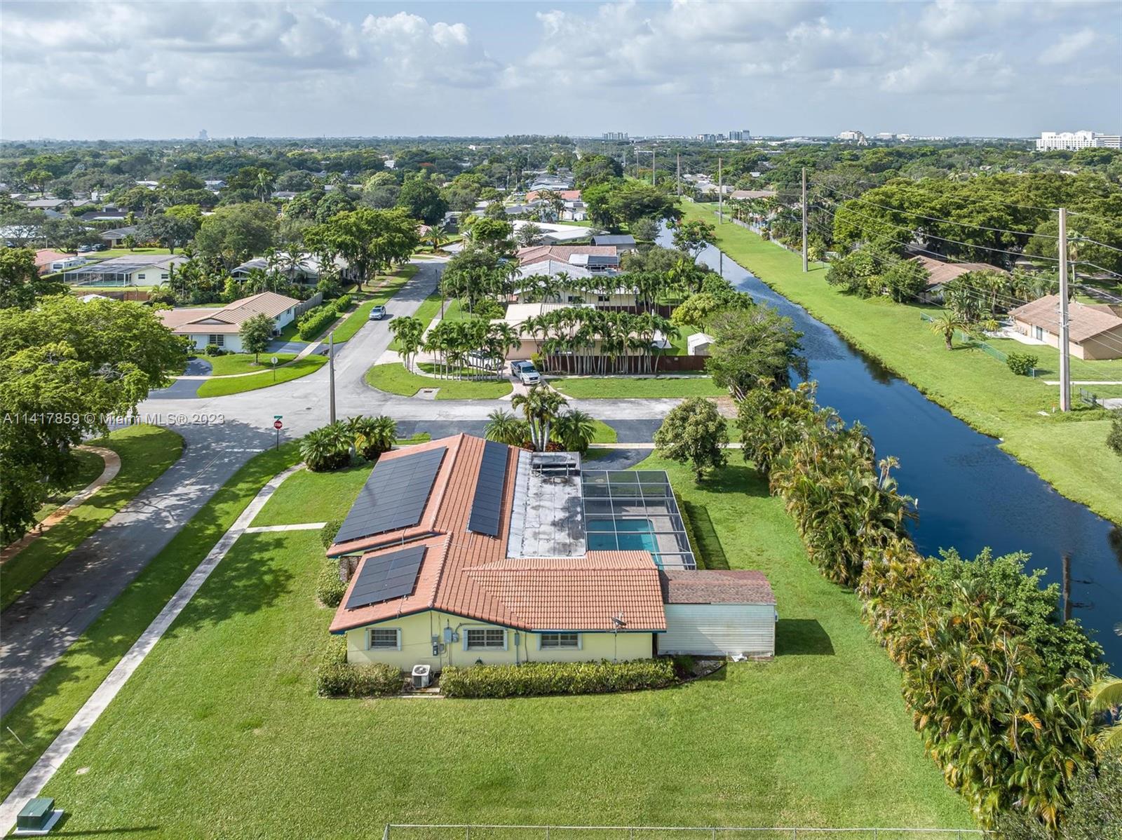 Welcome to your dream home in South Florida! This spacious single-family residence features 4 bedrooms, 2 bathrooms, 2,143 sqft of living space, and a 2 car garage. Enjoy the tranquil canal waterfront views from your own backyard, complete with a pool. Updated kitchen boasts granite countertops and stainless steel appliances, while the updated cabana-style bathrooms lead out to the patio/pool area. With a new roof, newer A/C, accordion shutters, a hurricane-rated garage door, and solar panels, this home is both secure and energy-efficient. The 17,809 sqft lot offers privacy and serenity in a quiet neighborhood and has space for boat or RV. Conveniently located near shopping, dining, and entertainment. Walking distance to Liberty Tree Park. Don't miss out on this incredible opportunity!