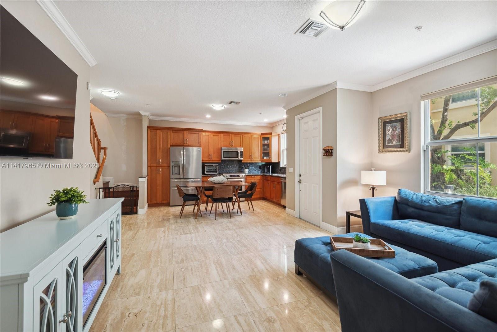 Stunning and spacious home on prestigious community Artesia! Corner unit with 3 bed/3.5bath Showing like new, living area and kitchen with marble floor, kitchen features 43” cabinets with granite countertops & stainless steel appliances including gas range, wood floor stairs, master bedroom wood floor and walk- in closets, custom made closets! Start your resort lifestyle right away with amenities that are second to none including pools, tennis, sawgrass mills shopping and immediate access to Sawgrass Expressway/I-75. Huge car garage & impact windows, water heater and dryer. Don't miss this great opportunity!