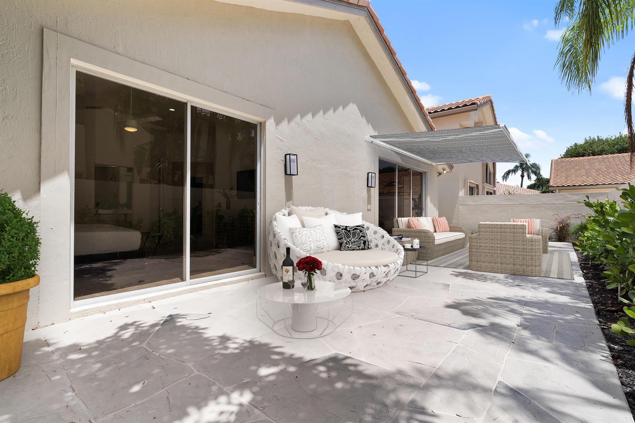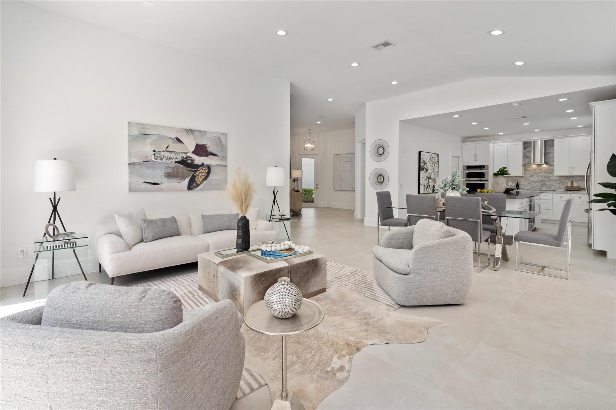 A modern home that's both magnetic and timeless, this Laurel Pointe property sparks pure joy for all who enter its spacious, distinctly contemporary design. Not only does this property exemplify an easy open floor plan, luxe finishes, sleek lines, and infinite natural light, but it brings the perfect balance of utility and tranquility. High-end, cutting-edge designer finished 3-bed, 3-bath single-story home is truly turn-key, private, and looks and feels brand new. Relax and retreat to your oversized master bedroom and soak in your stylish primary bathroom. Craft a refreshing cocktail while preparing a gourmet meal in your state-of-the-art chef's kitchen. LOCATED Immerse yourself in eye-catching indoor and outdoor spaces that expertly showcase the beauty of Boca's natural surroundings