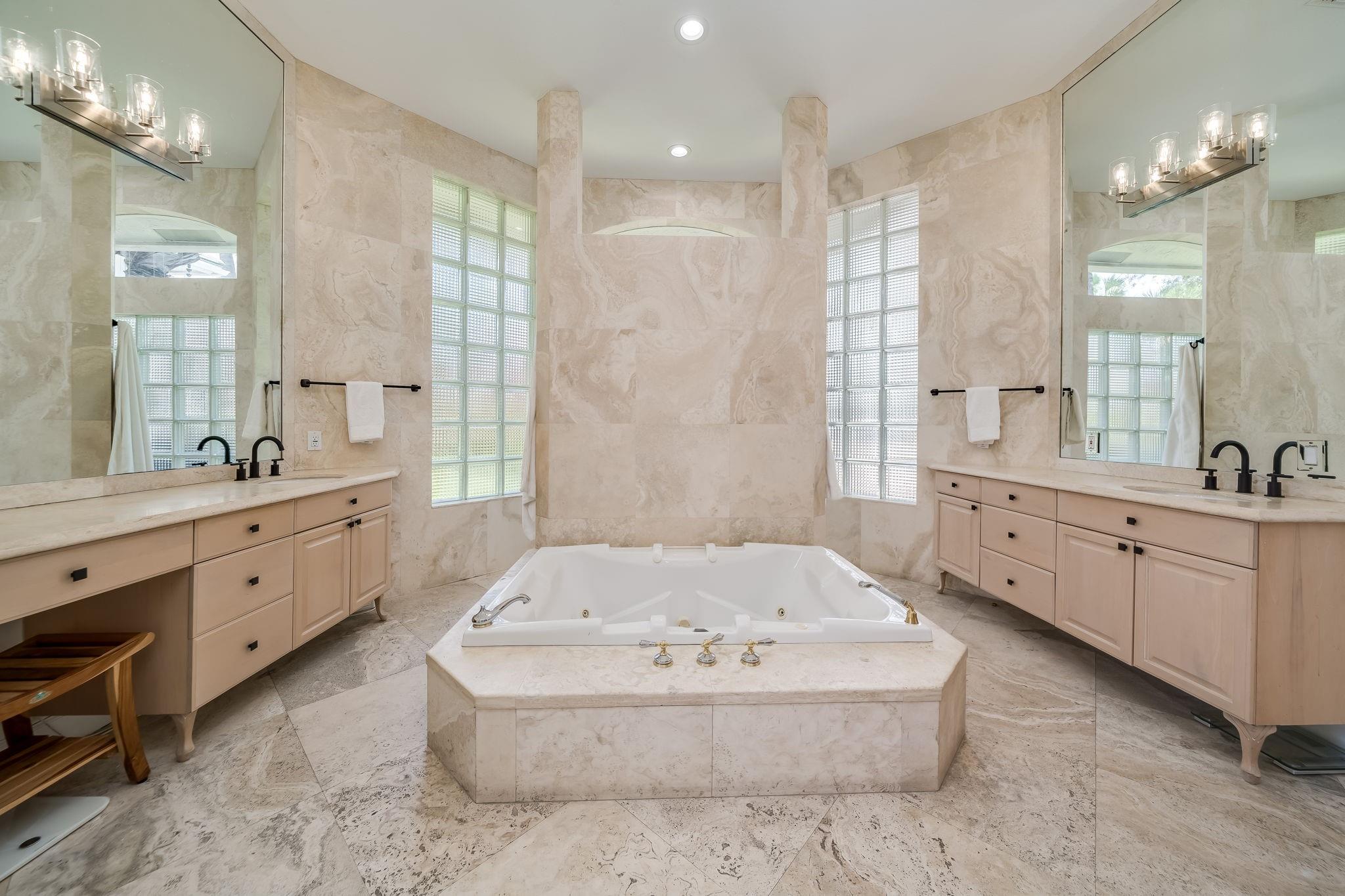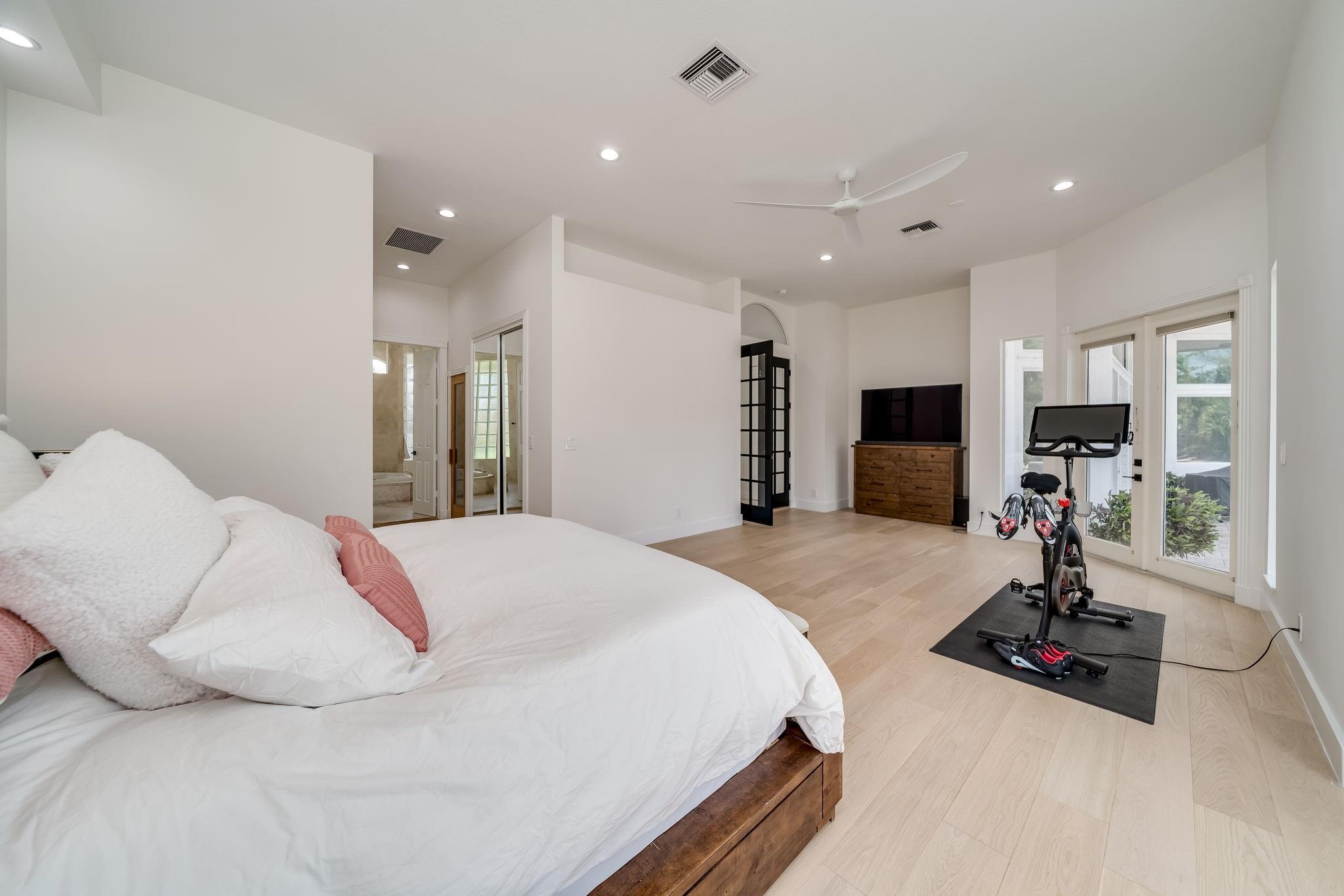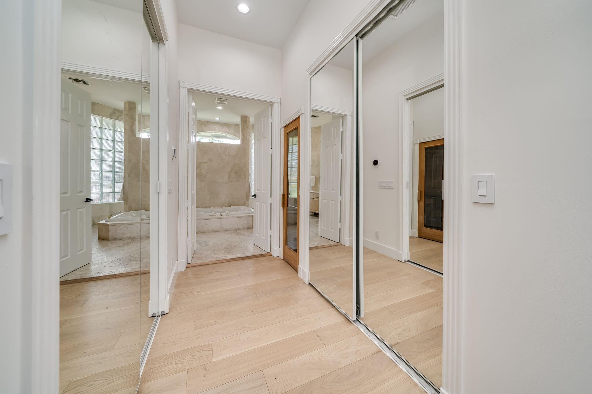Highly desirable ranch style home in Parkland's premier gated residential community, Cypress Head. This 5,100 ± sf home, perfect for entertaining, sits on nearly an acre lot featuring 5 large bedrooms + office, 5.5 baths and 3 car garage equipped w/2 Tesla chargers + an additional AC’d storage area. Roof (2020). 4-zone Trane Acs. Walk in to a sunlit living room with beautiful travertine floors and wet bar, tall ceilings and a tranquil view of the oversized pool/patio. Spilt floor plan with huge primary bedroom, 2 walk-in closets, a personal sauna, large tub and separate double shower. 4 add'l. en-suite bedrooms on the other side which encircle an additional living room perfect for gaming/study. Bedrooms feature Barcelona white oak hardwood floors. A-rated schools, top amenities & low HOA.