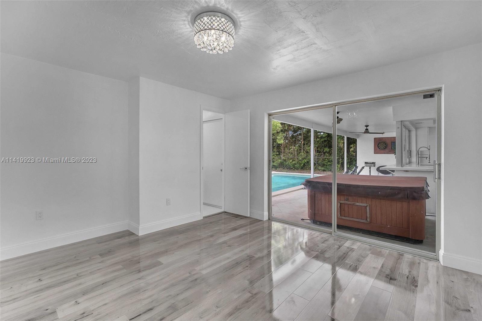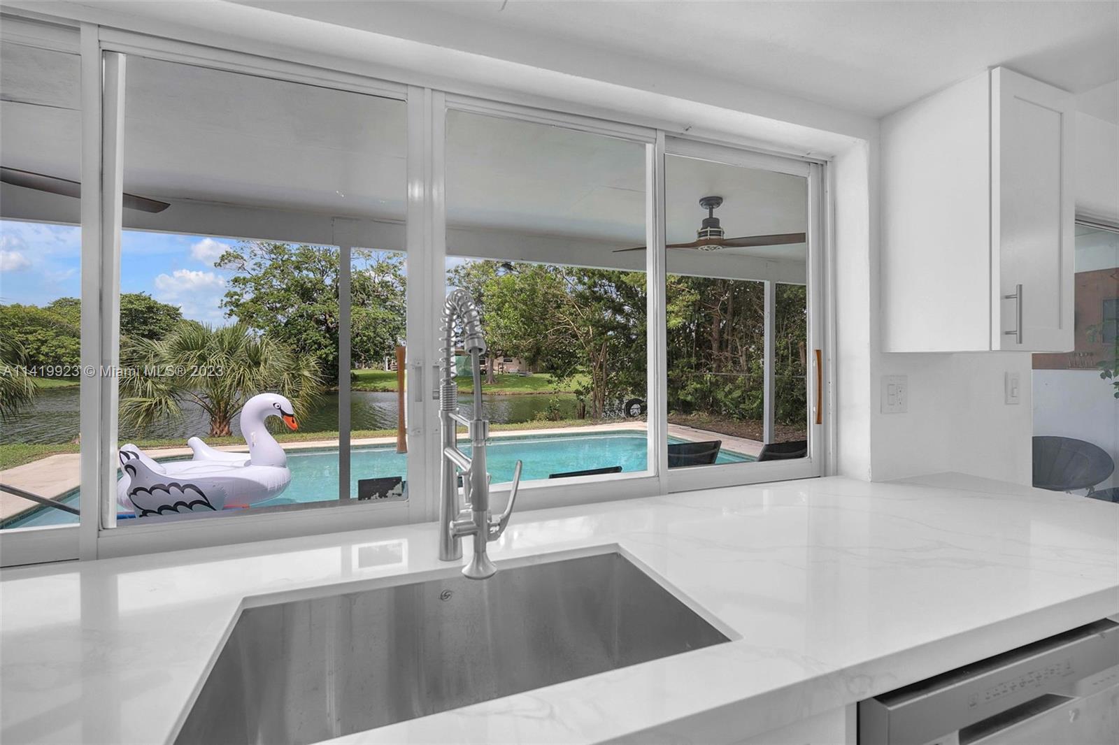 Welcome to this move-in ready and inviting 2 bed/2 bath home nestled in Sunrise. This property is sure to impress with its perfect combination of comfort, style, and outdoor amenities. Step inside and be greeted by the spacious and light-filled living room, open floor plan that seamlessly connects the living room to the adjacent dining area, and high-end lighting throughout. The kitchen boasts SS appliances, wood cabinets, pantry, Calcutta quartz counters and complete with a convenient breakfast nook overlooking your private oasis. The pool area has a counter bar that extends from the kitchen which is perfect for outdoor entertainment. In addition, 2013 roof, oversized garage and storm ready with shutters. Don't miss out on your opportunity to own this stunning home.