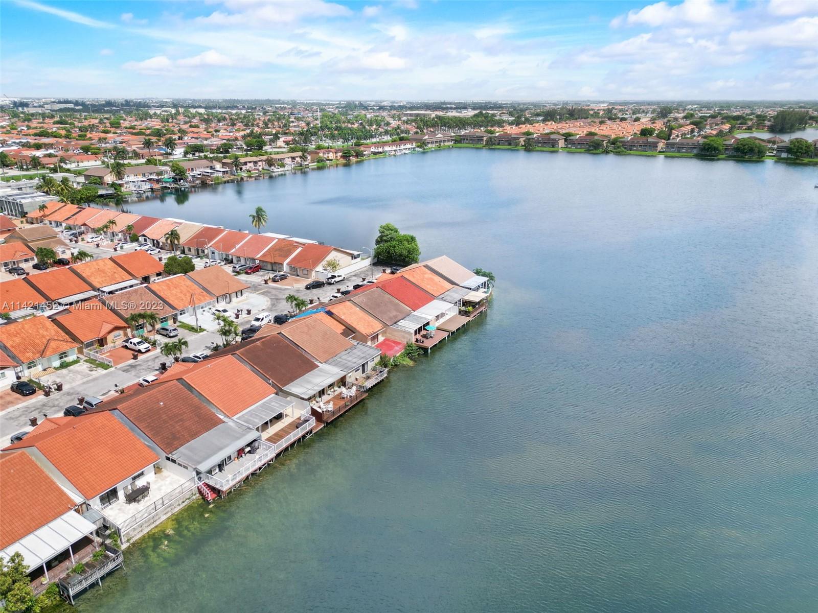 Don’t look further! This one-story single-family house in west Hialeah offers 3 beds, 2 baths. Nestled in the desirable Alameda by the Lake community. Prepare to be enchanted by the breathtaking lake views, offering a sense of tranquility that will soothe your soul. Relax on the 12 ft deck with concrete pilings, all tiled patio under the aluminum patio roof perfect for entertainment and gatherings. The vaulted ceilings inside create an open feel, updated kitchen with stainless steel appliances. Enjoy the split layout and all tile floors. A Tile roof add elegance and character. Full-size washer/dryer included. Close to great schools, and all you can need. Don't miss this opportunity for lakefront living in the City of Progress! THIS IS A MUST SEE!