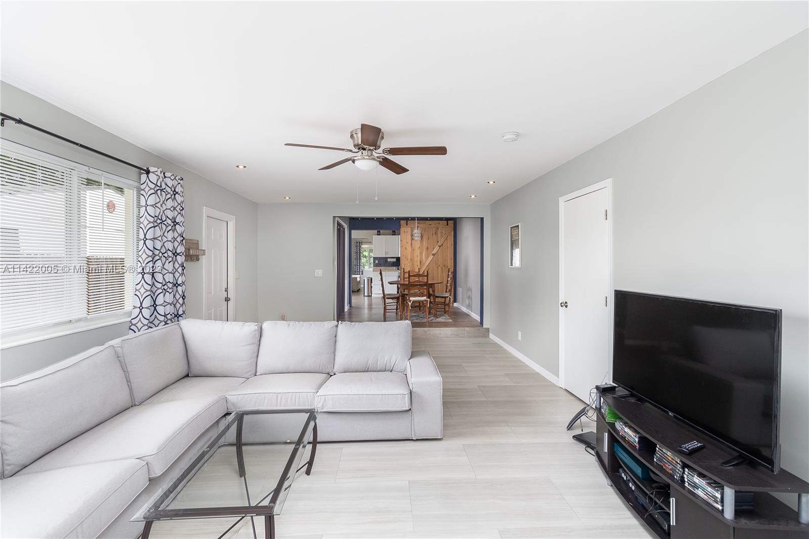 ntroducing a beautifully remodeled 3-bed, 2-bath Hollywood home with an office. Renovated in 2019 with permits, it features a spacious living room, huge family room, eat-in kitchen, formal dining, fabulous master suite with Jacuzzi tub and walk-in closet. Enjoy outdoor living on the jacuzzi and deck. Plenty of space for a pool, boat, or RV. Hurricane impact windows ensure safety. Ideal for tenants or large family, with a unique layout separating front half (2/1) and back half (1/1 with office) by sliding barn door. Serene ambiance with beautiful trees. New roof installed in 2020. Don't miss out on this incredible opportunity!