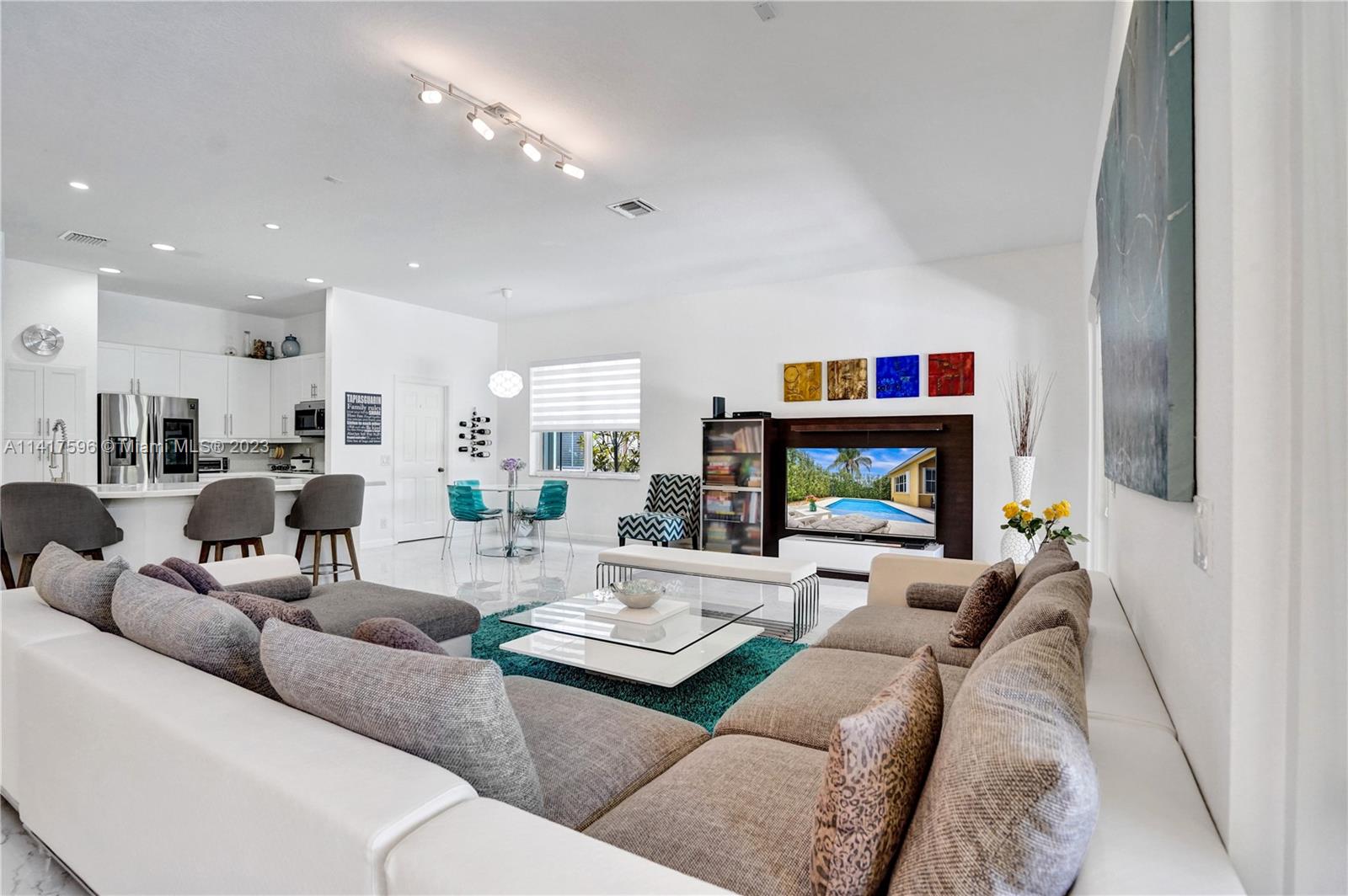Welcome to your dream home in the exclusive resort style, guard-gated community of Savanna. Enter this beautiful home to find stunning porcelain flooring, open concept, renovated bathrooms, and a modern chef's kitchen that’s a culinary enthusiast's delight featuring induction stove top, quartz countertops, high-end stainless steel appliances and abundant space for meal prep. An enclosed patio overlooks a modern salt-water pool with a gorgeous new pool deck. Beautiful window treatments highlight the entire home. Amazing community amenities include community pool and a water slide, a playground, miniature golf, a soccer field and so much more. All 'A" rated schools, HOA Paid quarterly, this is an amazing property.