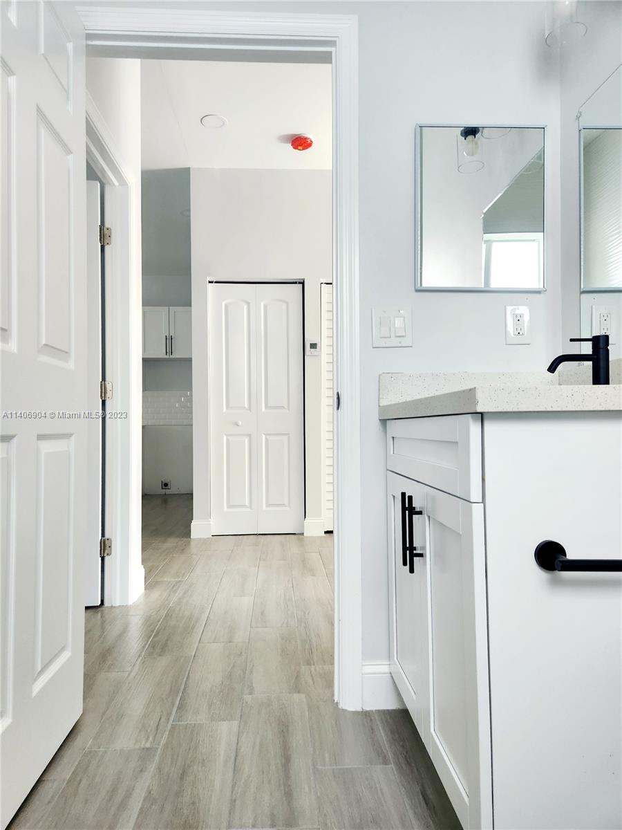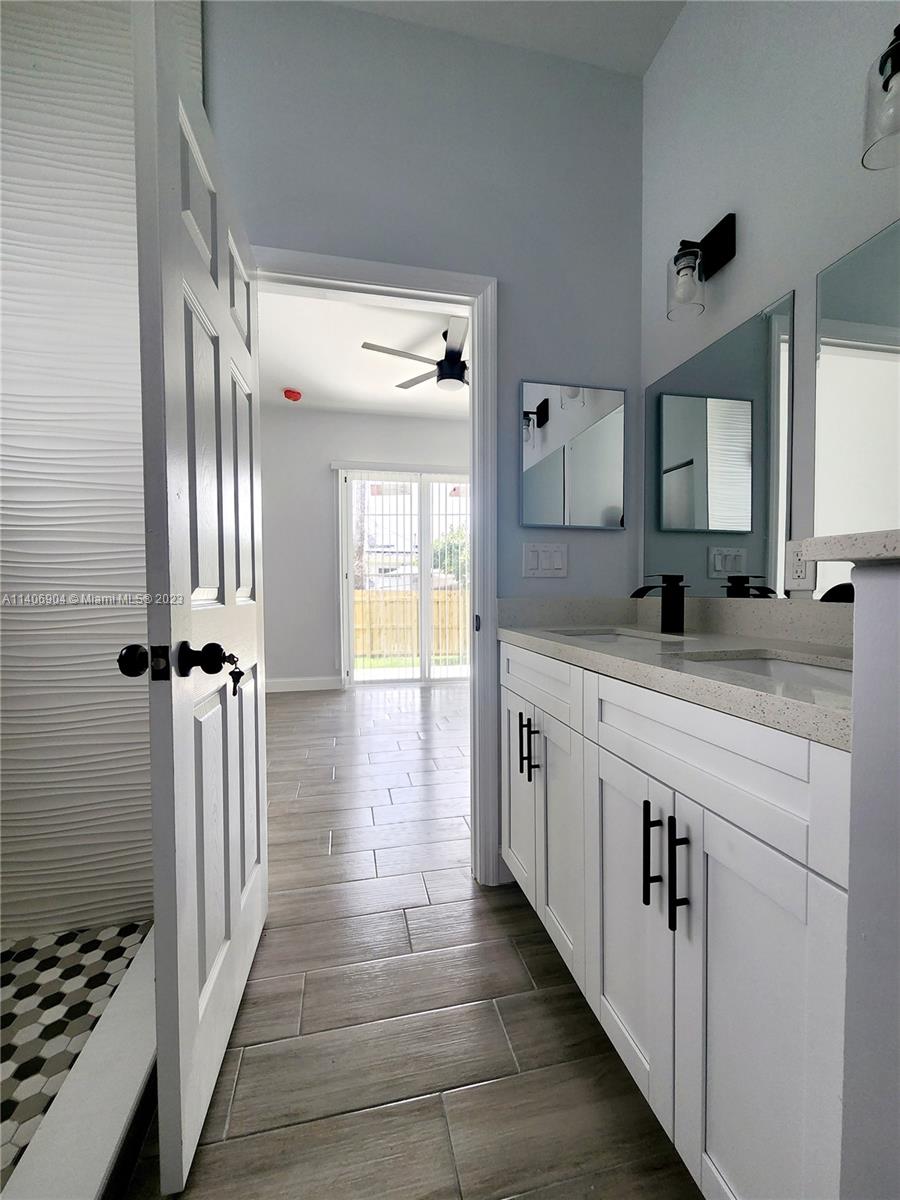This stunning 2023 New construction residence boasts 4 bedrooms, 3 Bathrooms including a private guest bedroom with a bathroom, ideal for guests or as a mother-in-law suite. The modern design and open layout create a warm and inviting atmosphere throughout. The kitchen features quartz countertops and stainless steel appliances. With 10 ft high ceilings, three parking spots, and impact windows ensuring added security, Experience convenience, tranquility, and peace of mind in the serene backyard of this exceptional home. Strategically located you'll enjoy easy access to Oakwood Plaza and Dania Pointe, recognized as major economic driver in the area, where a variety of dining, shopping, and entertainment options await. The I95 Highway, Airport, Us1, and beaches are all just a short drive away