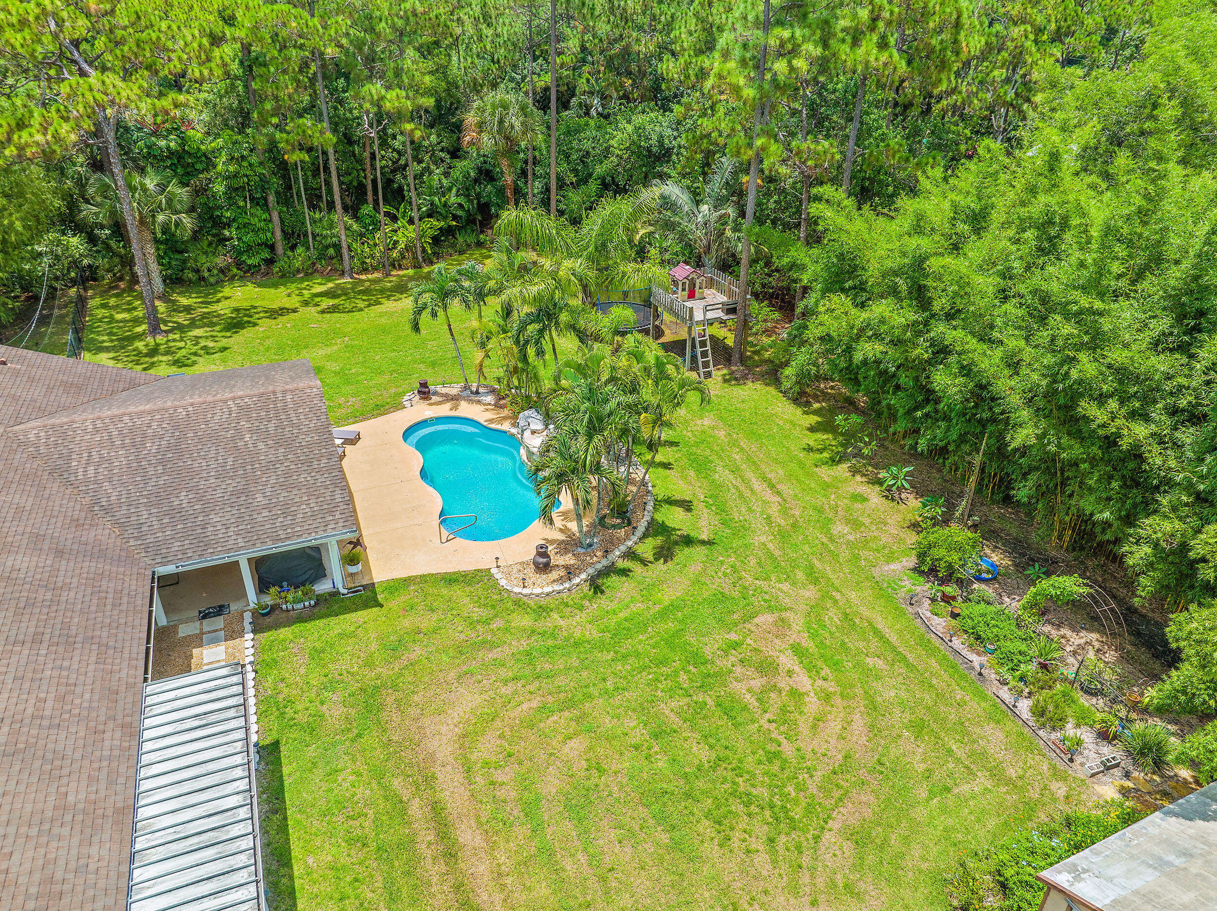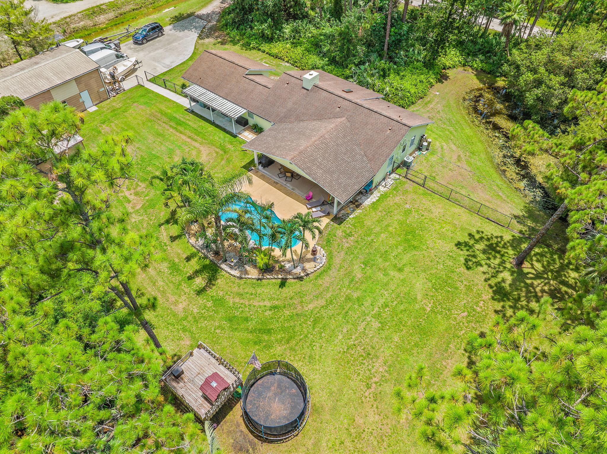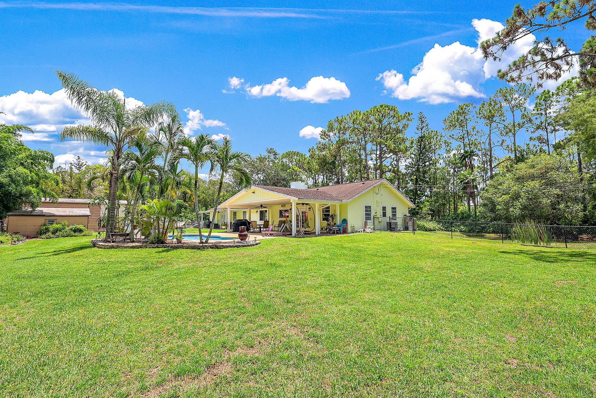 Come home to your personal oasis! This home has a gorgeous rock waterfall sparkling pool on a secluded 1.49 acres lot! The rambling living space has a large den, room for an office/play area, a dedicated dining room, breakfast bar, kitchen w/ granite counters, ample pantry space & 3 sets of French doors which make the home light & bright throughout! Other features include a wood burning fireplace, sky lights, split bedroom plan, master walk in closet, en suite master bath, 2 zone A/C, large patio overlooking the pool & is on lushly landscaped land. A huge garage/warehouse is for the handy man & is 1300 sq ft (50 x 26) w/ 2 roll up doors 12 x 12 & another roll up door 8x8, 220 electric, huge concrete driveway, storage shed & a fully fenced yard. Come on home to peace & luxury!