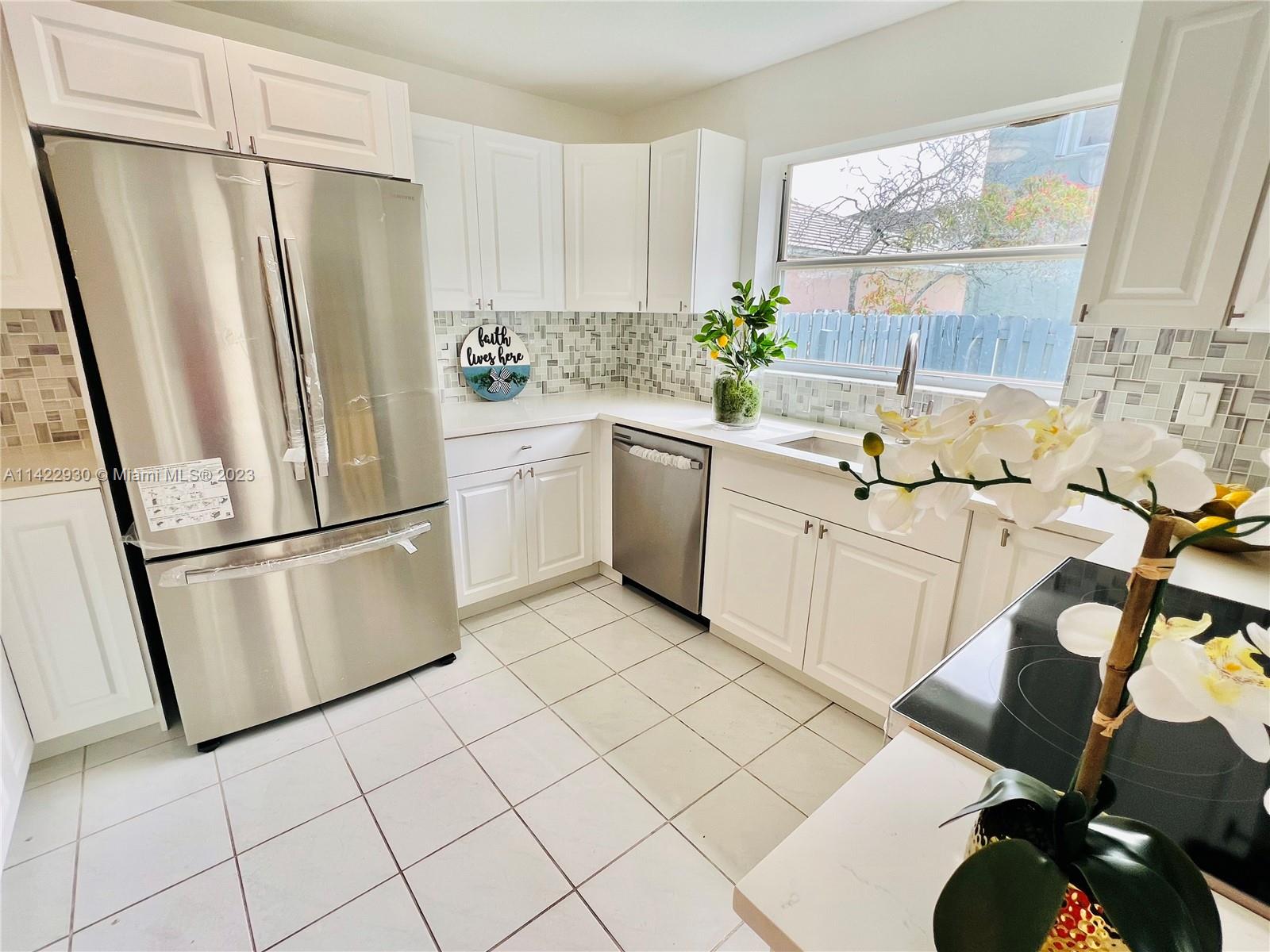 Beautiful 2 Story home, 3/2.5 bathrooms has been updated. BRAND NEW ROOF. It features an open concept main level with living room vaulted ceilings, tile and laminate new floorings in the bedrooms, dining area with a beautiful contemporary "ice-cube" design lighting feature. The kitchen boasts quartz counters with backsplash, stainless steel appliances, white kitchen cabinets and ample storage. Full size washer and dryer. The backyard oasis is ideal for entertaining or just relaxing out on the porch or fenced green space. There is a single car garage, 2 parking pads and guest parking (car garage has been converted into a living area, this area can easily be converted back). Community has a great pool and play areas.