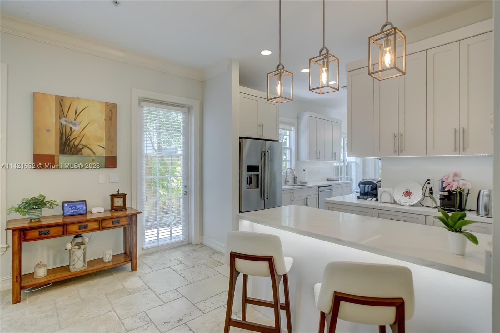Welcome to your Modern Mediterranean 3/3.5 plus Loft, 2 Car End-Unit Townhome in the Heart of Coral Ridge! The 8' double glass doors invite you into the remodeled chefs kitchen w/quartz countertops, extra wide 35” refrigerator, 5 element convection range, wine cooler & ice maker. Freshly painted interior, remodeled half bath, new light fixtures, travertine flooring & crown moulding provide that luxury, turn-key ambience you’ve been looking for! Owner’s suite w/ dual walk-ins, french doors to private balcony, remodeled spa bath w/jacuzzi, & dual vanities. 2nd flr loft/office & utility room. 3rd flr rooftop showcases SE views for viewing the fireworks, airshow & ocean breezes while dining al fresco. Trex patio with fire table. A rated Bayview School. Minutes to beach, best dining & shopping.