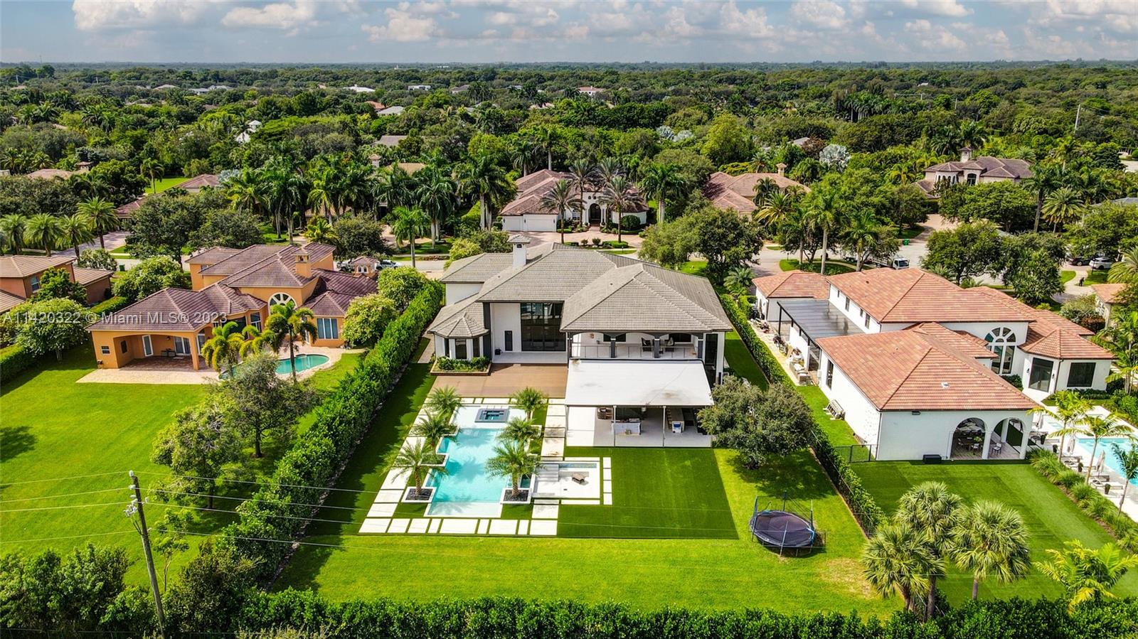 One of a kind masterpiece fully remodeled with top quality finishes & No expense spared. Majestic entrance with luxury pivot door, high 24' ceilings, floating stairs & bright backyard views. Home features 8 beds, 9.5 baths + office & a state-of-the-art theatre room. Modern LED baseboards, Surround system & Impact windows/doors throughout. Kitchen is every chef’s dream including exotic Taj Mahal quartzite countertops, gas stove, wine cooler & top-of-the-line Dacor/Miele appliances. Designer handcrafted stone wall for wine collectors. Tropical paradise backyard fully equipped for the perfect entertainer featuring a 70’x30’ pool with swim up bar/infinity edge waterfall, custom summer kitchen, pergola, sunken seating area, & green space for outdoor activities. 4 car garage & oversized driveway